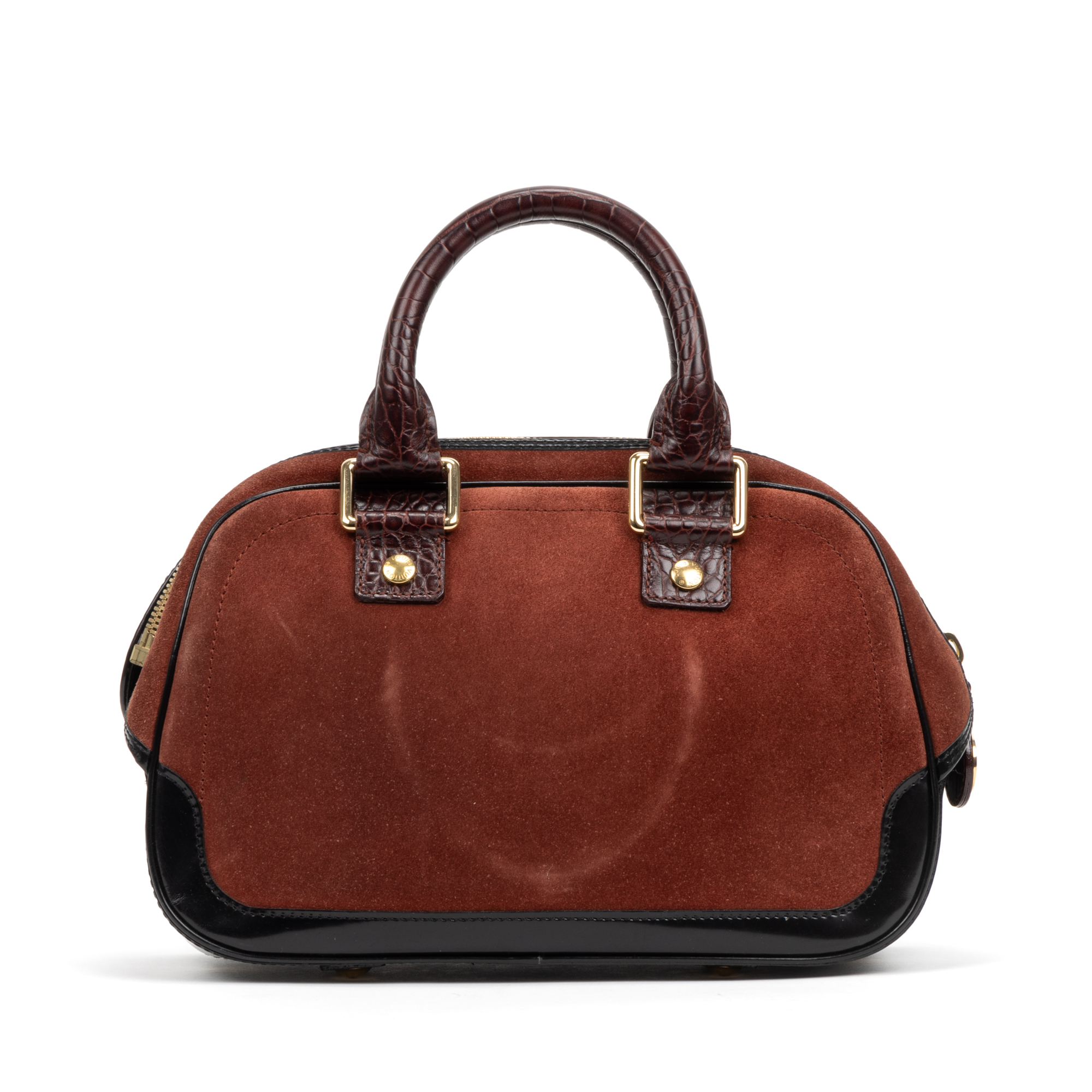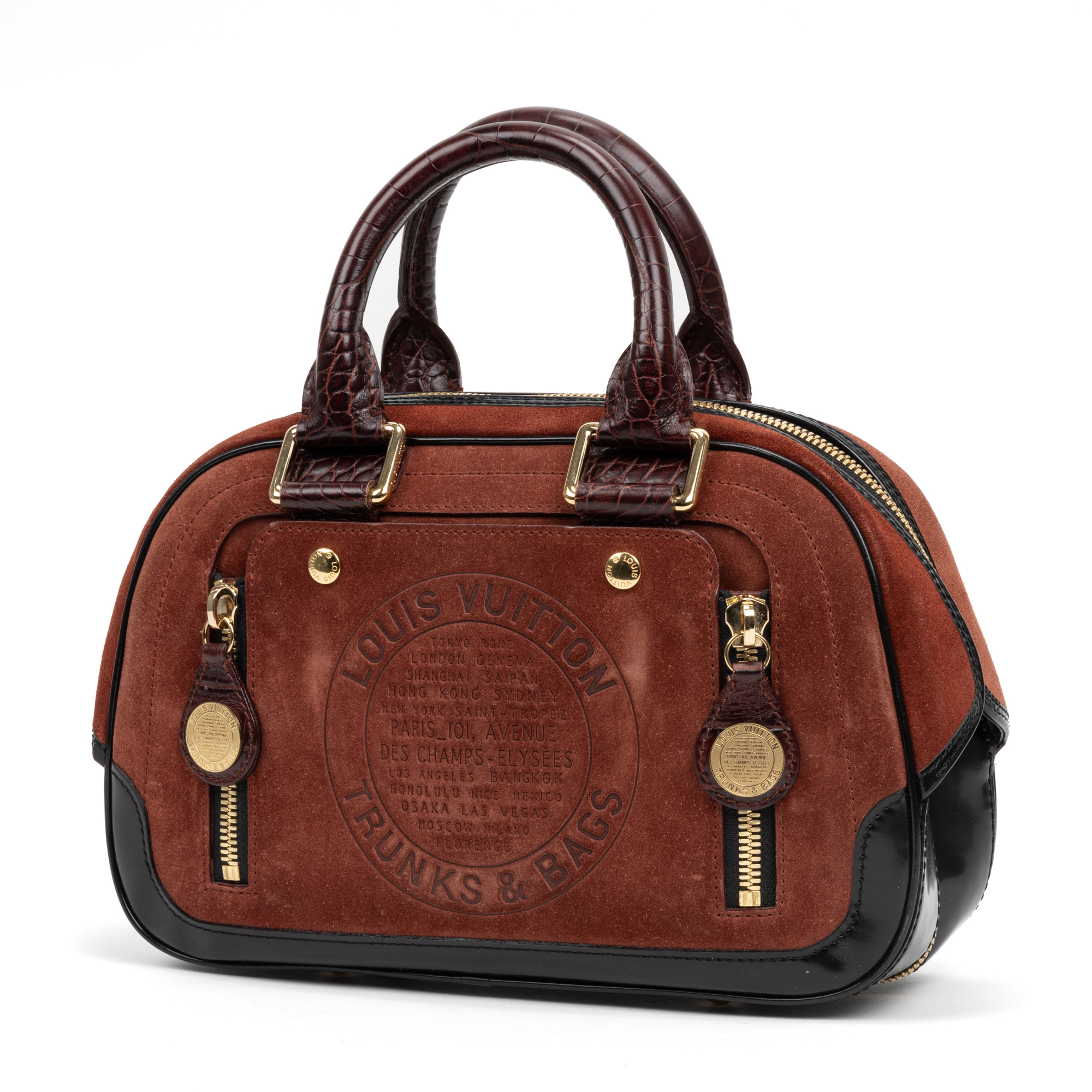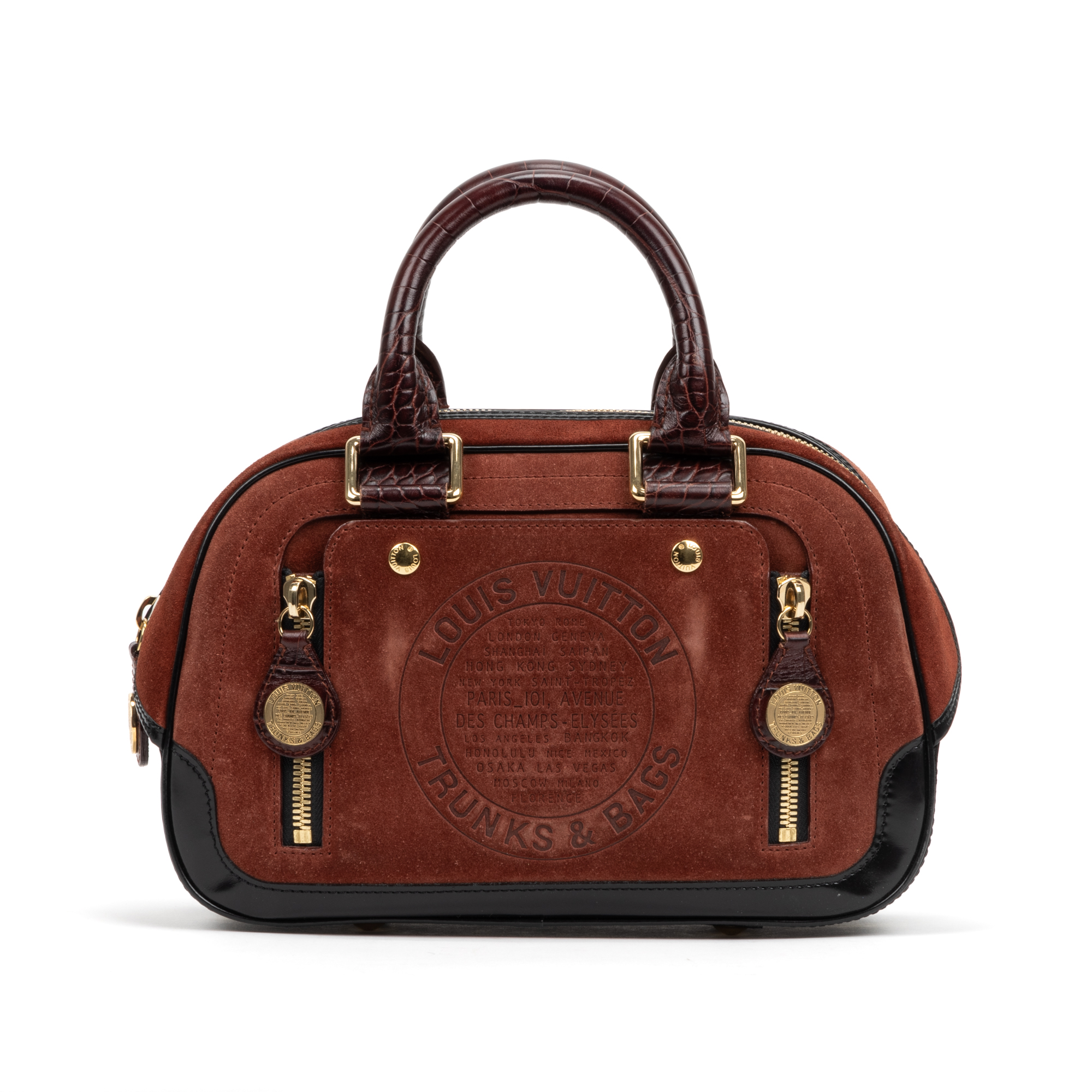 Louis Vuitton Handbag Ltd. Ed. Cruise 2006 Collection Stamp Bag PM in Havane Brown Suede Leather and Golden Brass hardware. The product is in Excellent Condition (A).