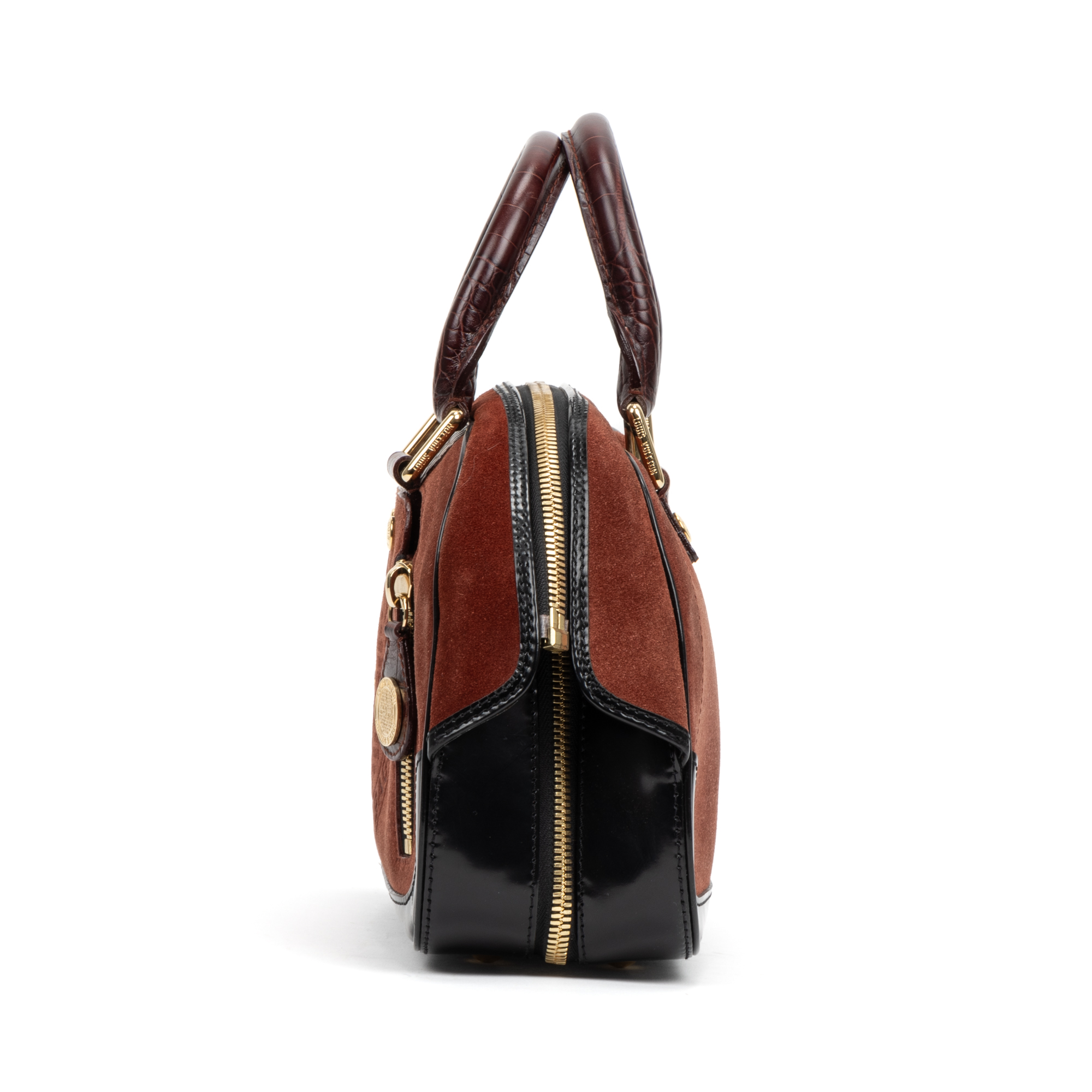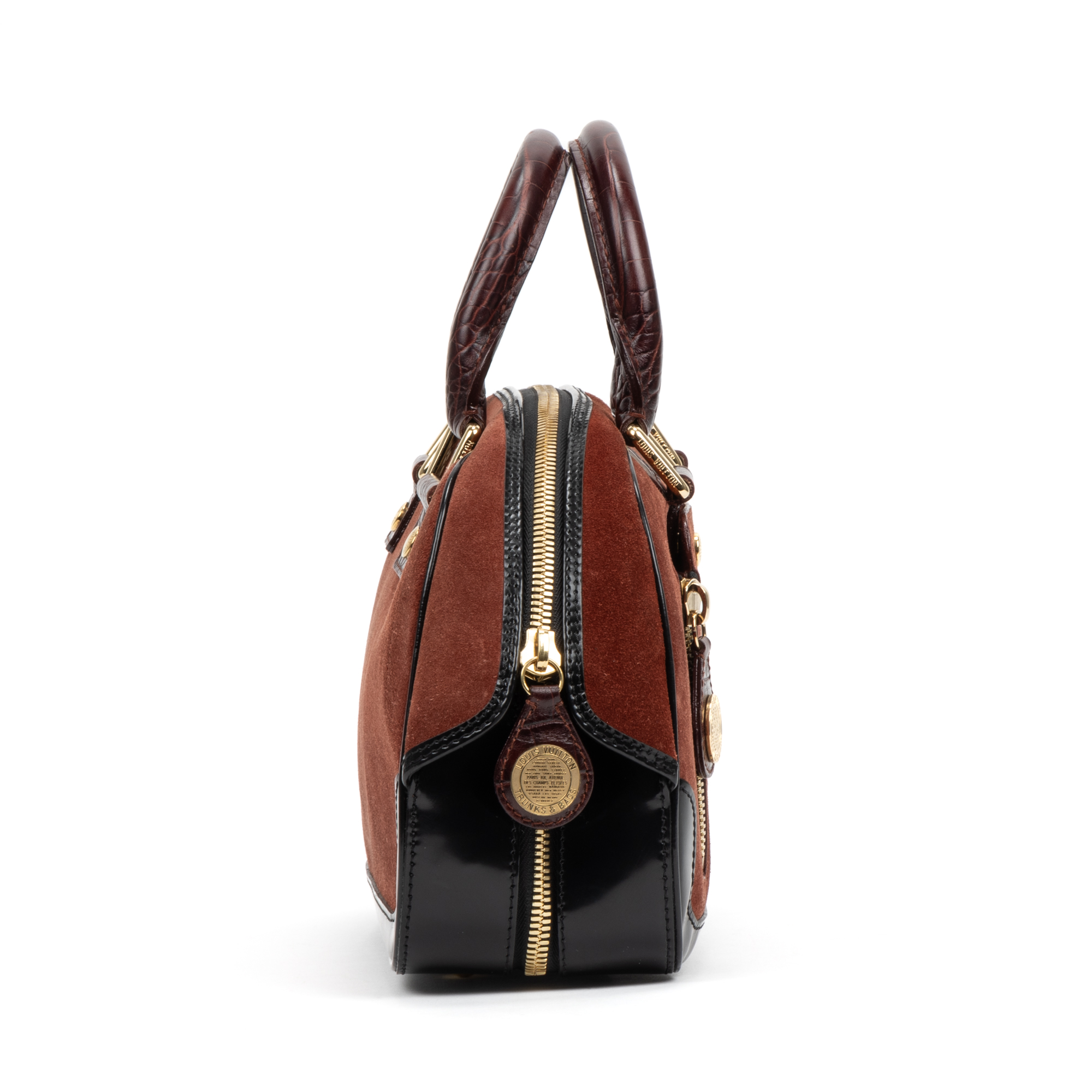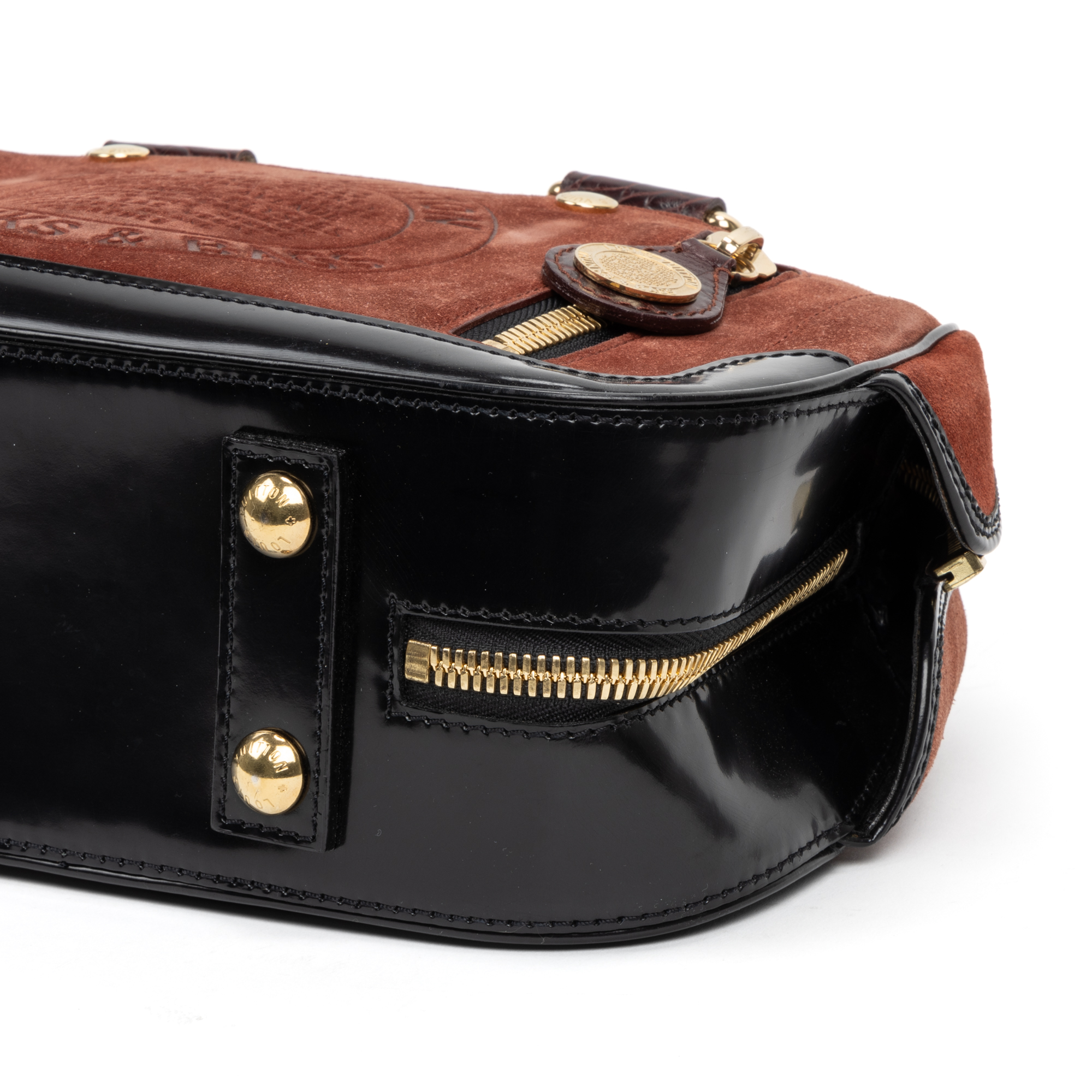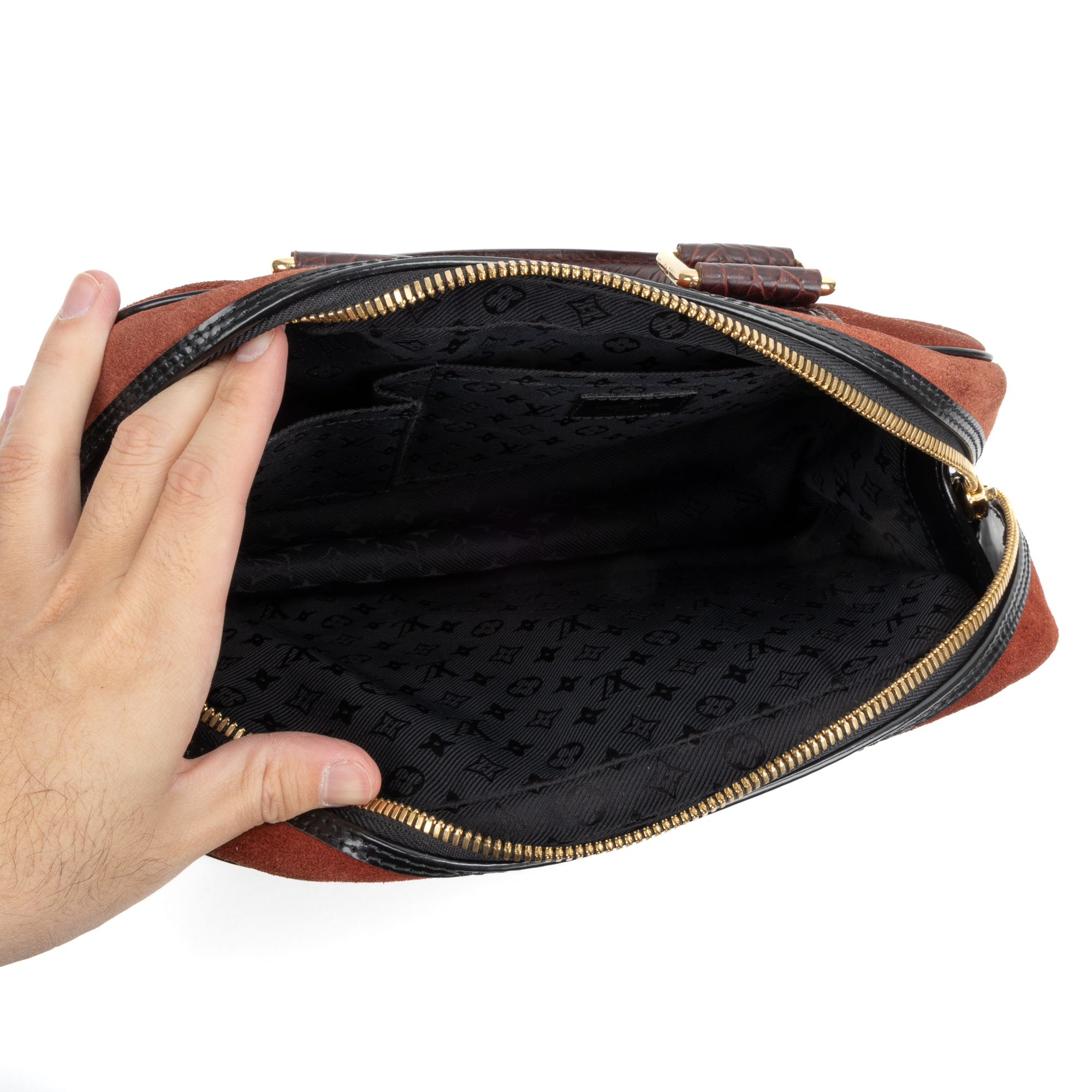 Louis Vuitton Handbag Ltd. Ed. Cruise 2006 Collection Stamp Bag PM in Havane Brown Suede Leather and Golden Brass hardware. The product is in Excellent Condition (A).
