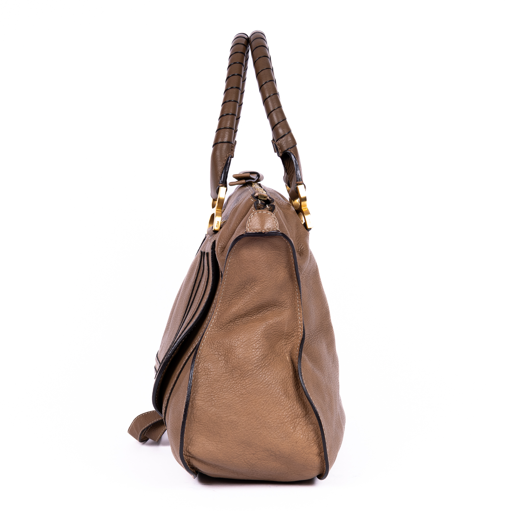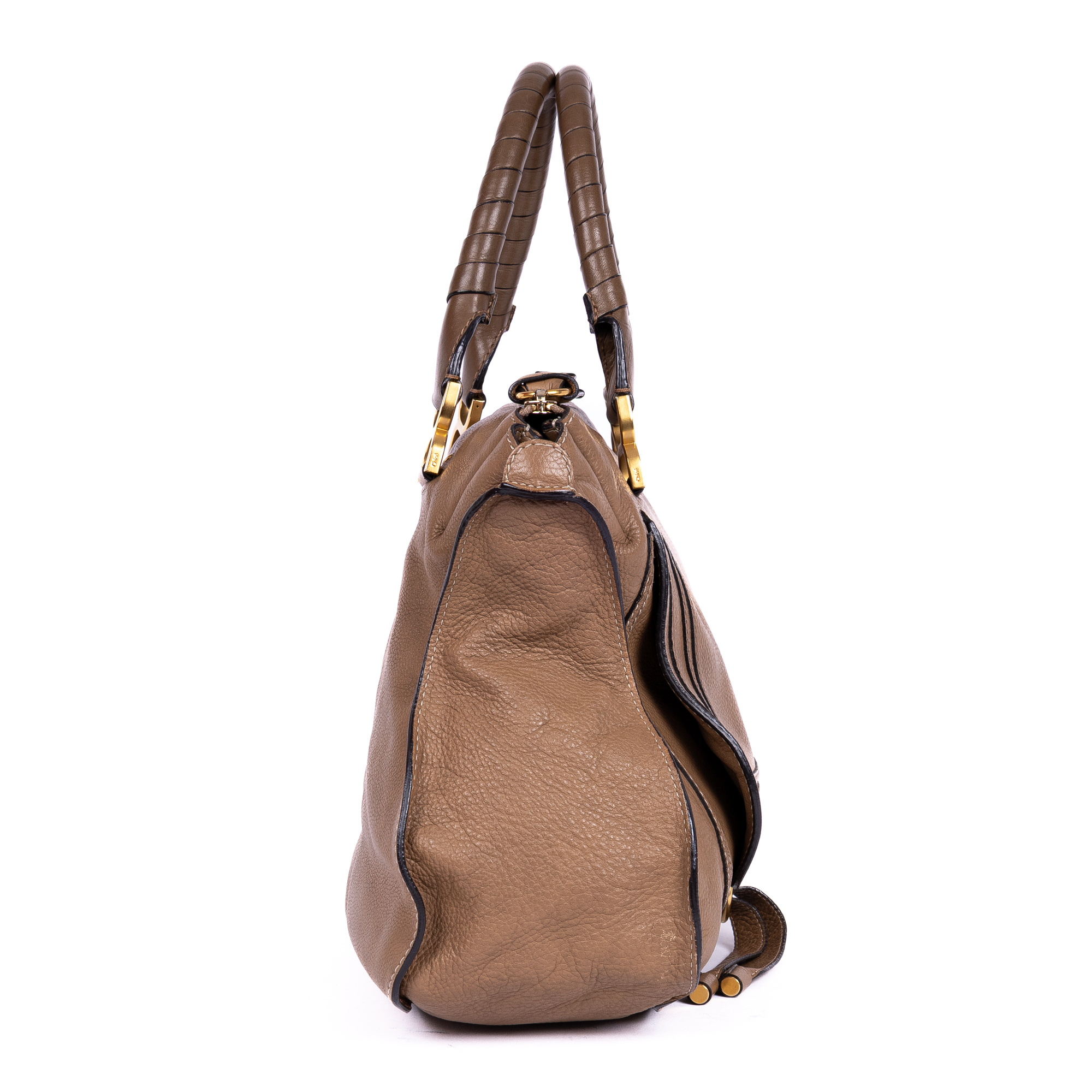 Chloé Handbag Marcie Large in Brown Grained Leather and Gold hardware. The product is in Excellent Condition (A).