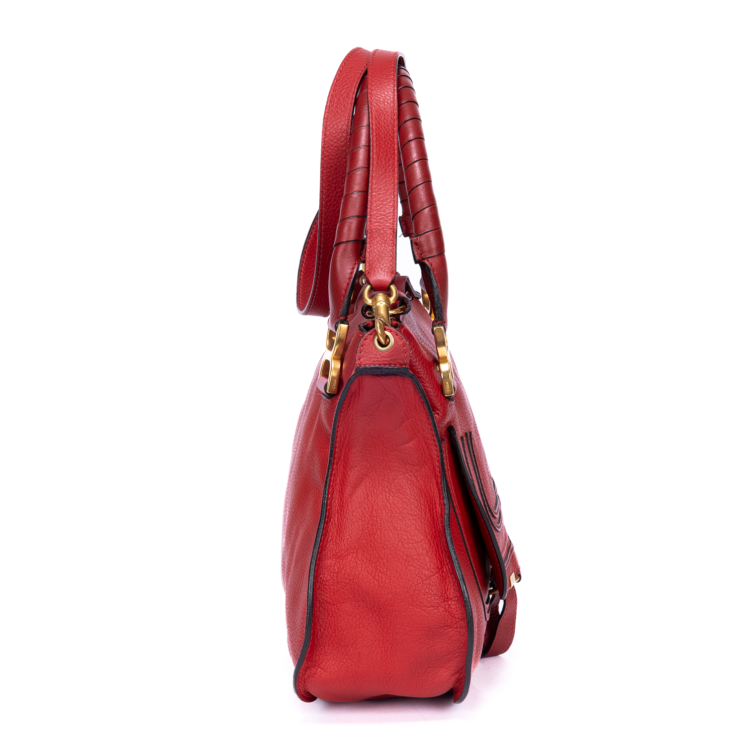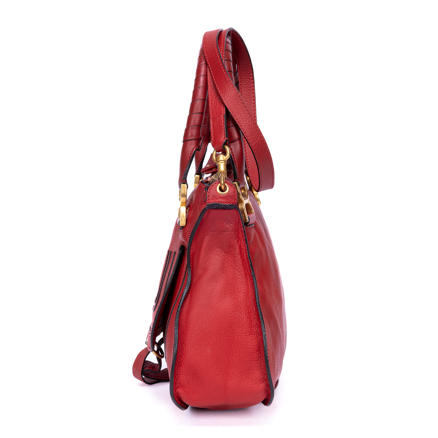 Chloé Handbag Marcie Medium in Red Grained Leather and Gold hardware. The product is in Excellent Condition (A).