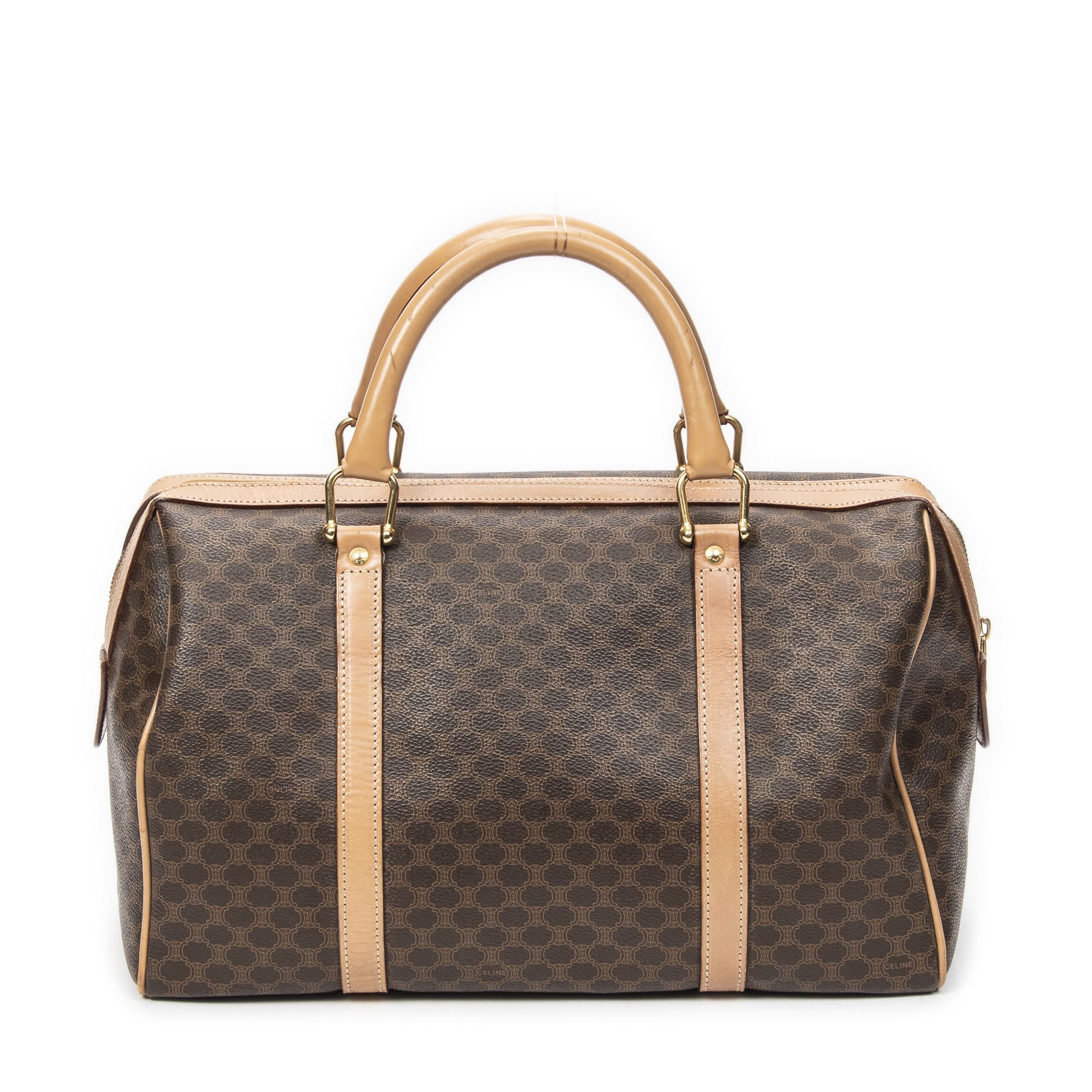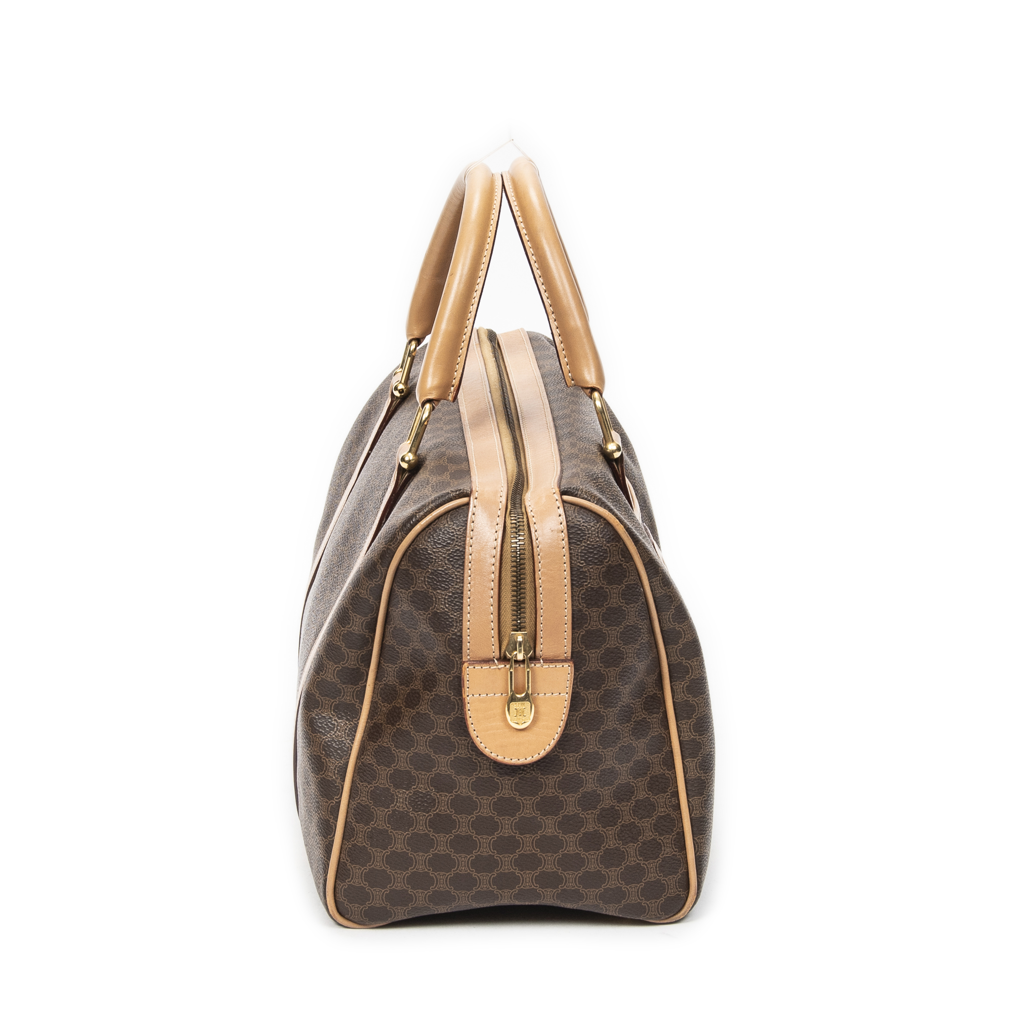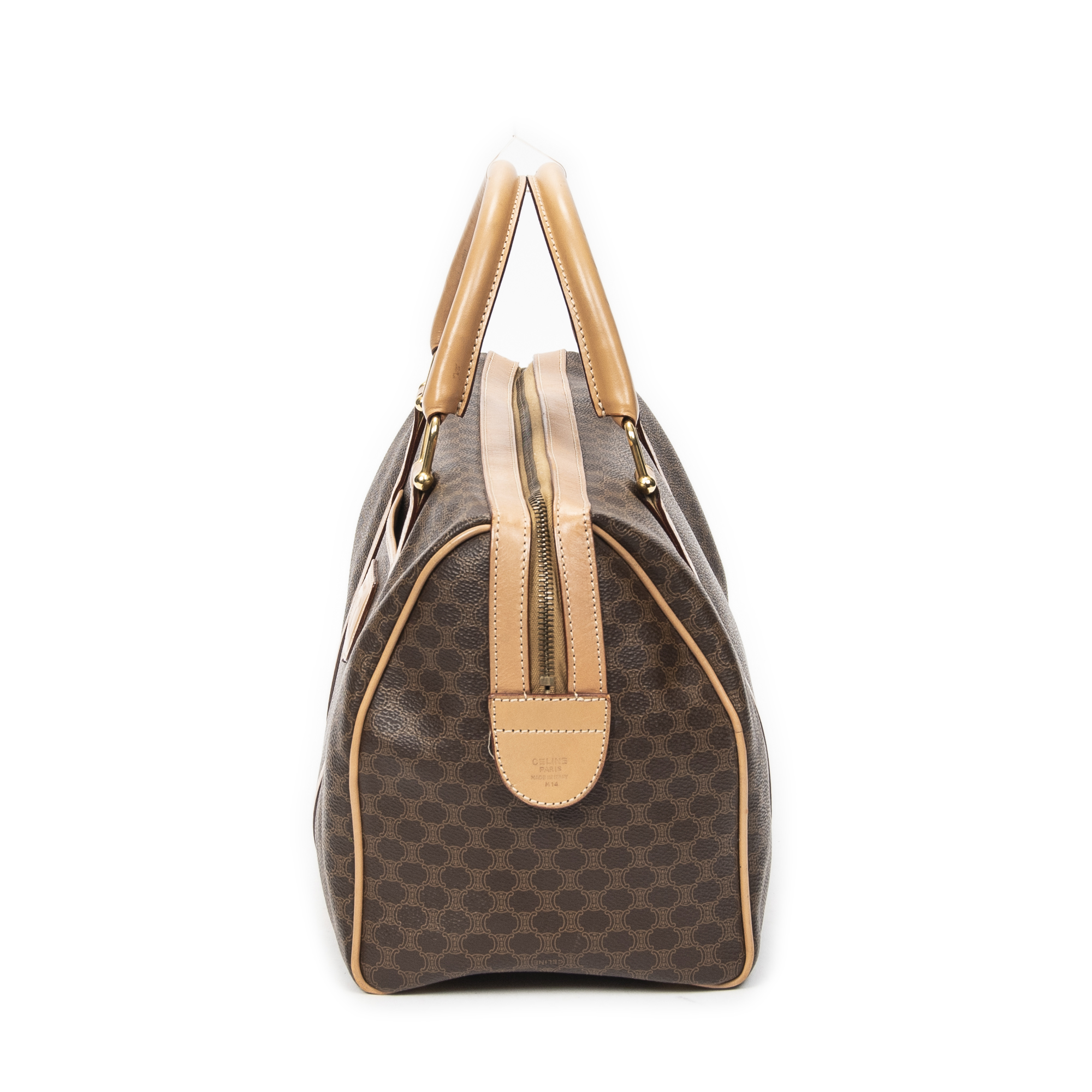 Celine Handbag Medium Boston in Beige/Brown Macadam Coated Canvas and Gold hardware. The product is in Excellent Condition (A).