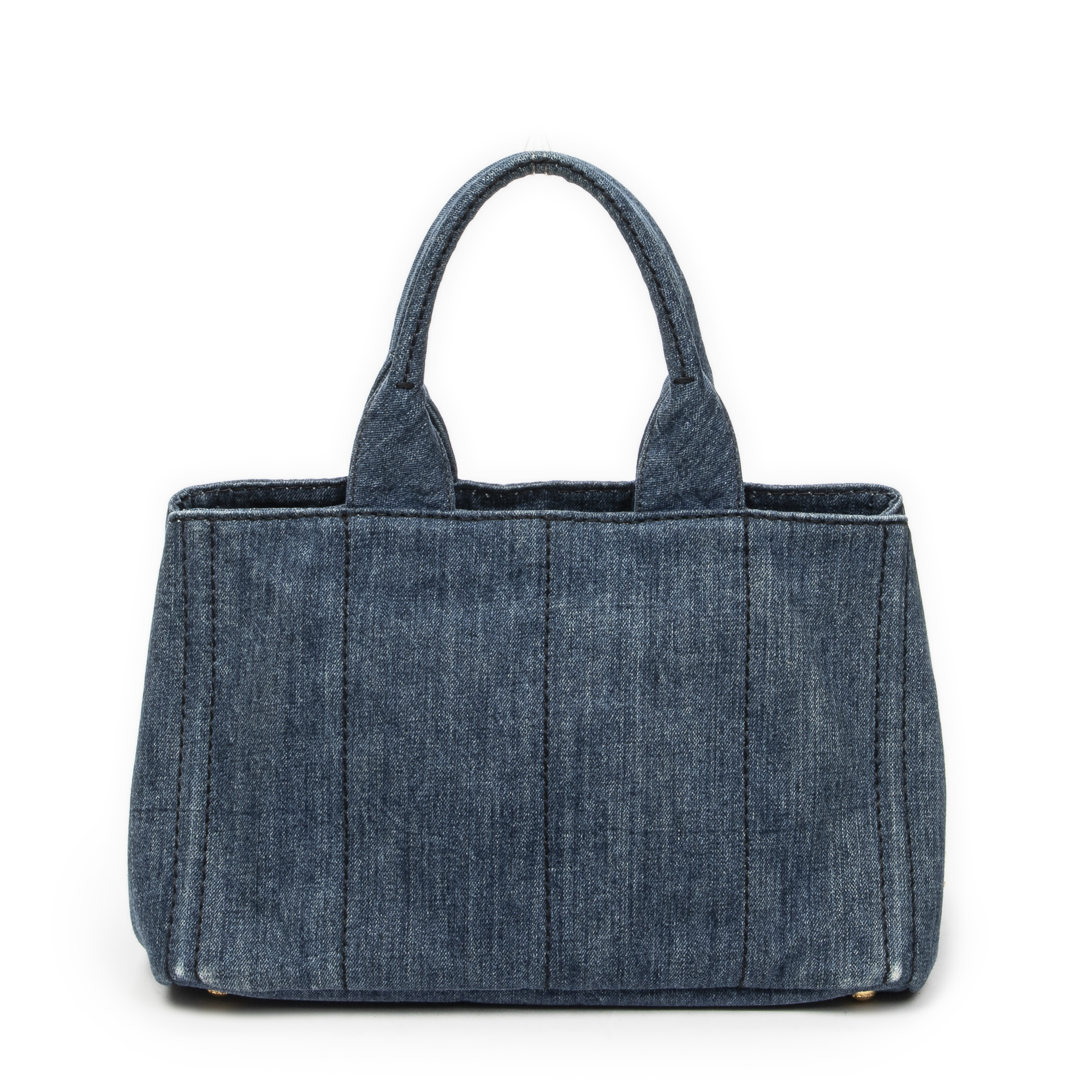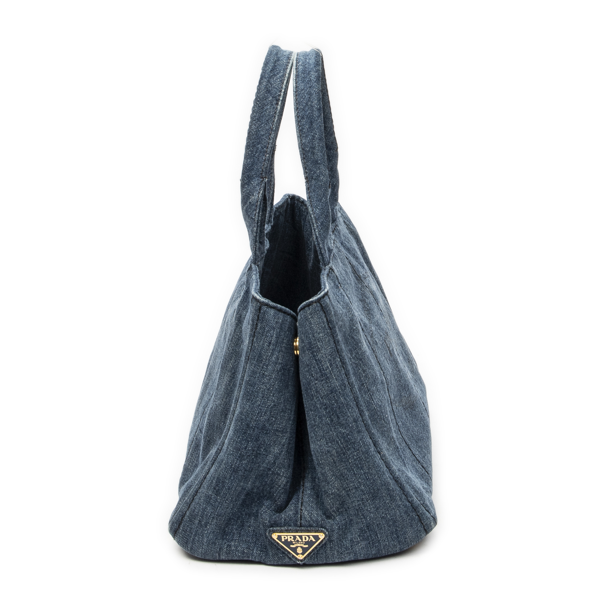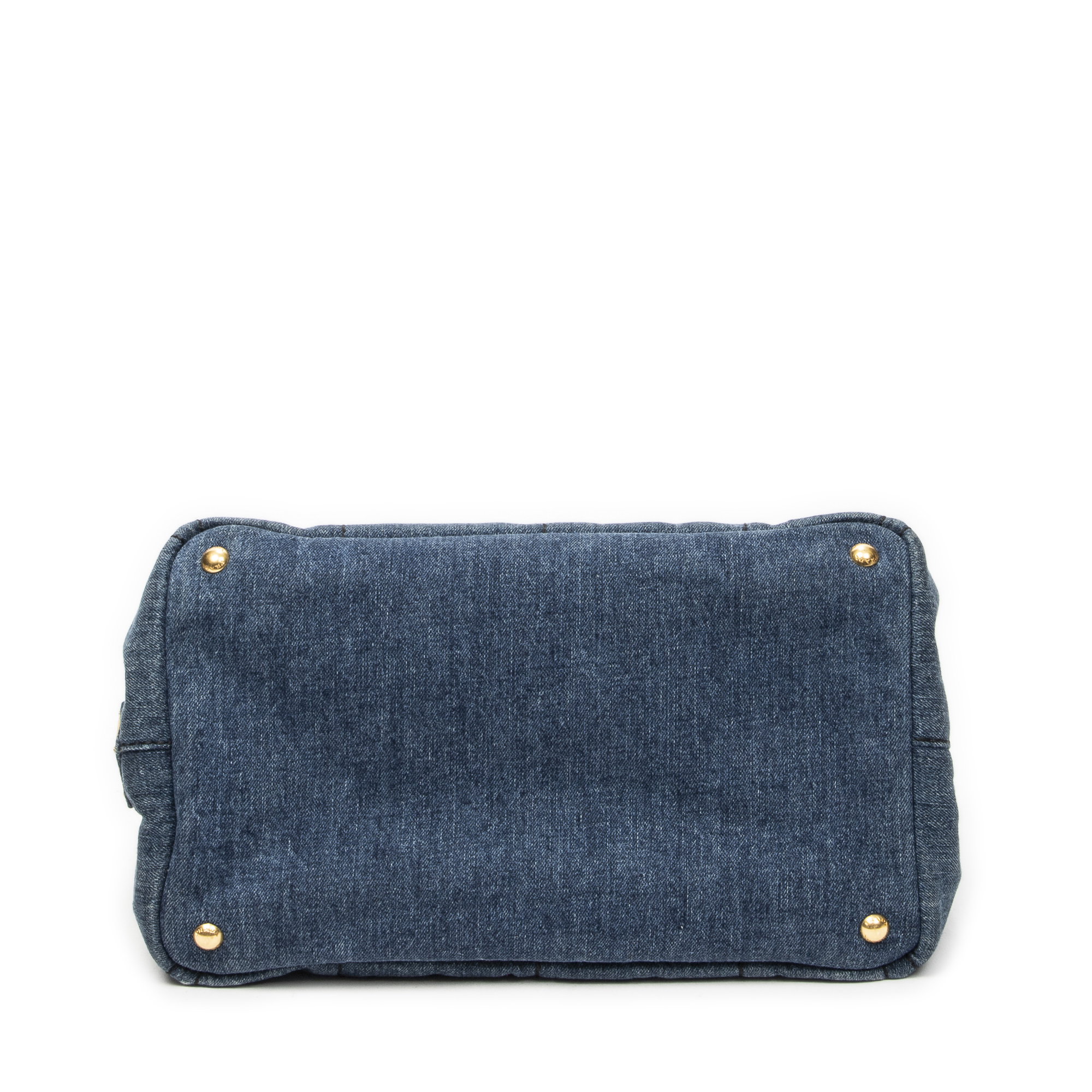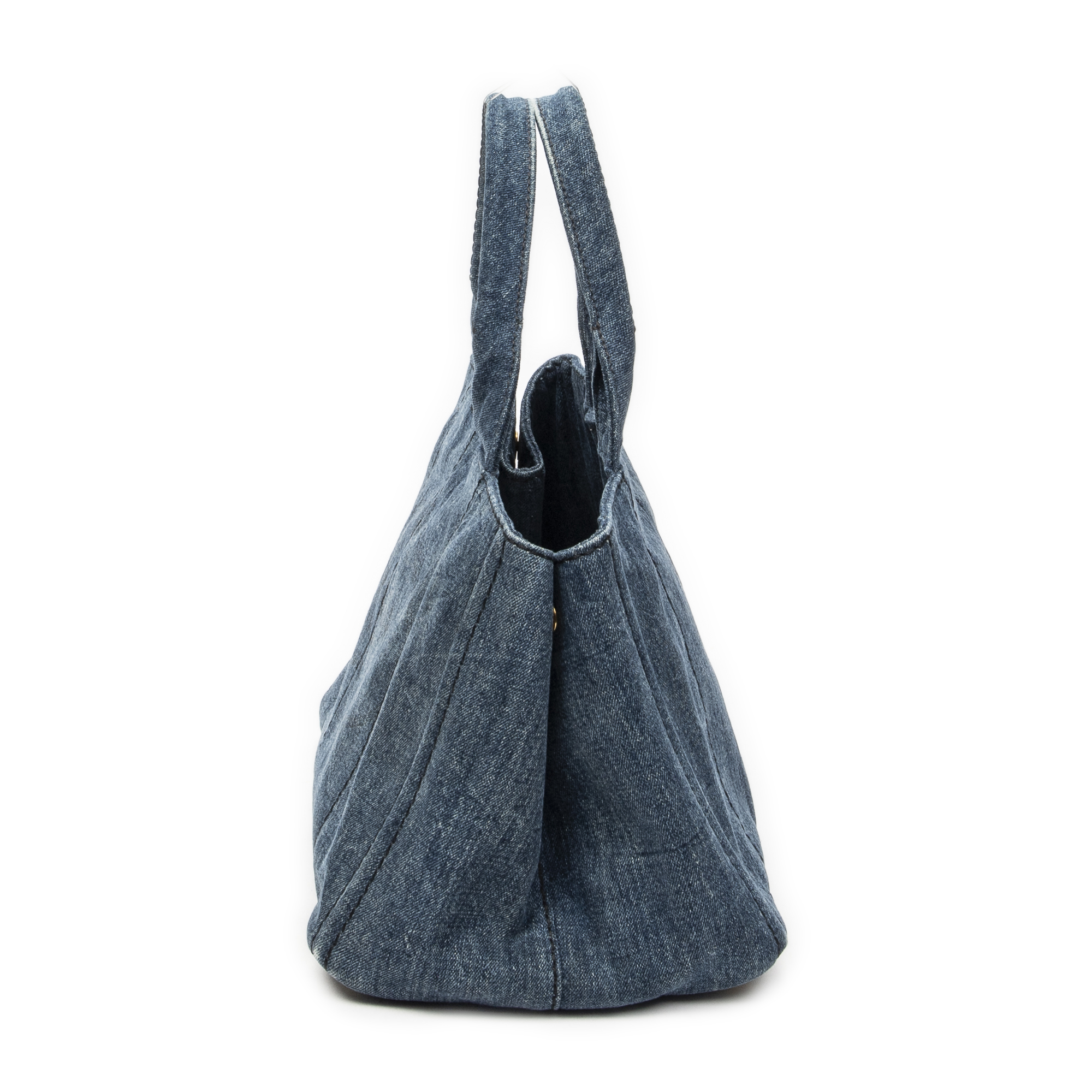 Prada Handbag Medium Canapa Tote in Blue Denim Canapa Denim Canvas and Gold hardware. The product is in Very Good Condition (AB).