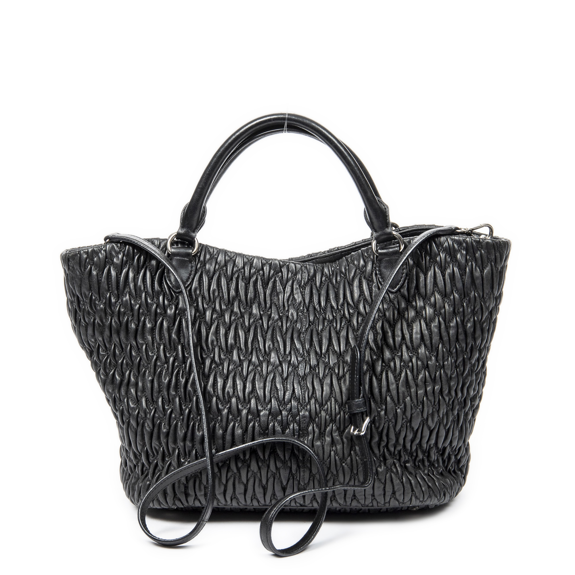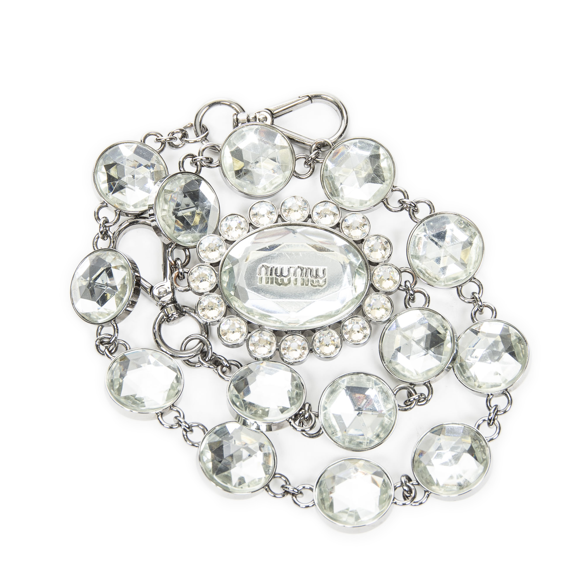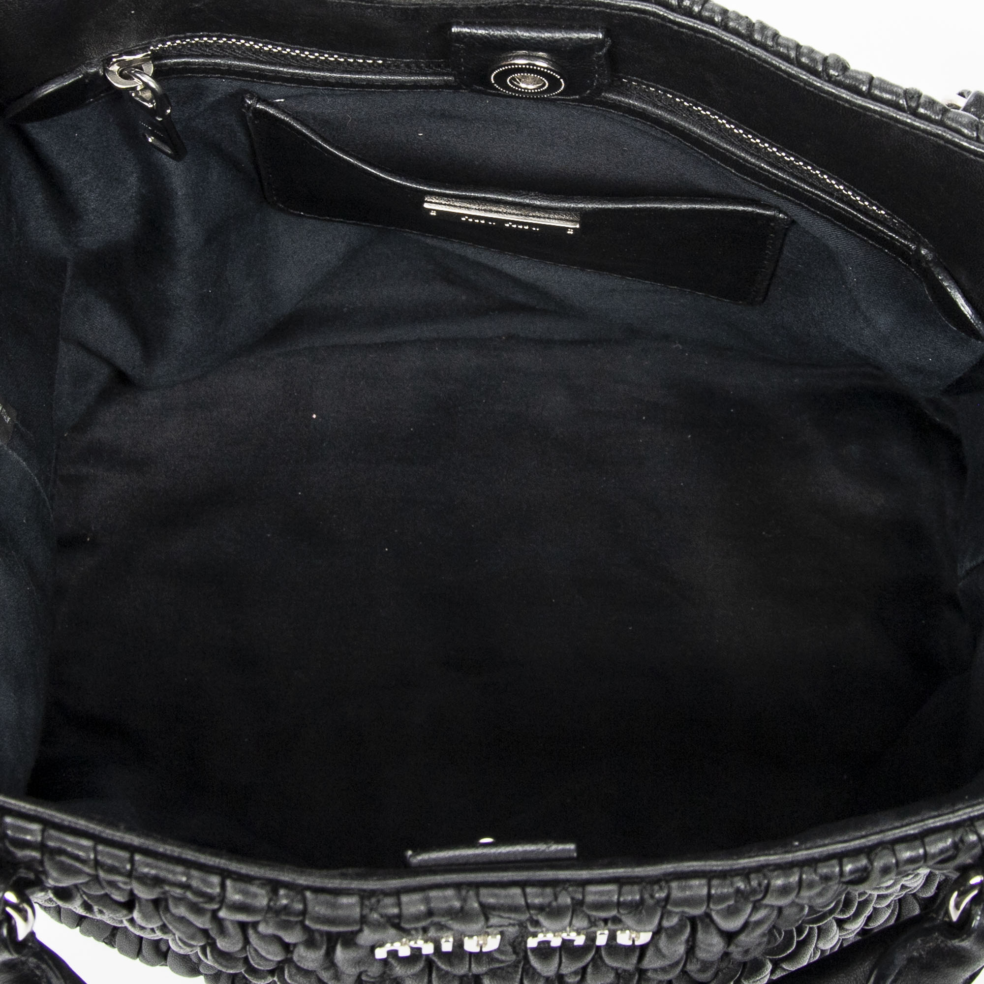 Miu Miu Handbag Medium Crystal Chain Tote in Black Nappa Matelasse Leather and Silver hardware. The product is in Excellent Condition (A).