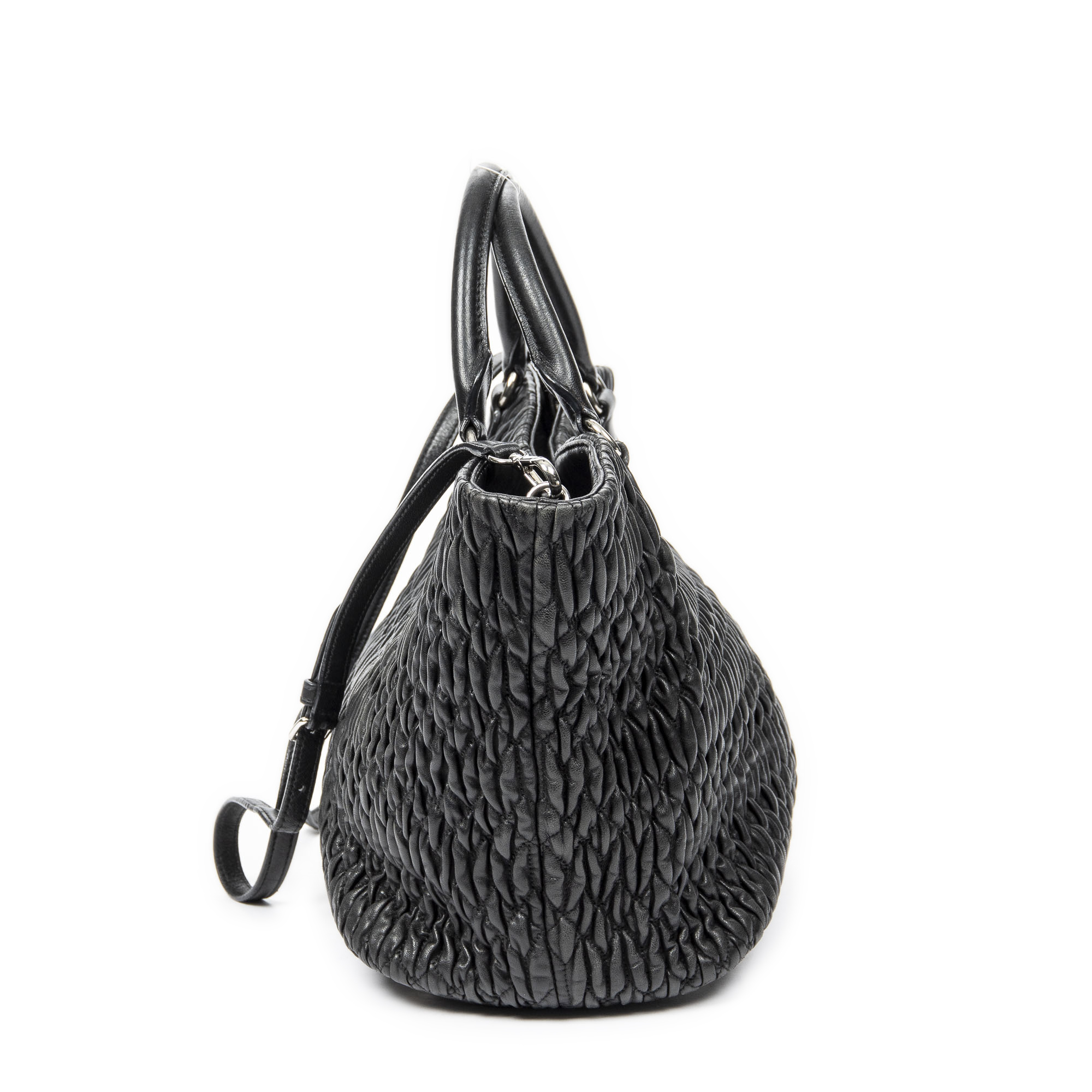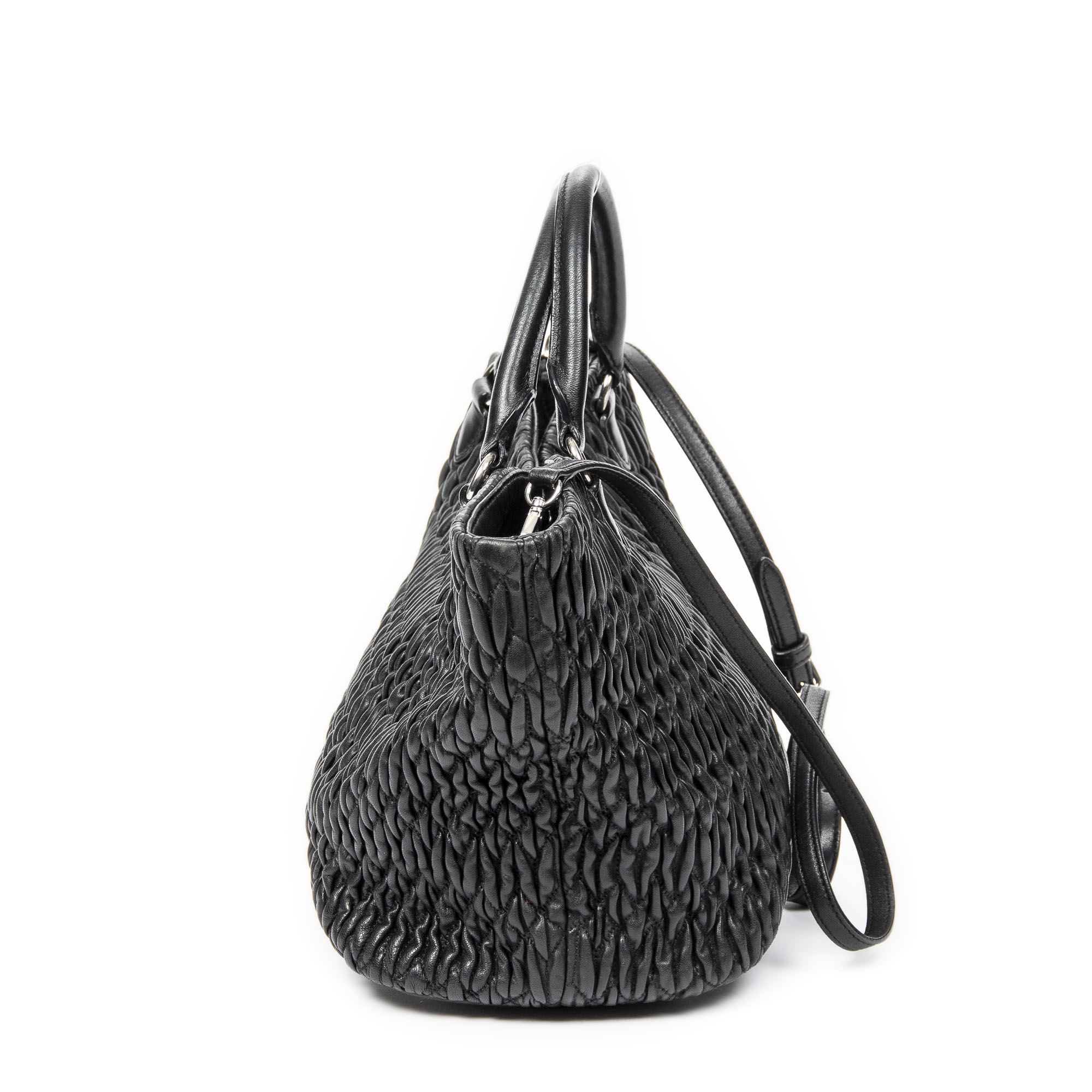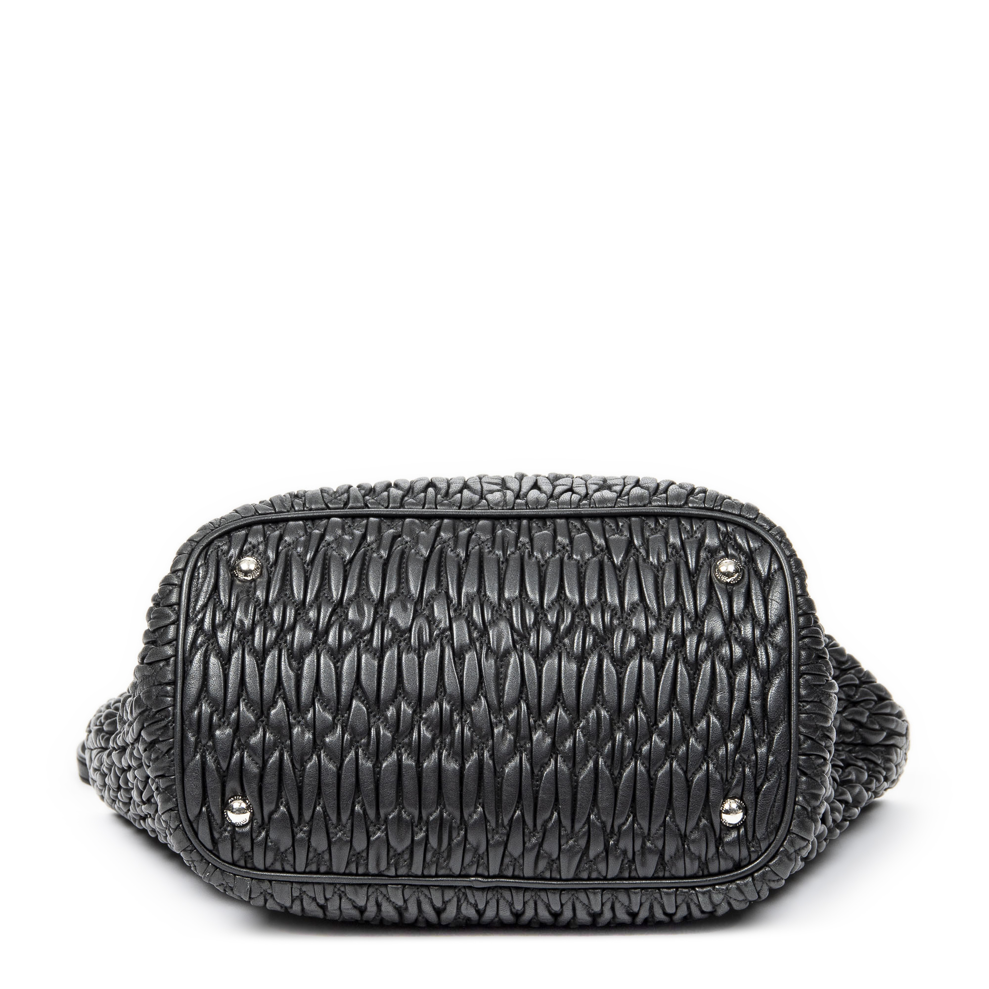 Miu Miu Handbag Medium Crystal Chain Tote in Black Nappa Matelasse Leather and Silver hardware. The product is in Excellent Condition (A).