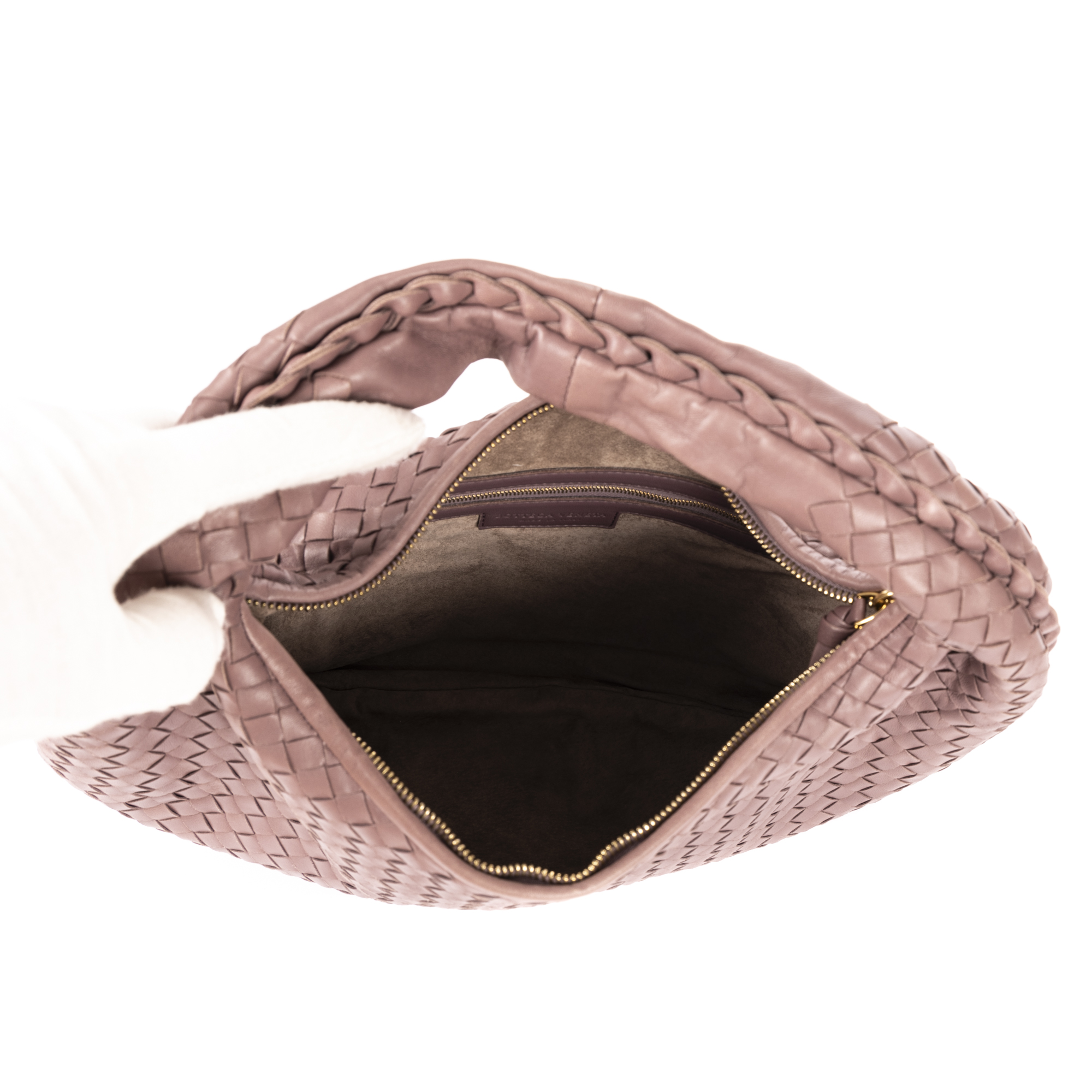 Bottega Veneta Handbag Medium Hobo in Pink Intrecciato Leather and Gold hardware. The product is in Excellent Condition (A).
