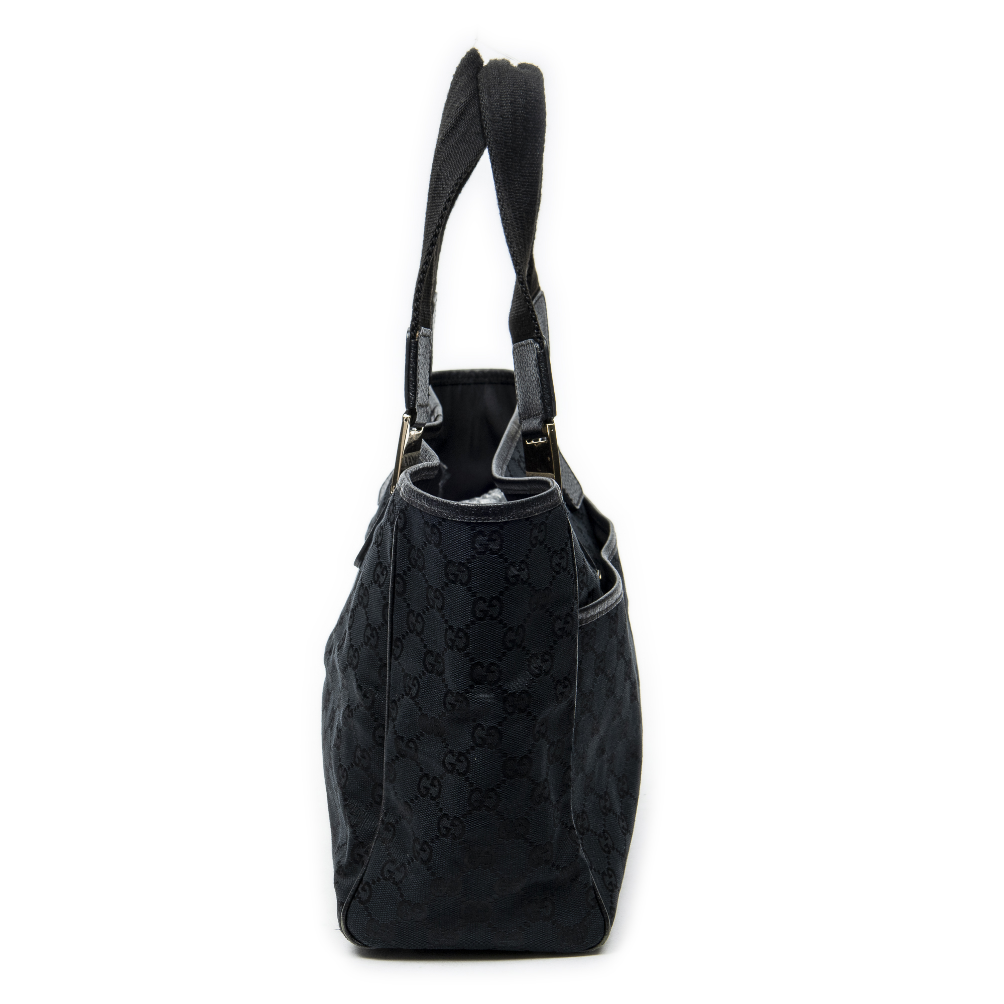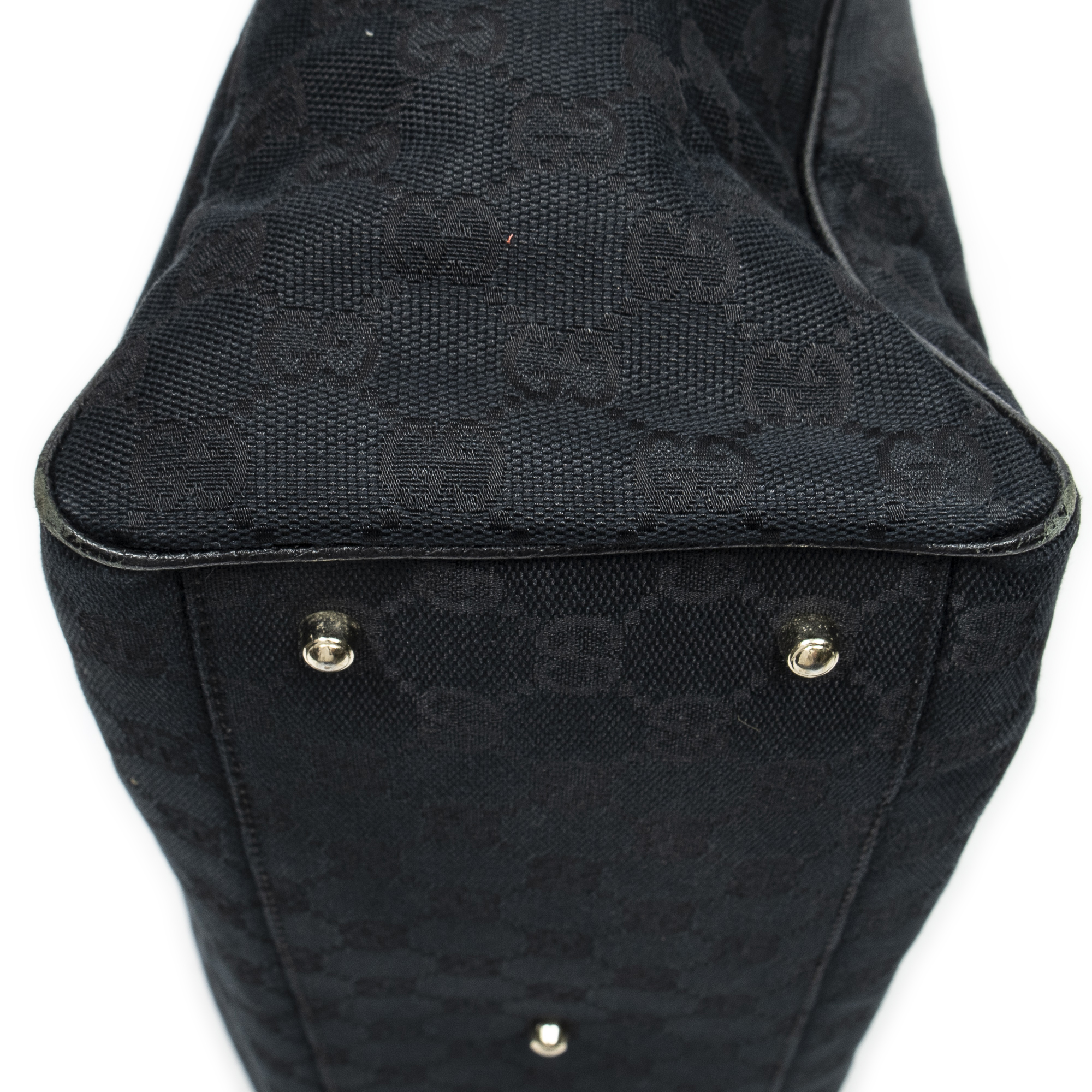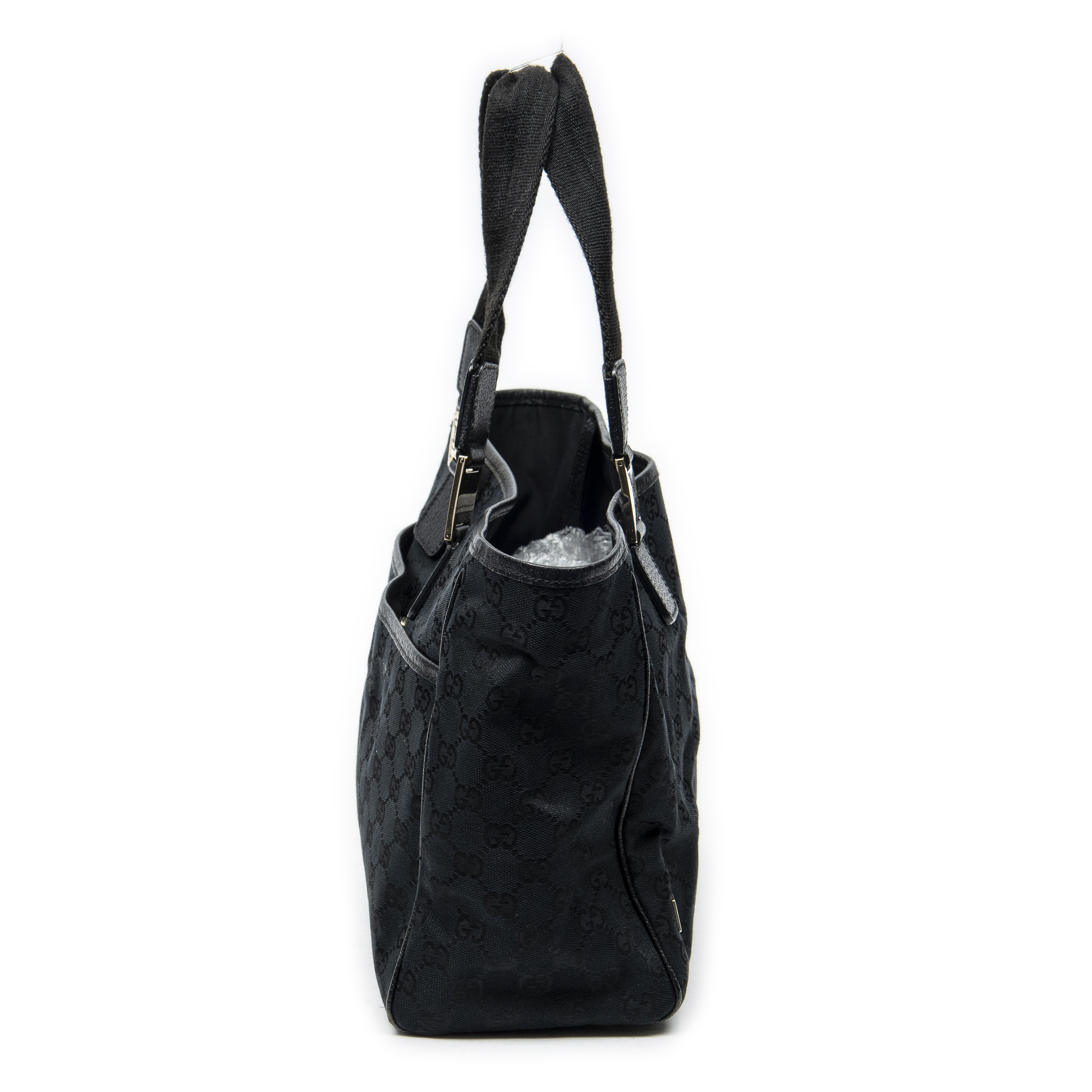 Gucci Handbag Medium Pop Tote in Black Monogrammed Canvas and Gold hardware. The product is in Very Good Condition (AB).