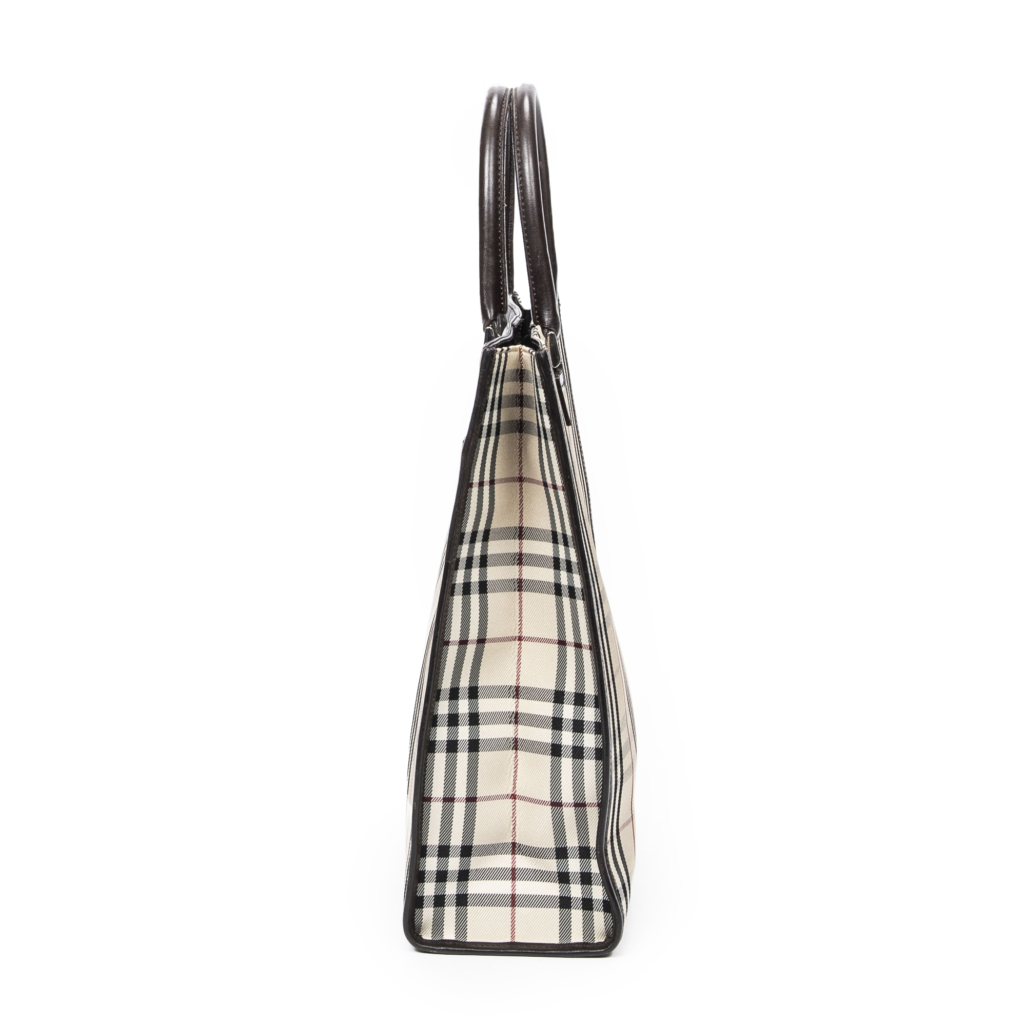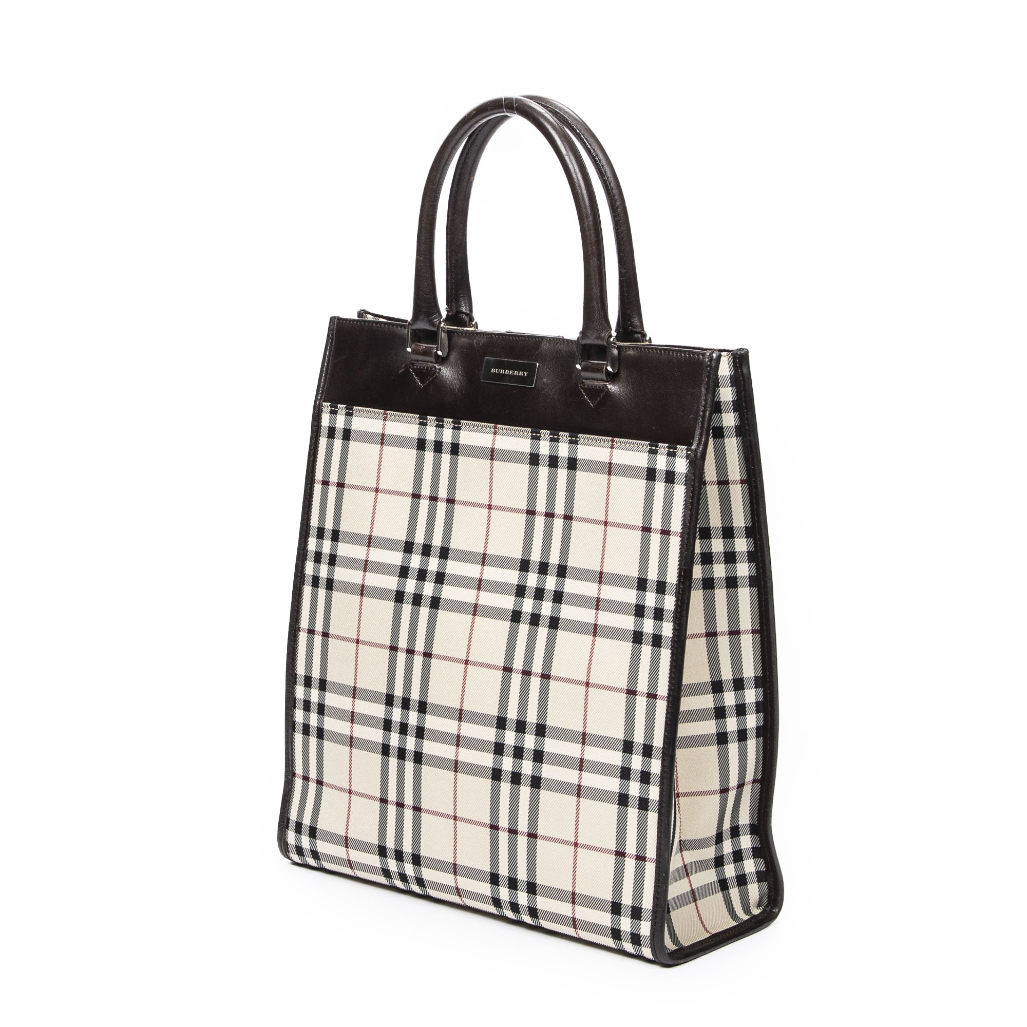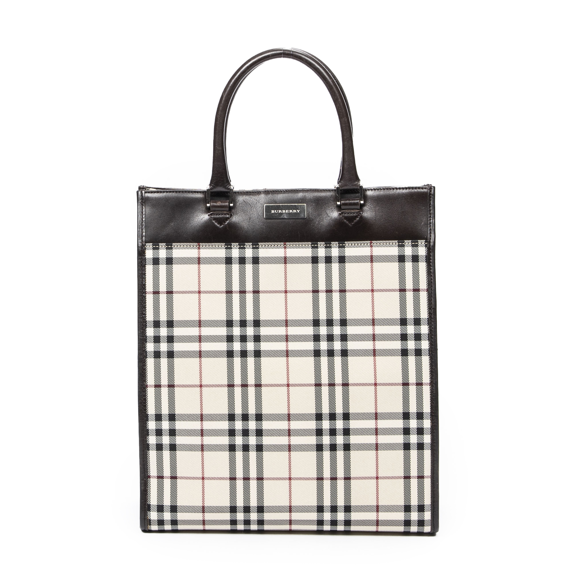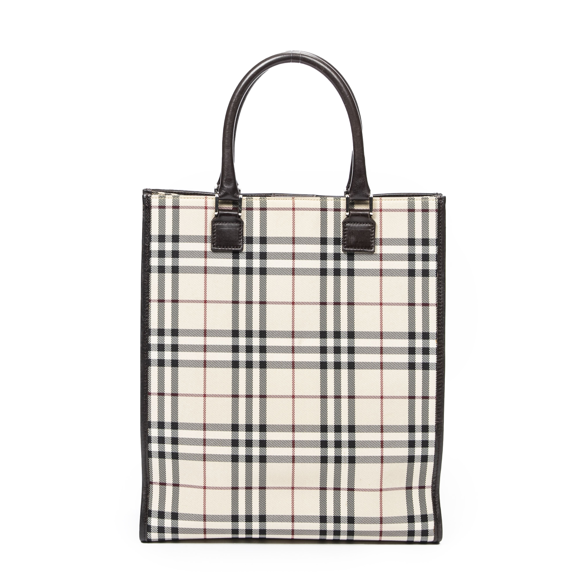 Burberry Handbag Medium Tall Tote in Beige/Dark Brown Nova Check Canvas and Silver hardware. The product is in Excellent Condition (A).