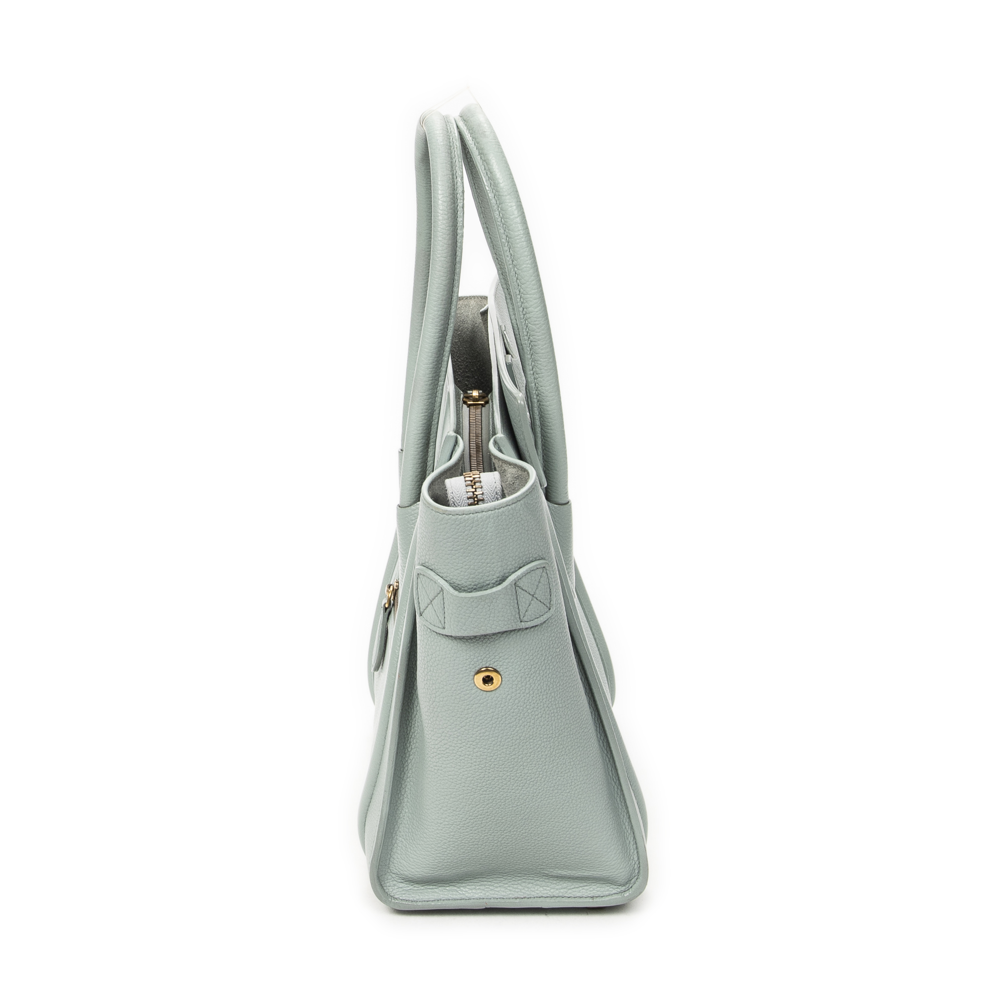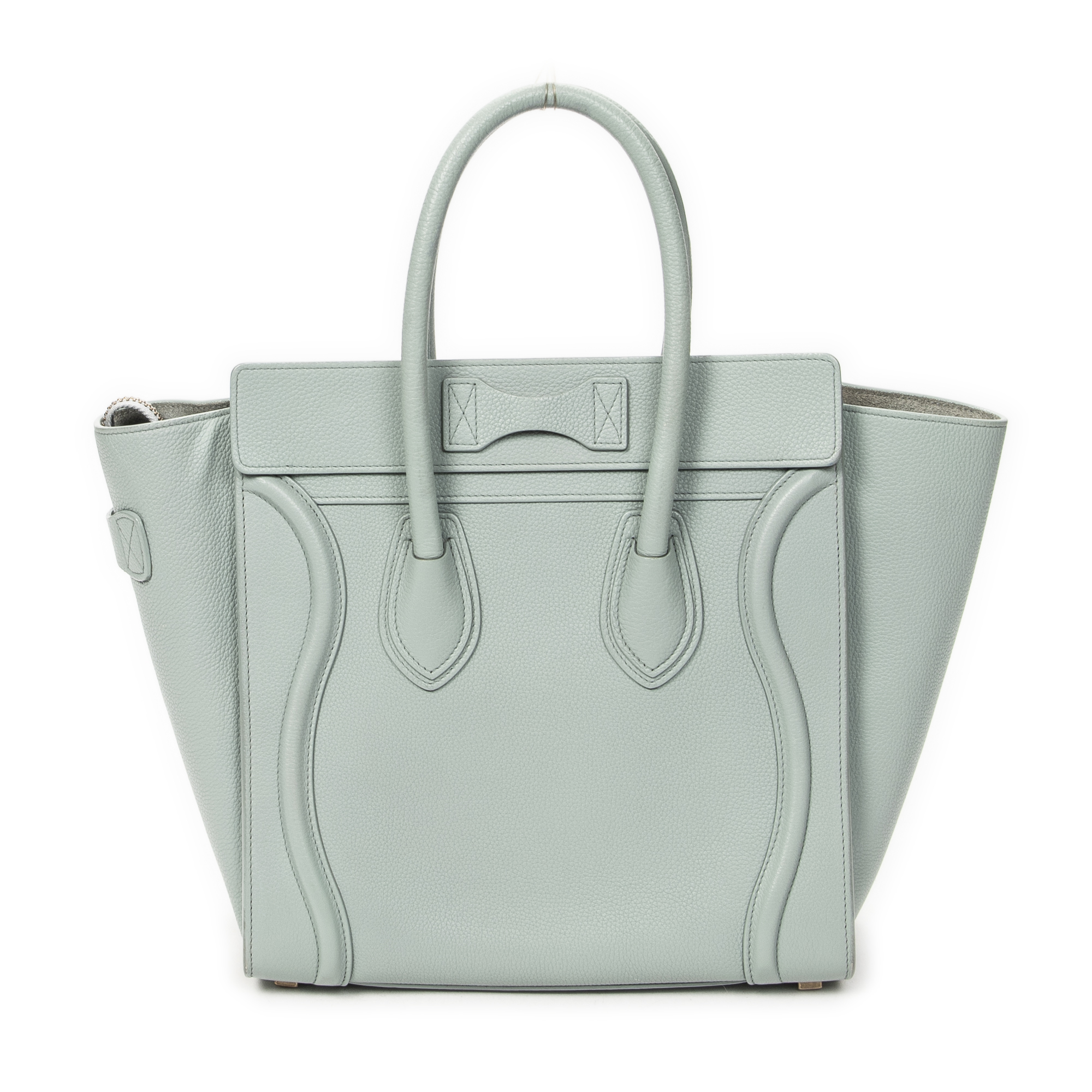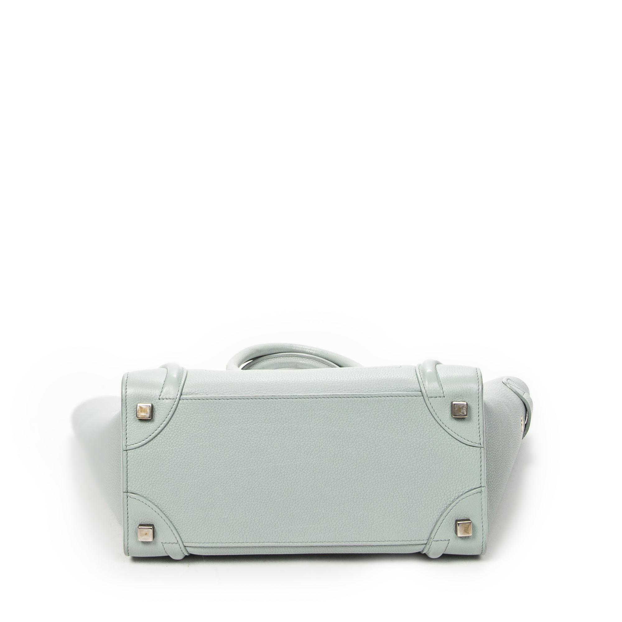 Celine Handbag Micro Luggage in Light Blue Grained Calfskin Leather and Gold hardware. The product is in Excellent Condition (A).