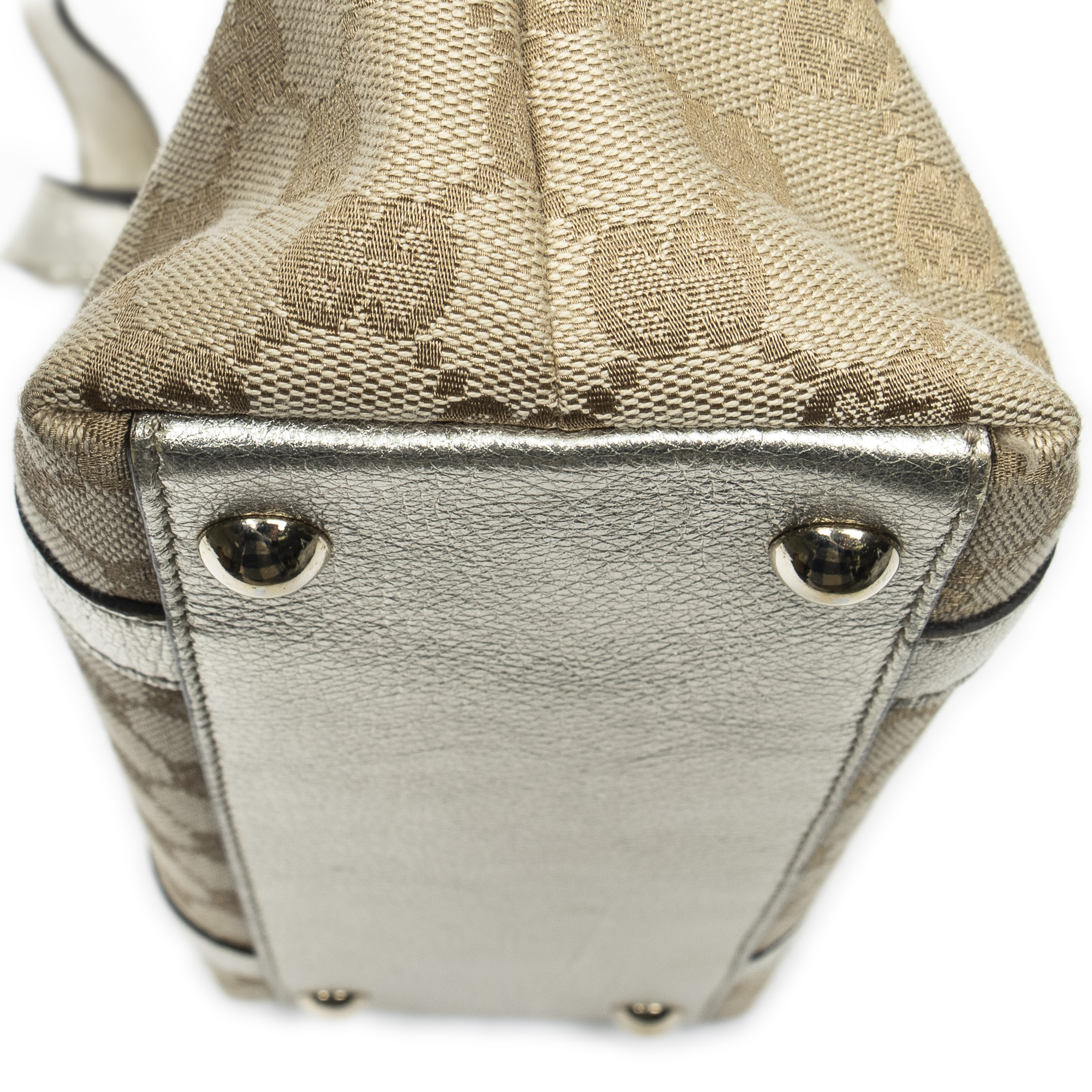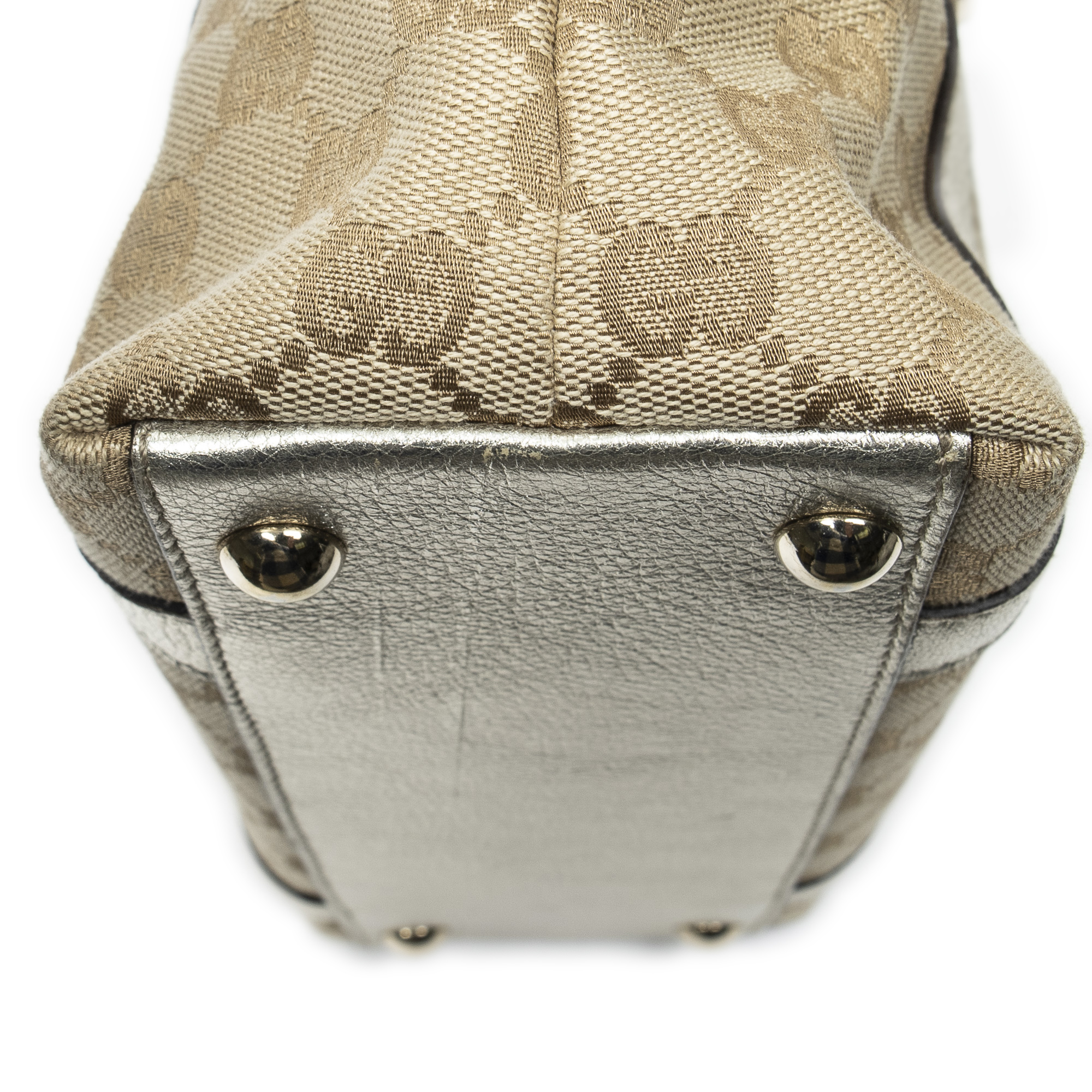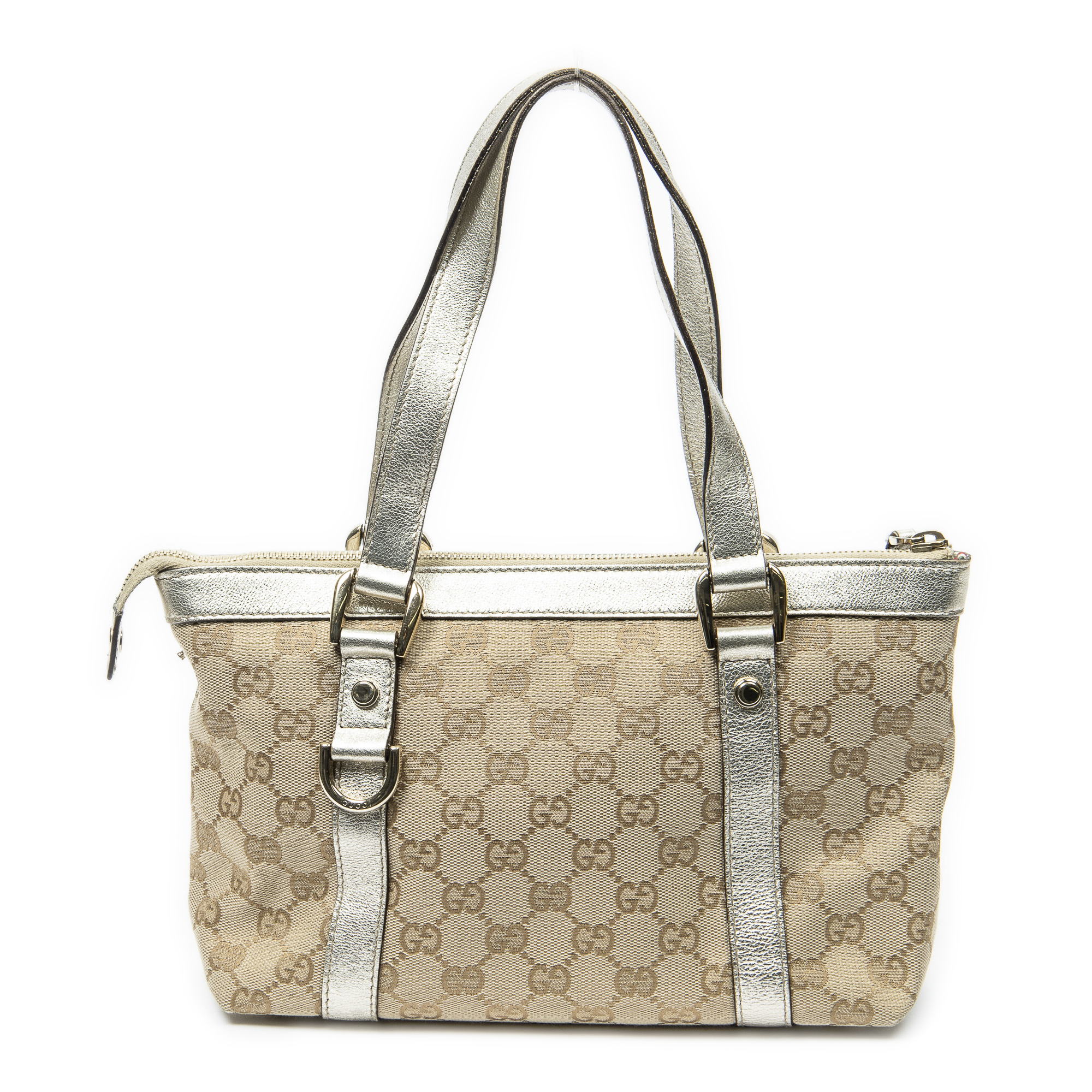 Gucci Handbag Mini Abbey Shopper in Gold/Beige Monogrammed Canvas and Gold hardware. The product is in Very Good Condition (AB).