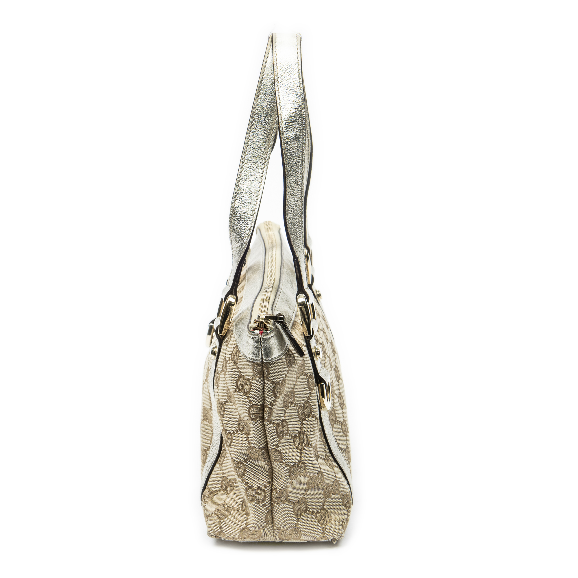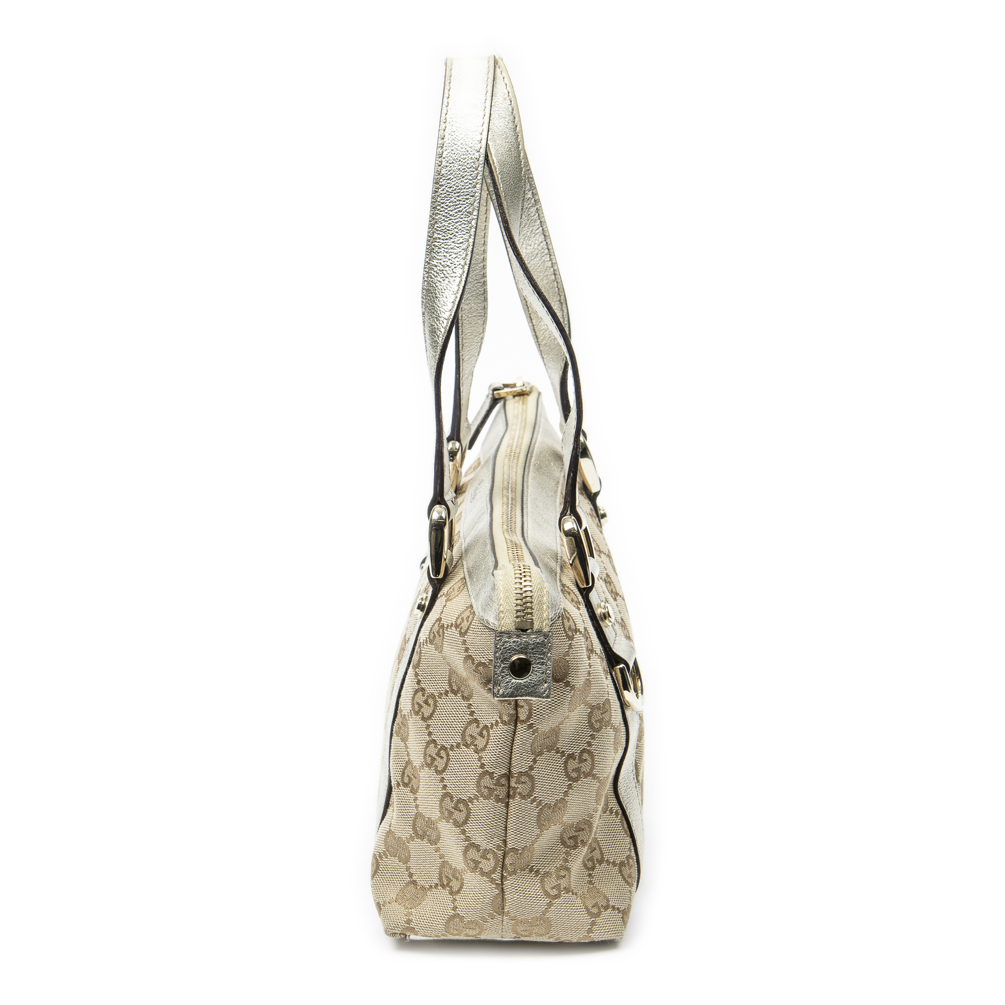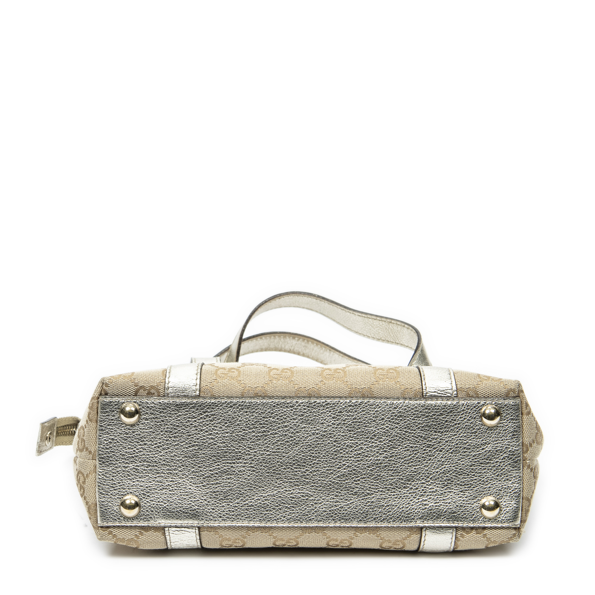 Gucci Handbag Mini Abbey Shopper in Gold/Beige Monogrammed Canvas and Gold hardware. The product is in Very Good Condition (AB).