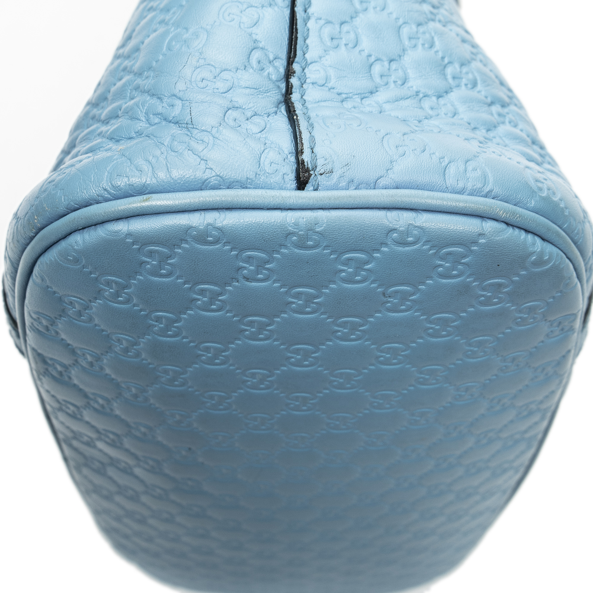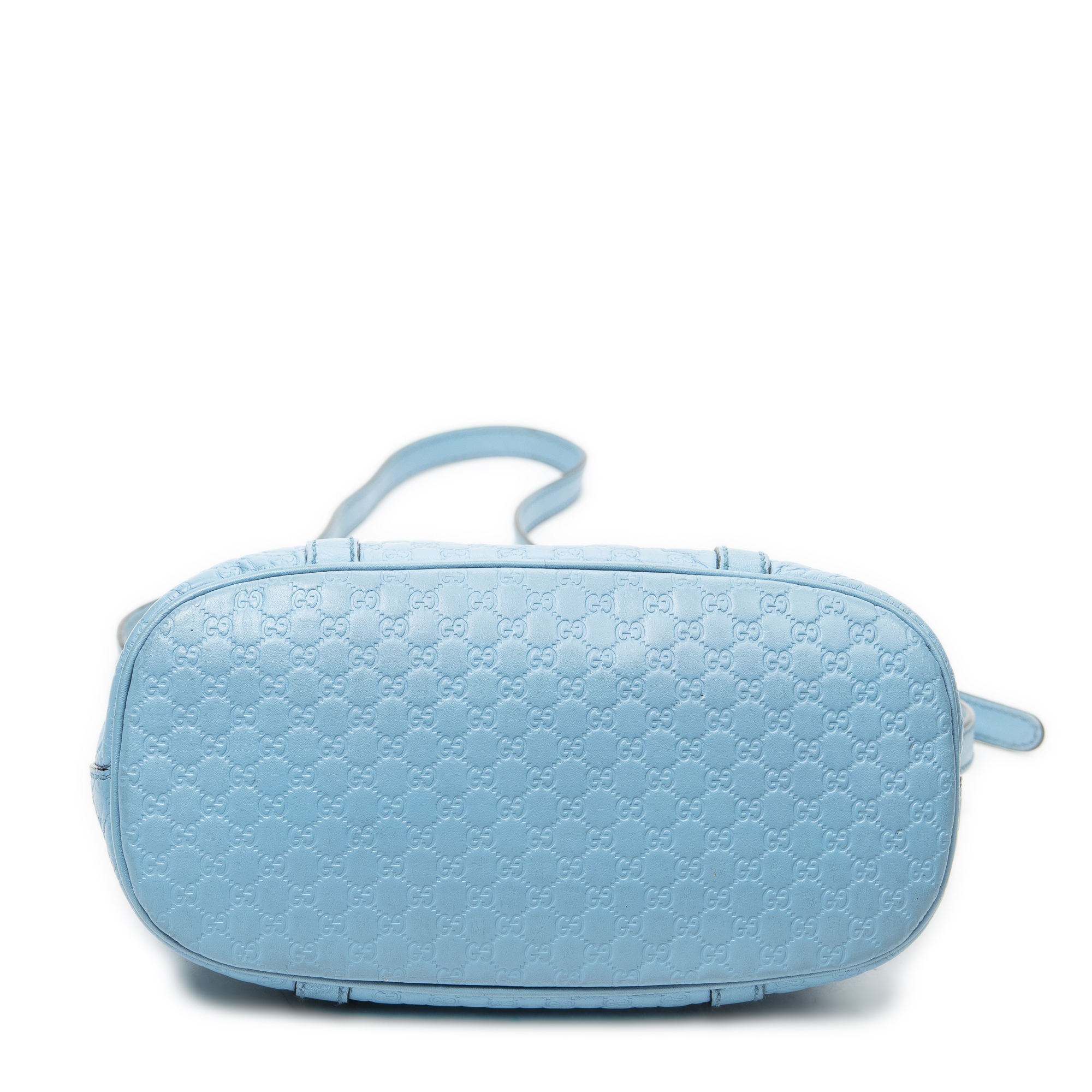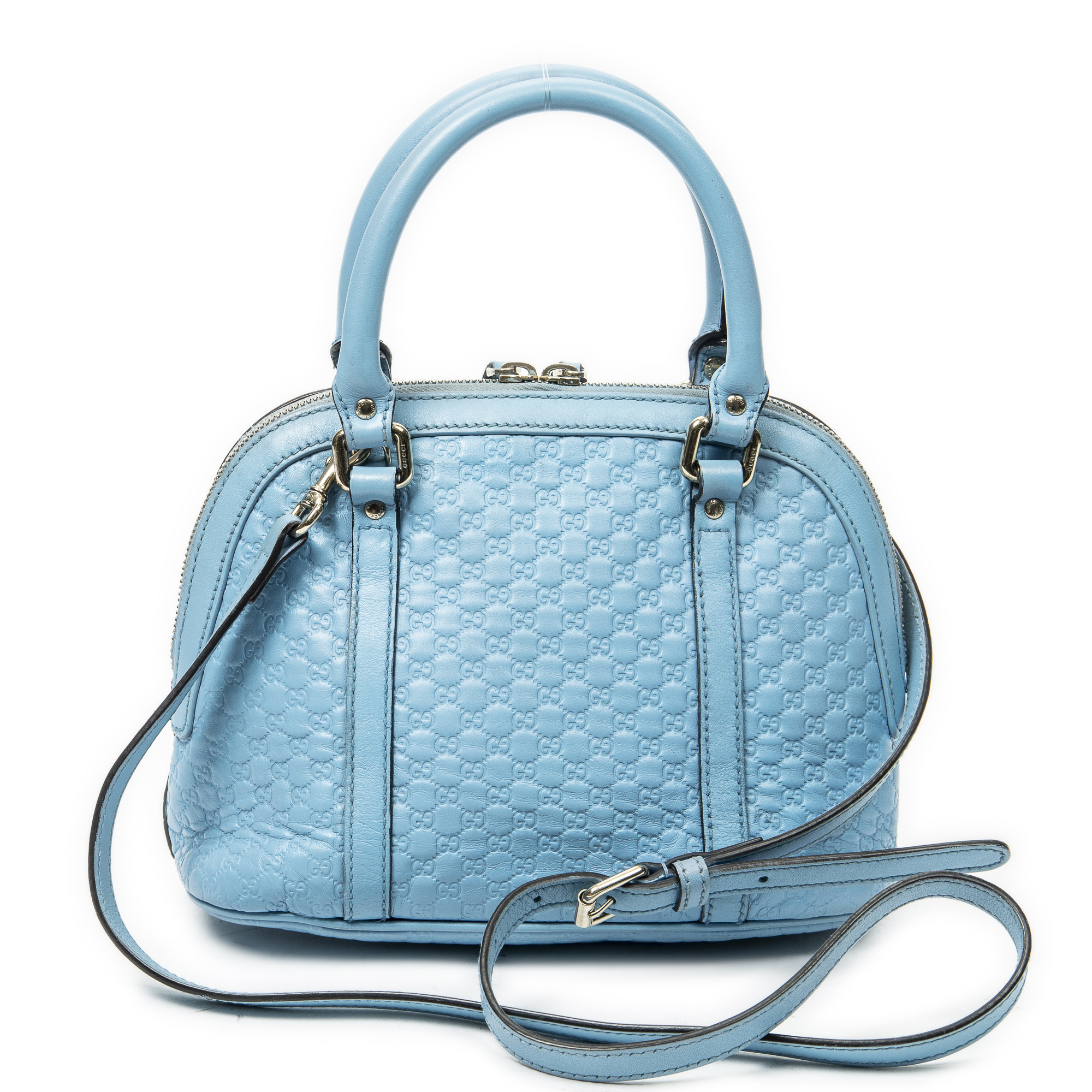 Gucci Handbag Mini Dome Tote in Light Blue Microguccissima Leather and Gold hardware. The product is in Excellent Condition (A).