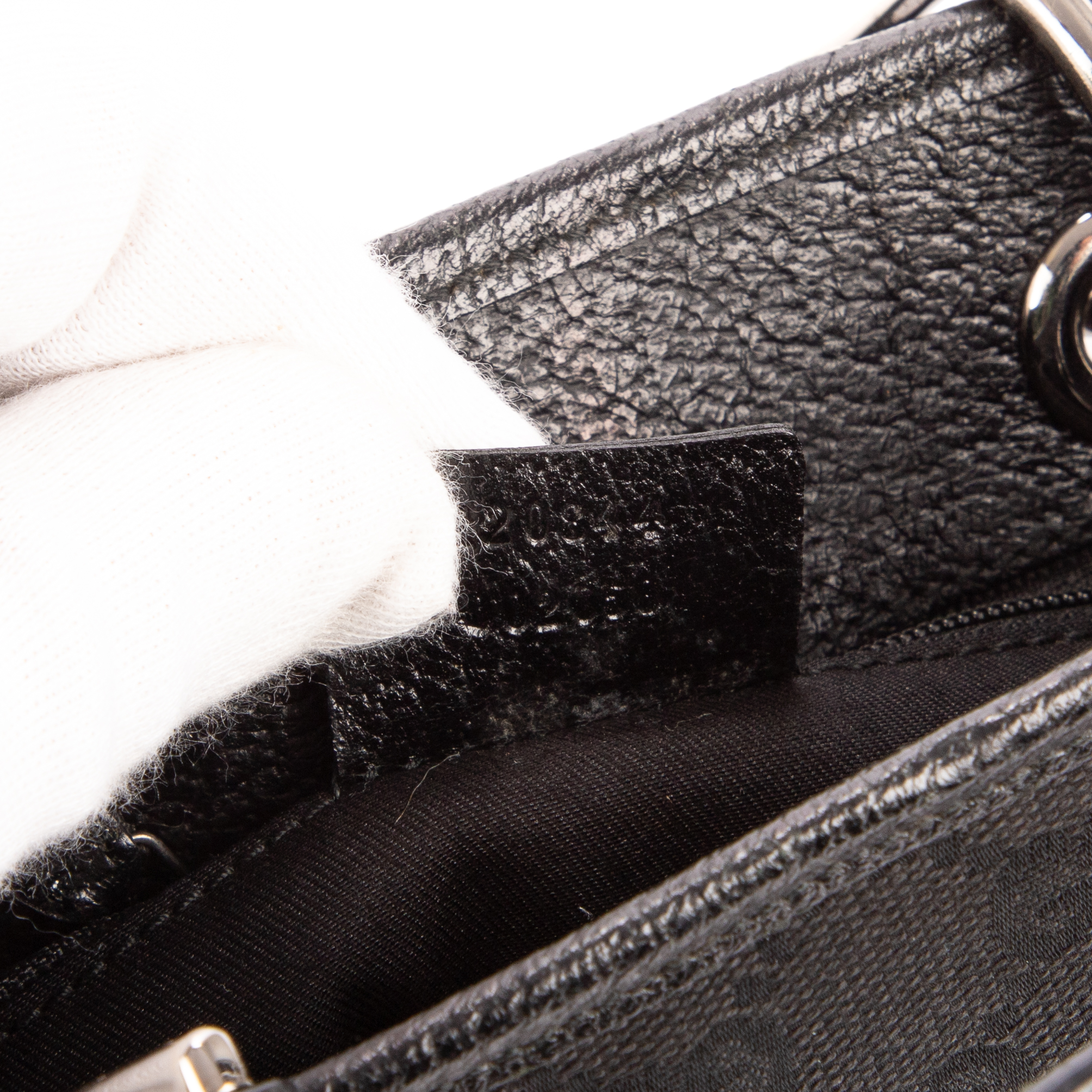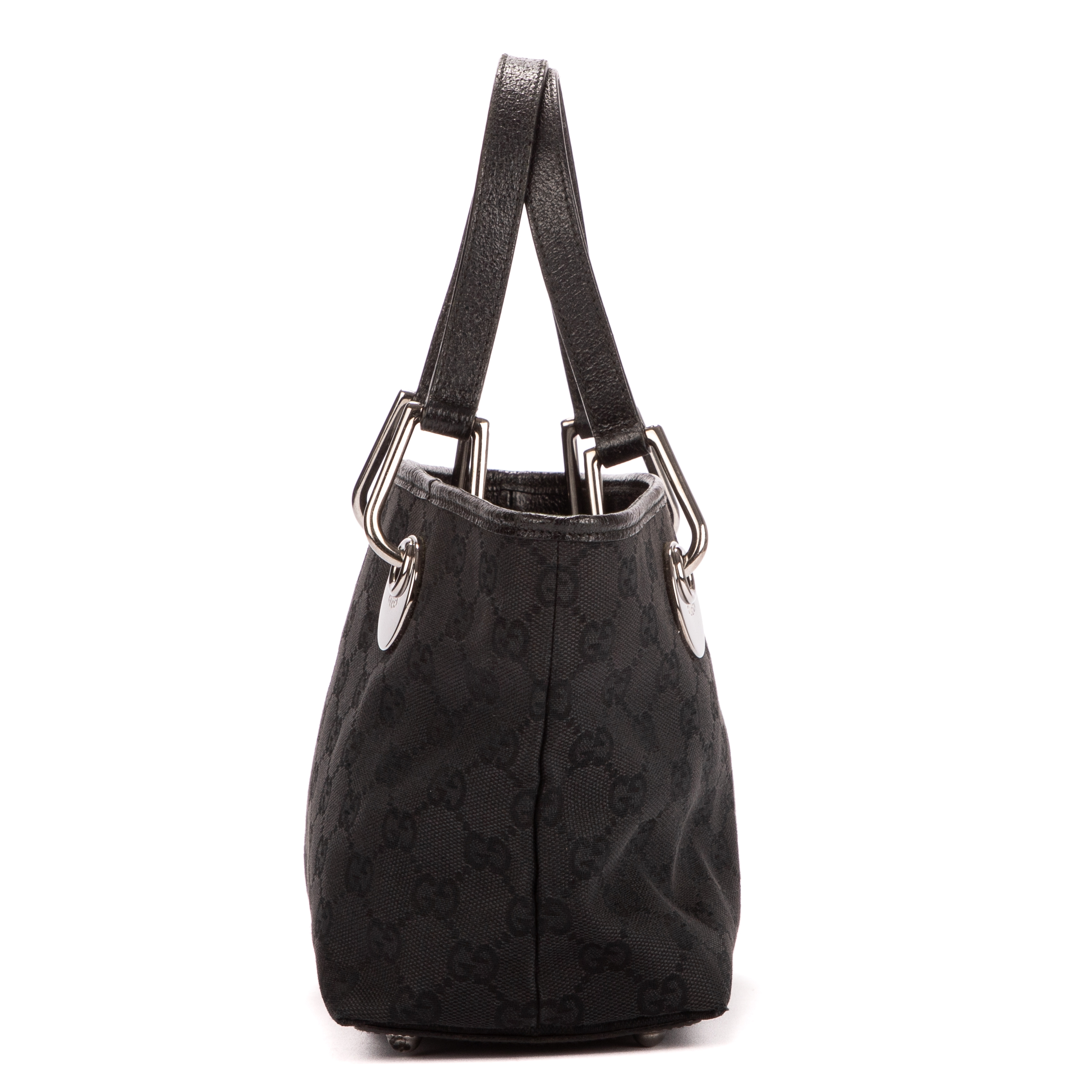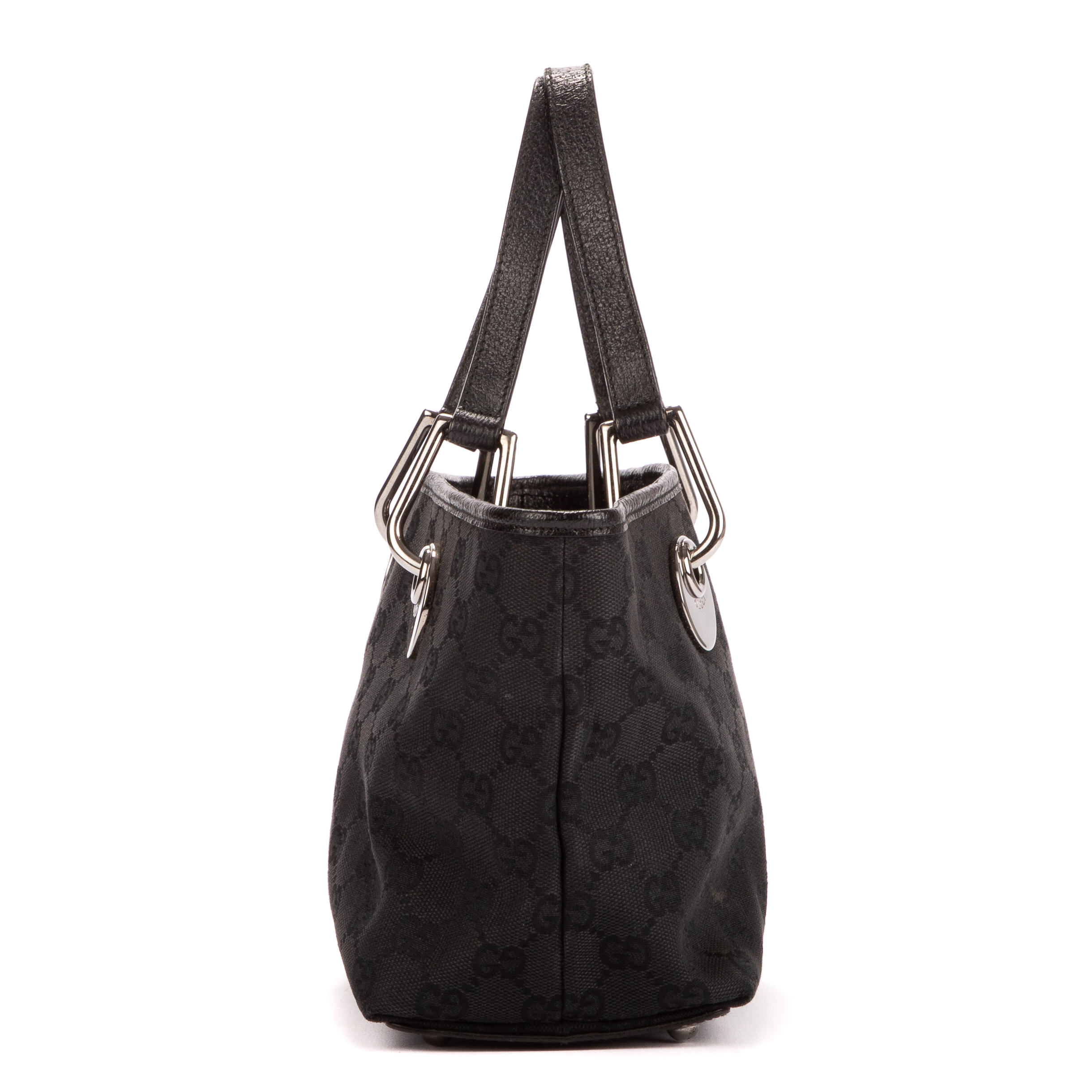 Gucci Handbag Mini Eclipse Tote in Black Monogrammed Canvas and Silver hardware. The product is in Excellent Condition (A).