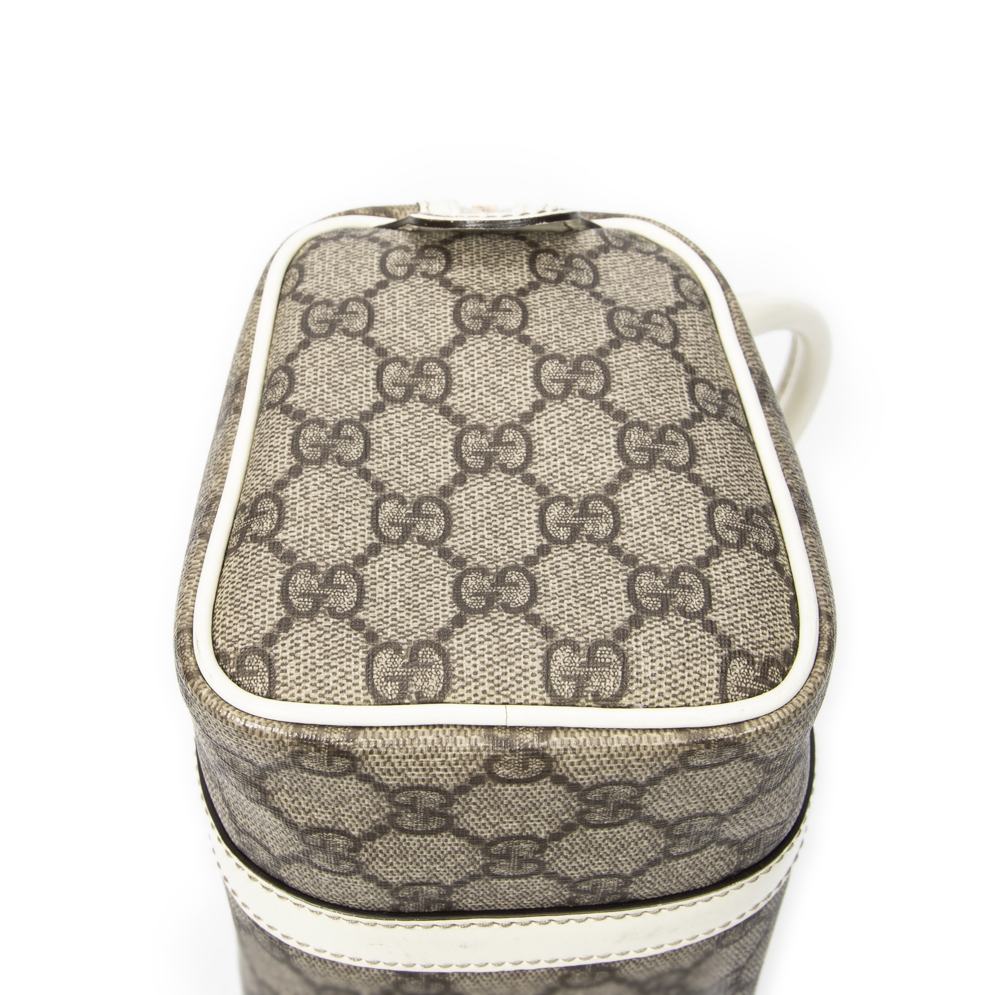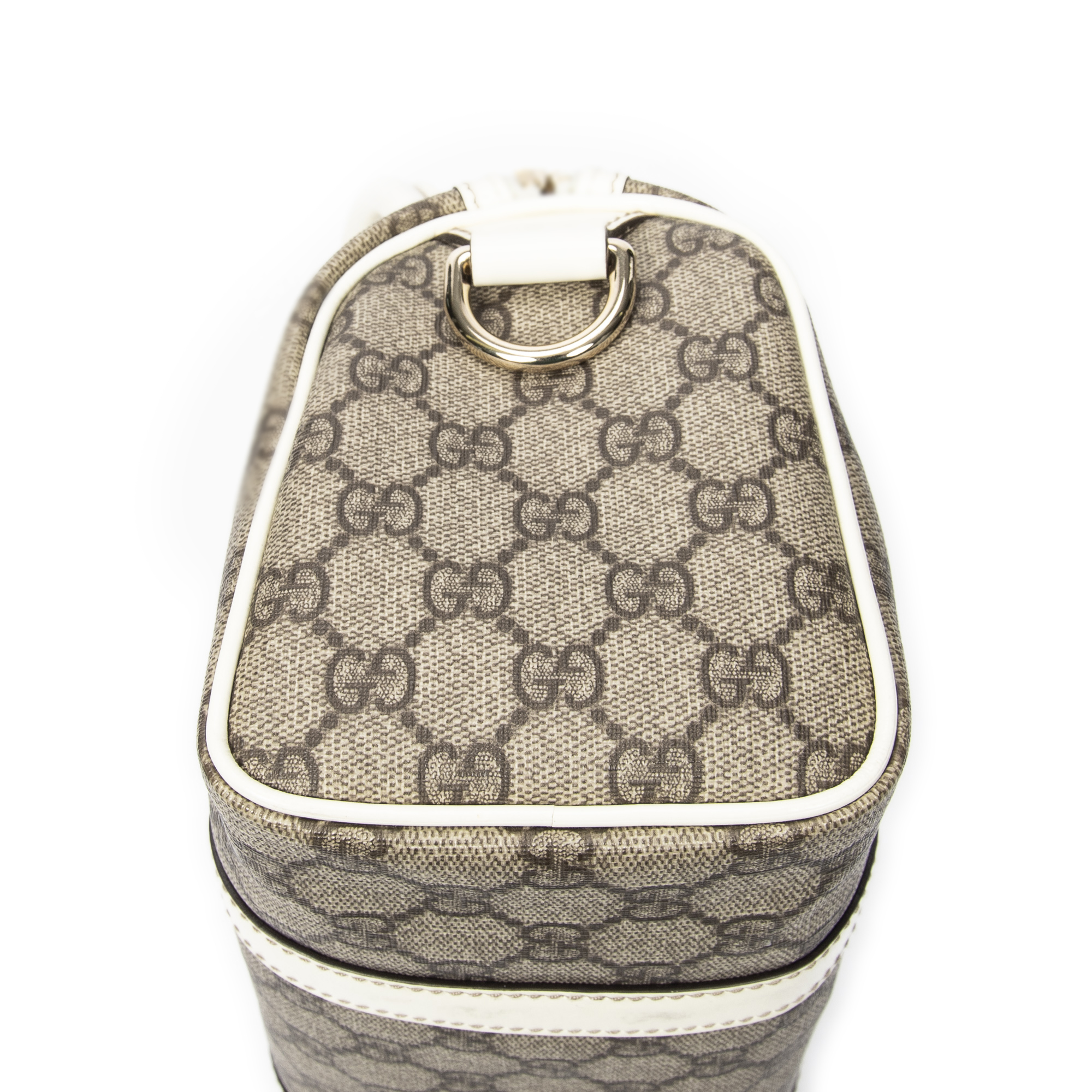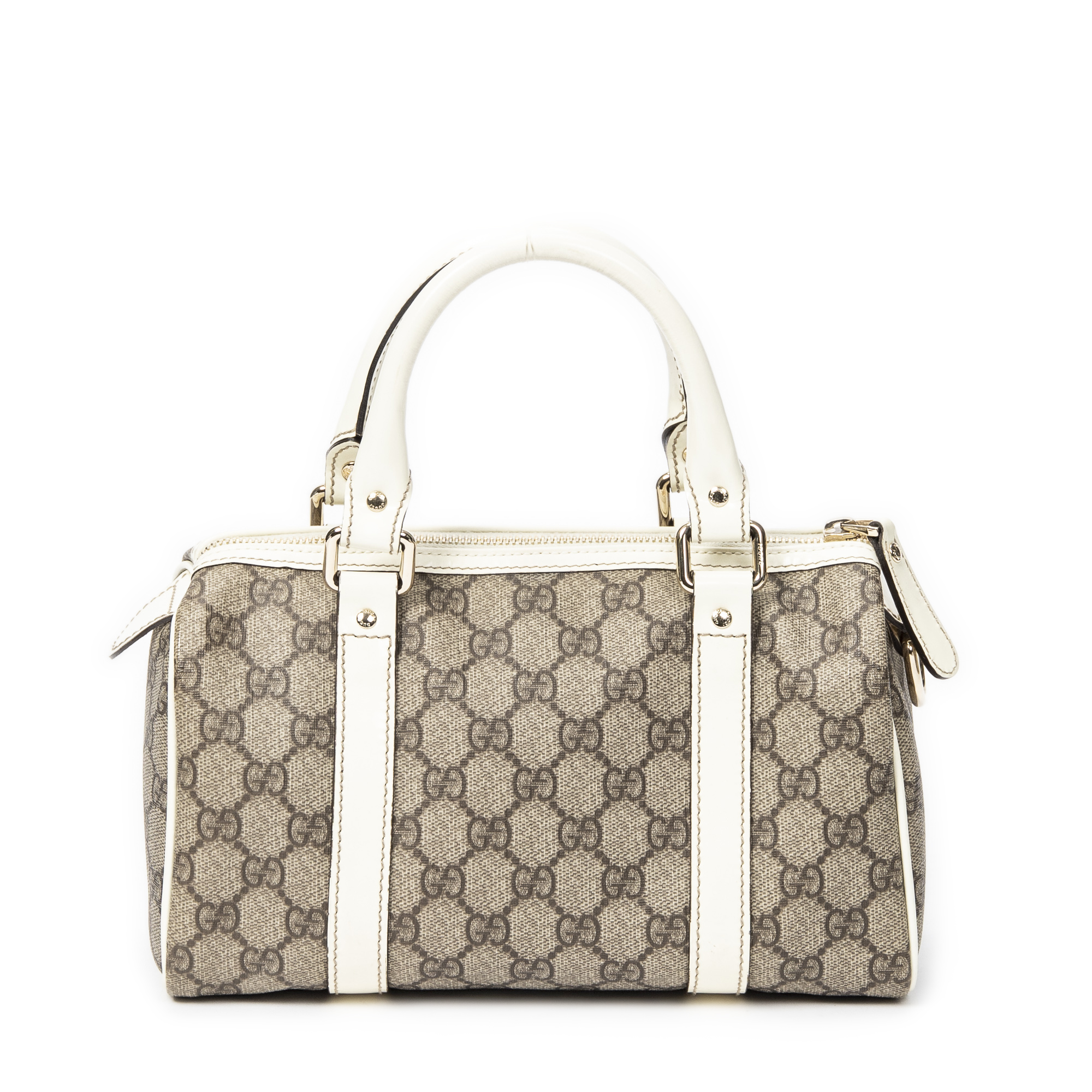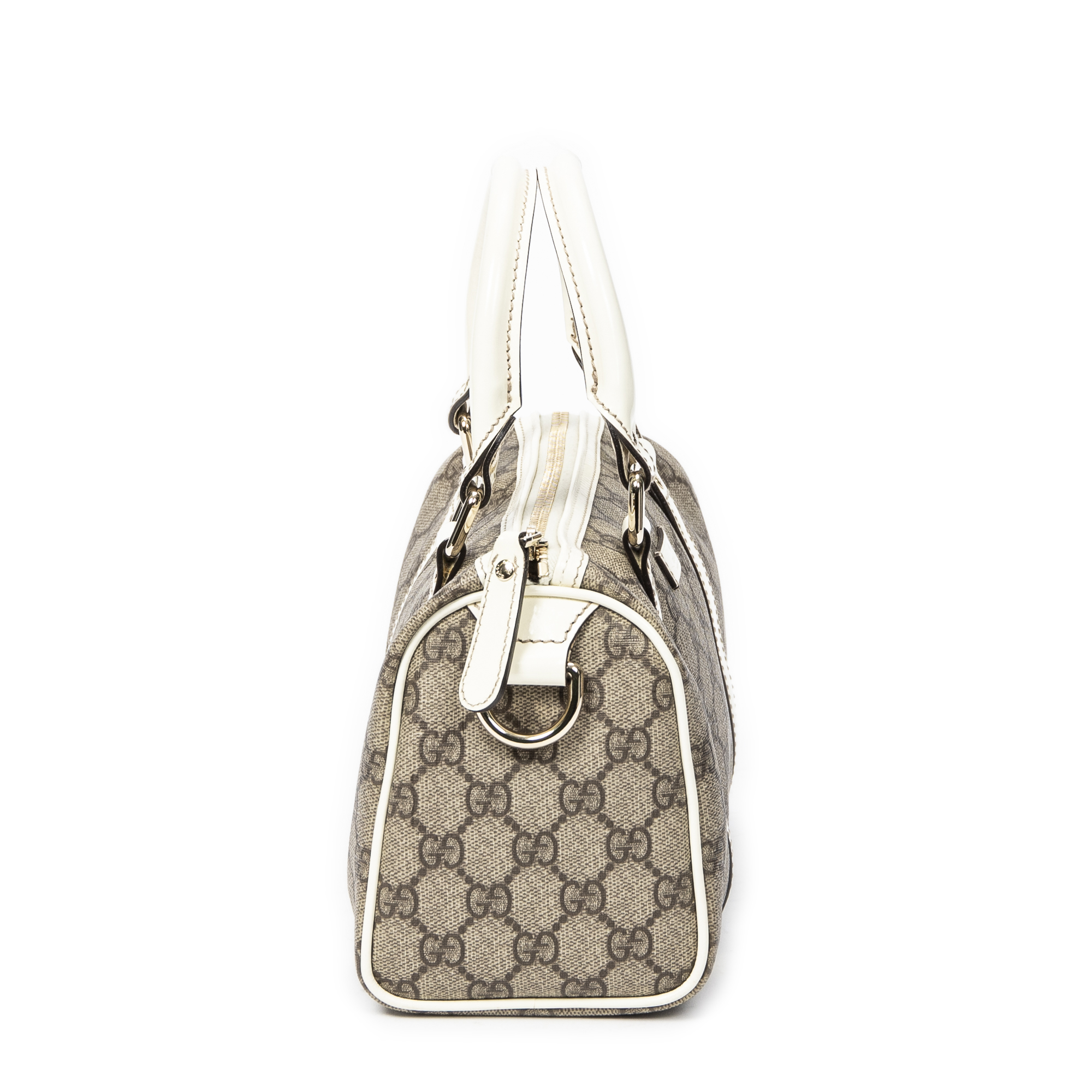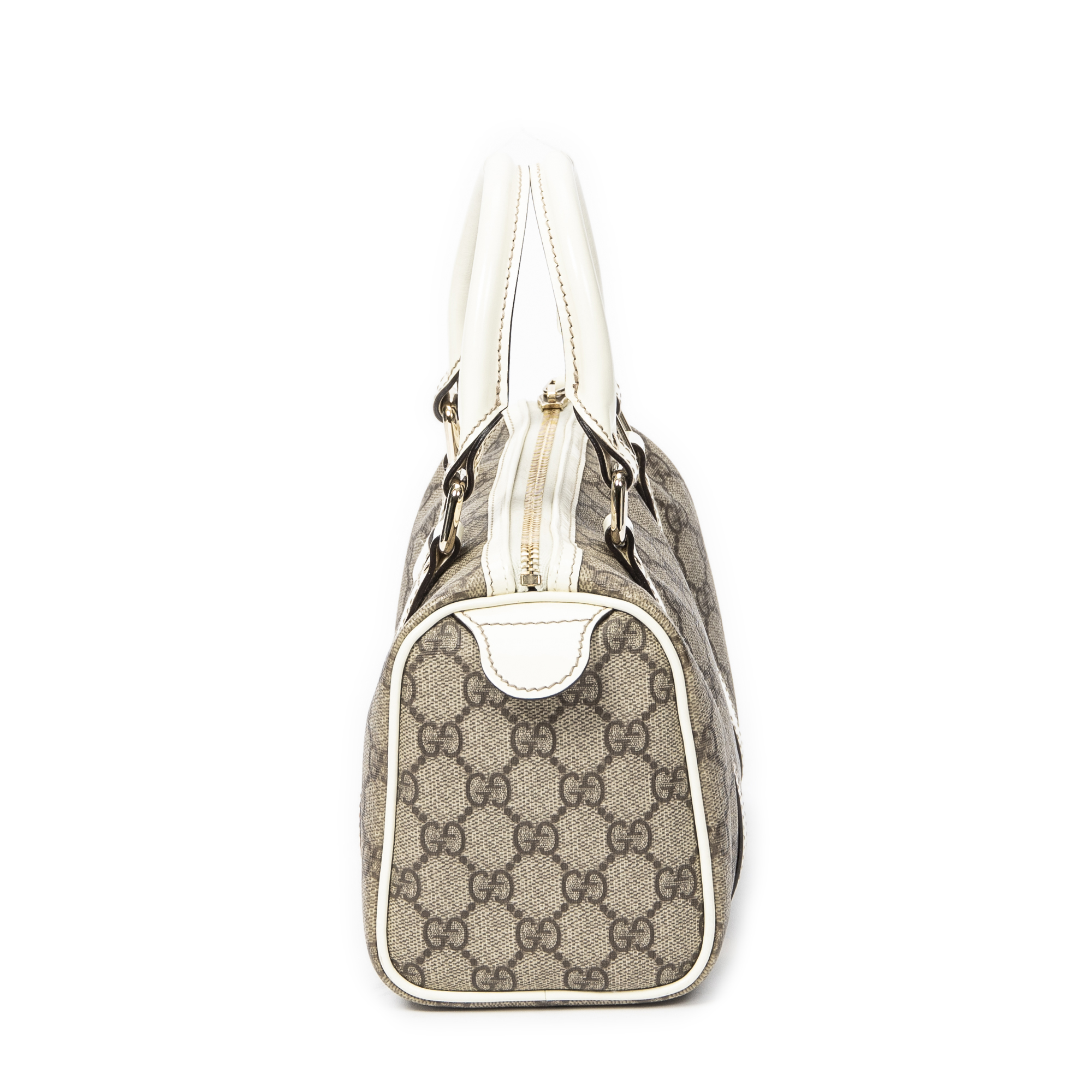 Gucci Handbag Mini Joy Boston in White/Beige Supreme Coated Canvas and Gold hardware. The product is in Excellent Condition (A).