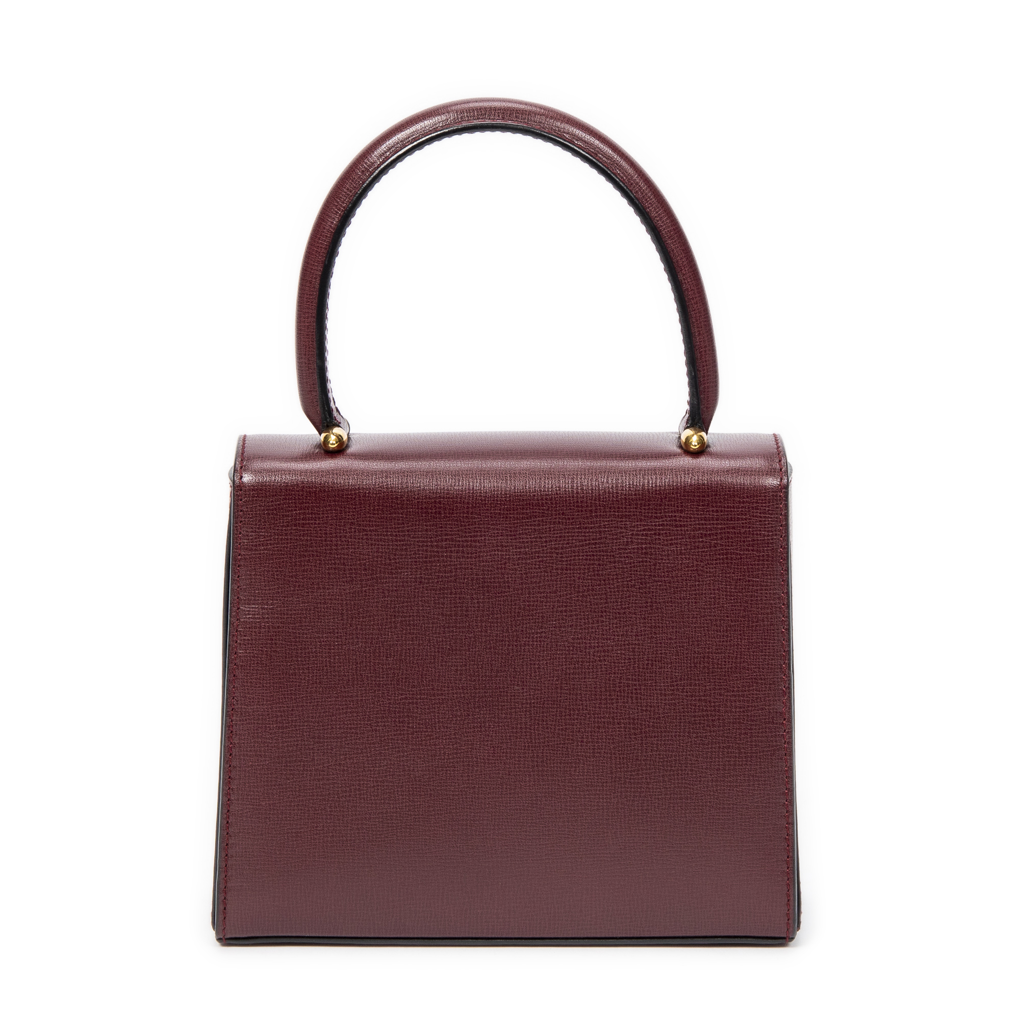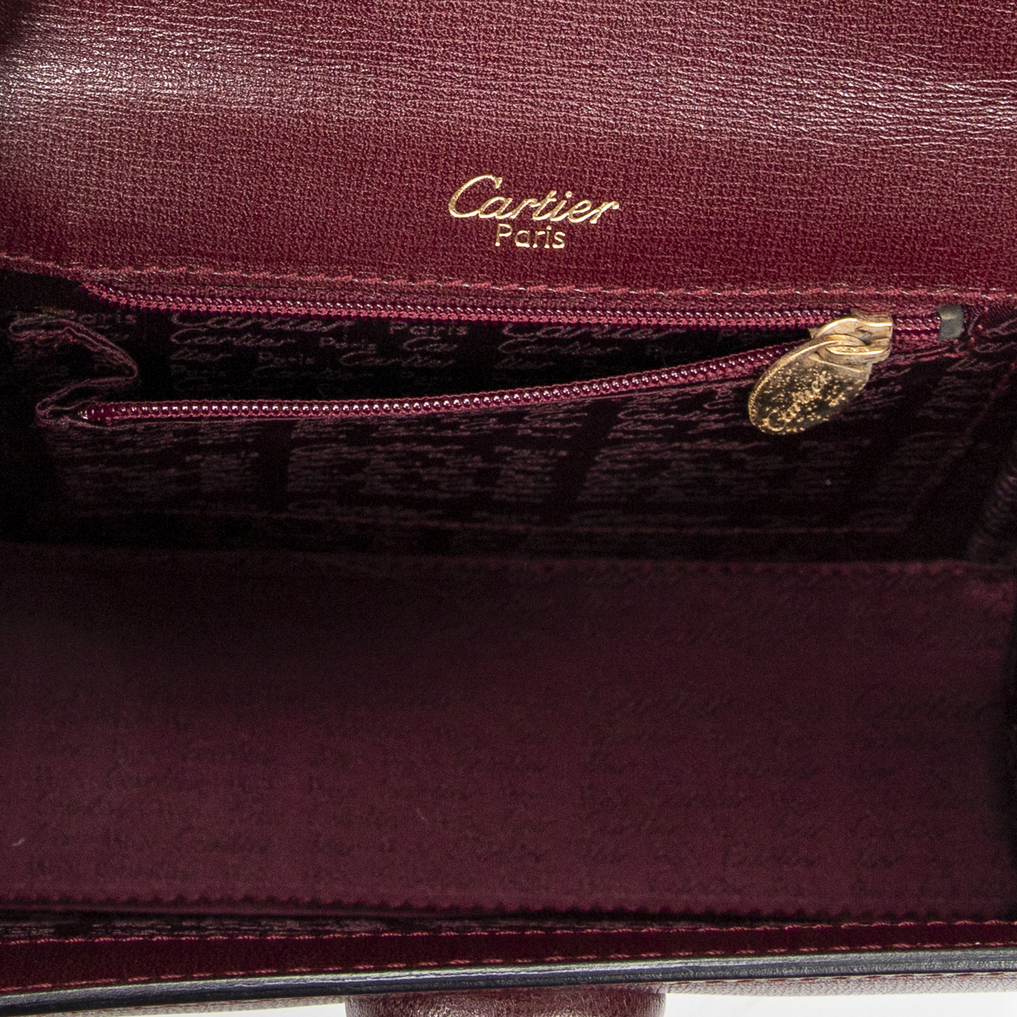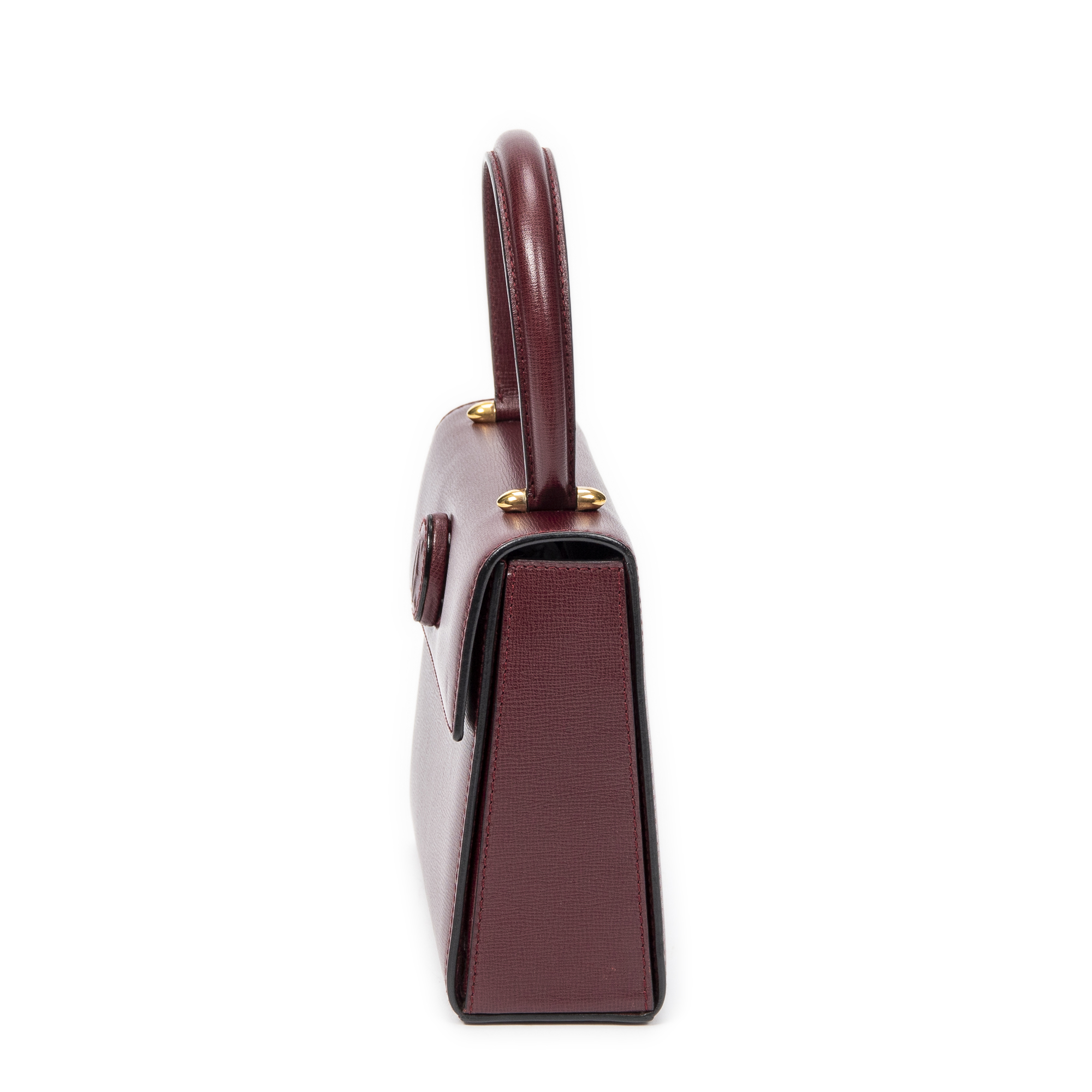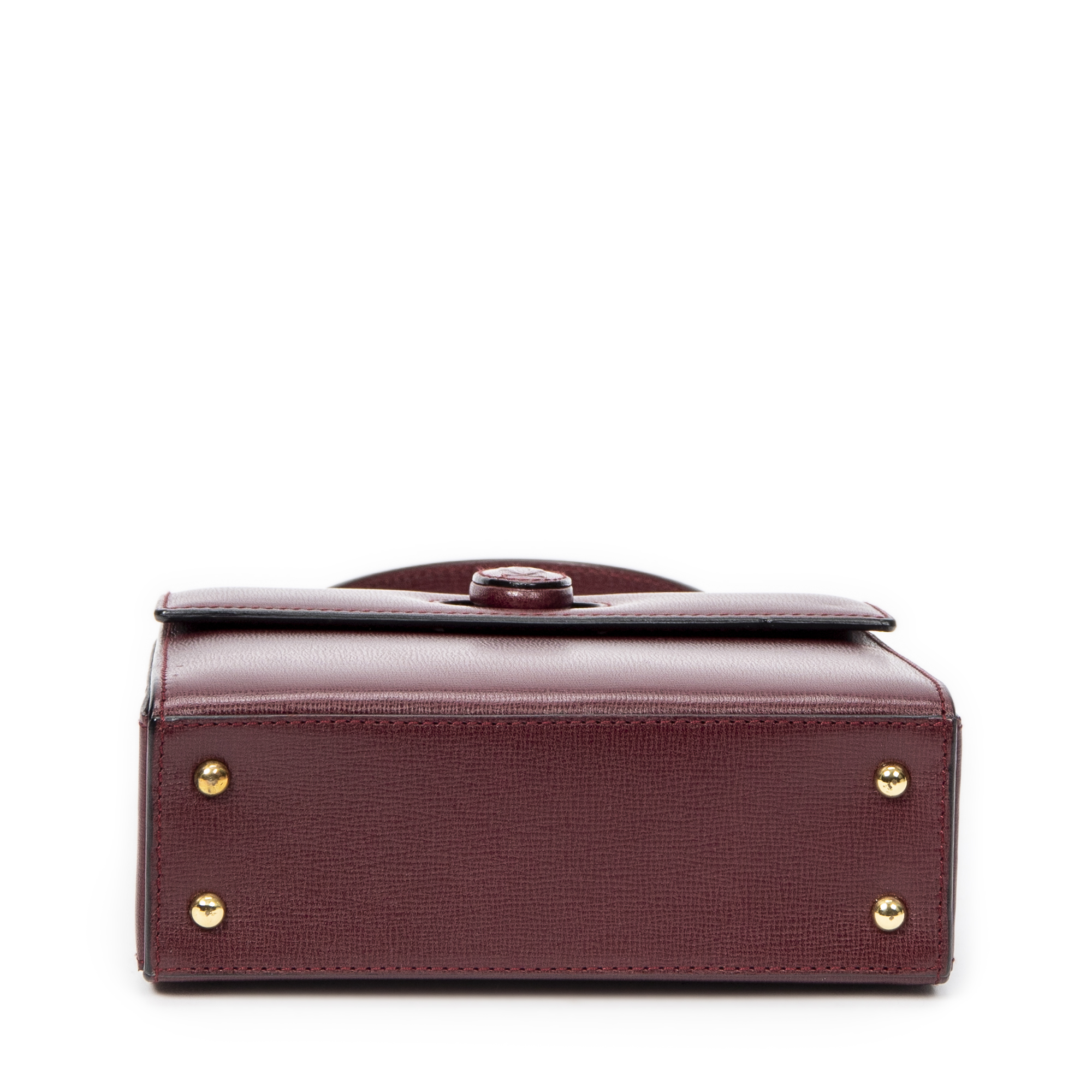 Cartier Handbag Mini Must de Cartier Top Handle in Burgundy Calfskin Leather and Gold hardware. The product is in Excellent Condition (A).