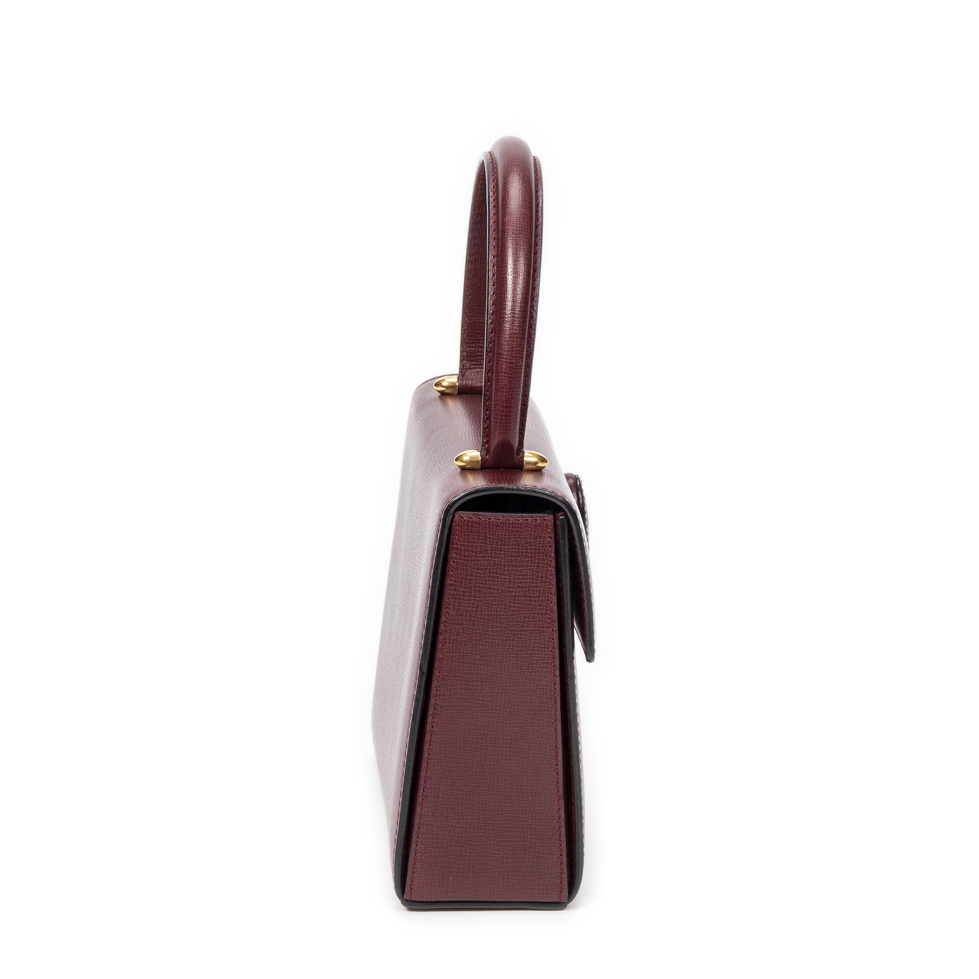 Description : Cartier Handbag Mini Must de Cartier Top Handle in Burgundy Calfskin Leather and Gold hardware. The product is in Excellent Condition (A). Dimensions: 17.5x15x6 cm SKU: ABB9900 Serial number: EL416223 Accessories Included: Card Delivery: We have a 5 to 7 business days delivery policy, hassle-free and duties/tariffs included! BrandCo Paris finds rare and top condition items at great deals, they are worth your patience! Shop with confidence - All BrandCo Paris items are carefully selected and authenticated by our team of experts. All the items come with an authenticity certificate and packaging delivered by BrandCo Paris. Item Condition Grading Table N (Like New) AA (Perfect Condition) A (Excellent Condition) AB (Very Good Condition) B (Good/Fair)