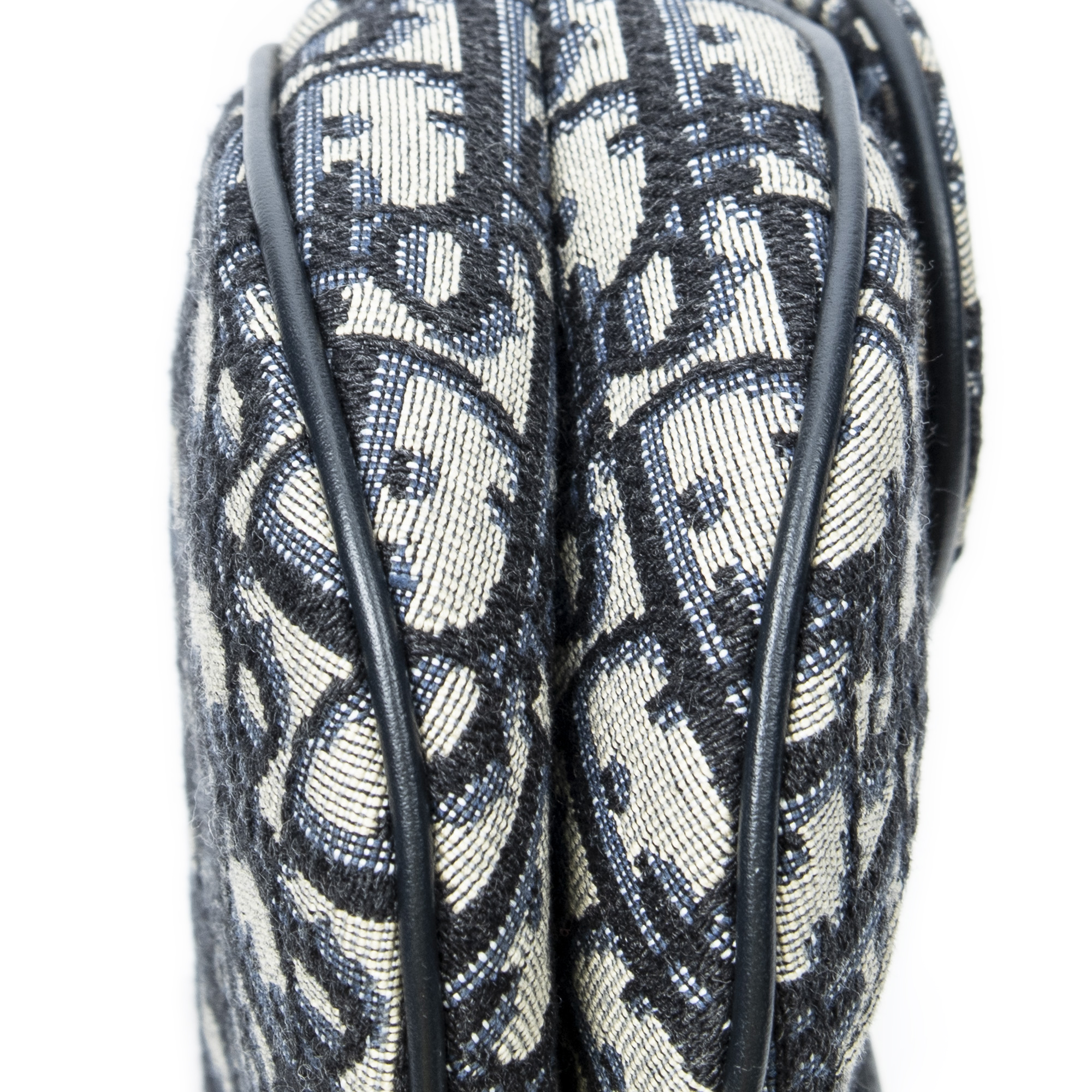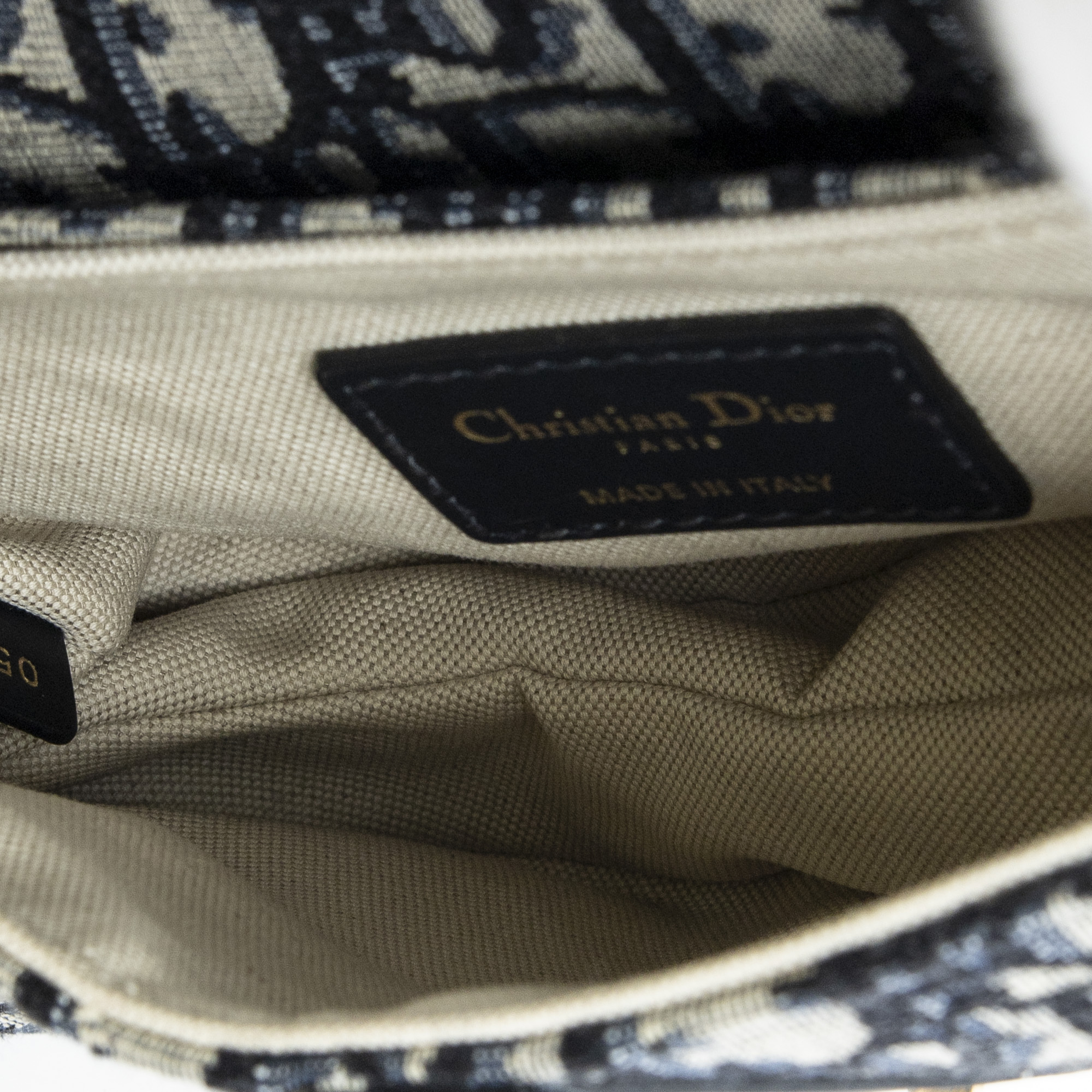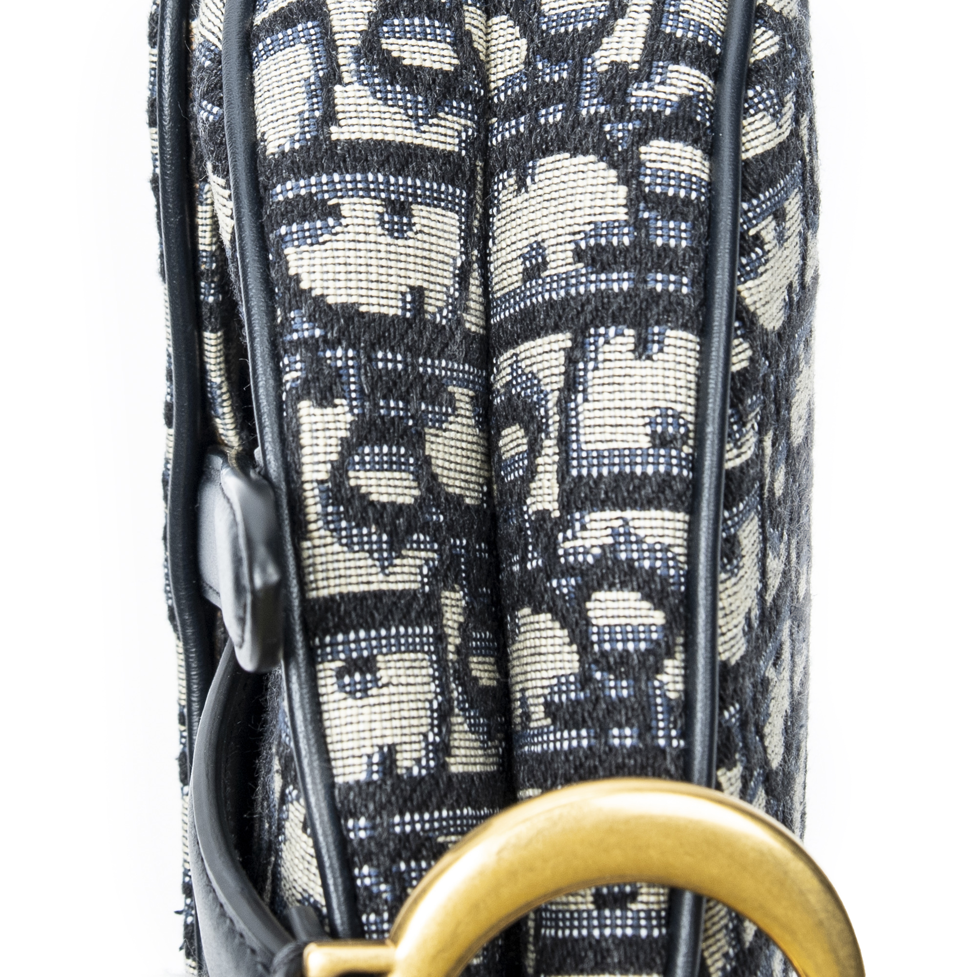 Dior Handbag Mini Saddle Bag in Navy/Beige Oblique Jacquard Canvas and Gold hardware. The product is in Perfect Condition (AA).