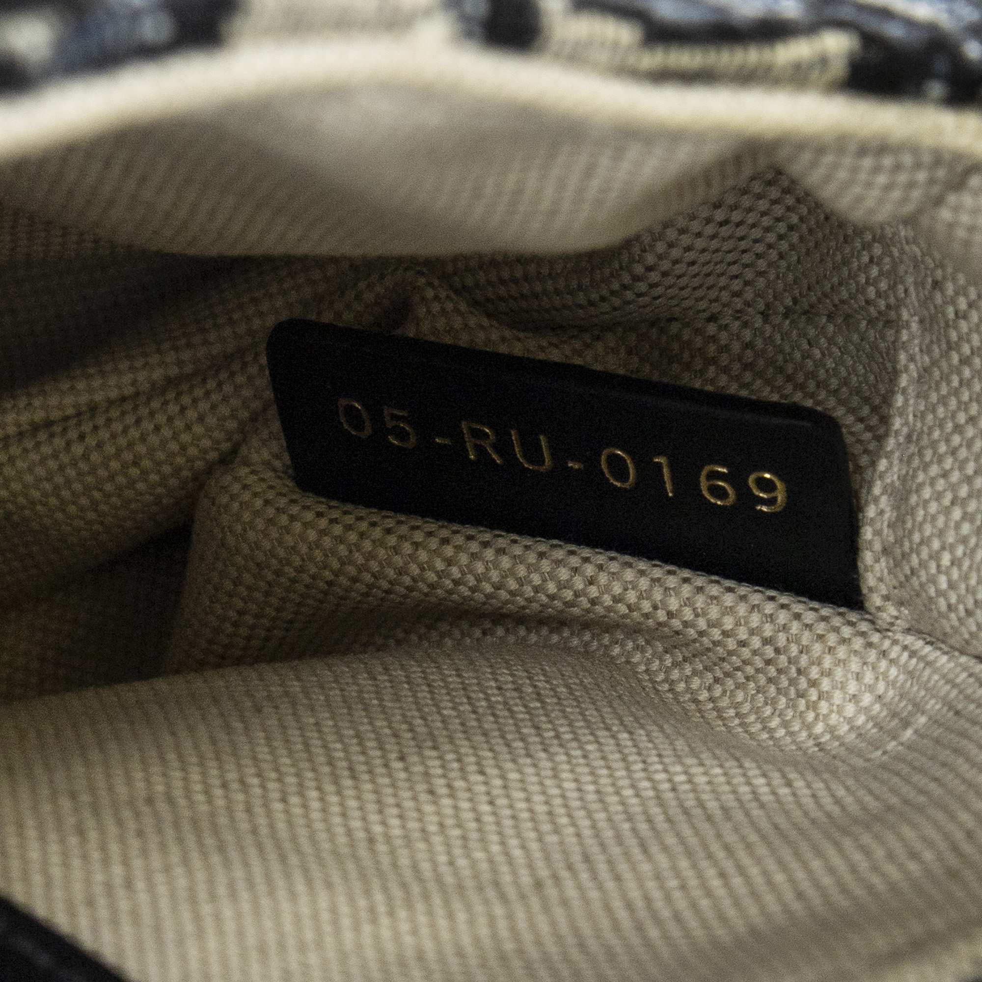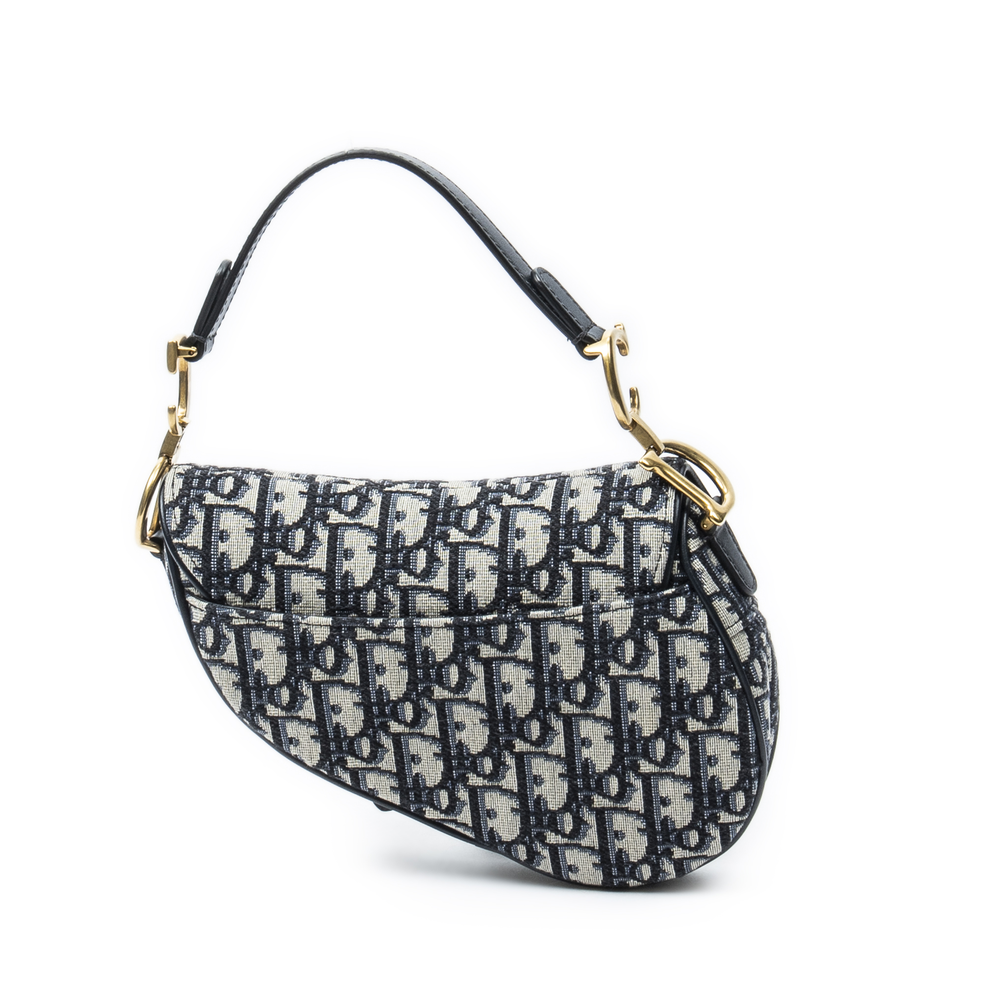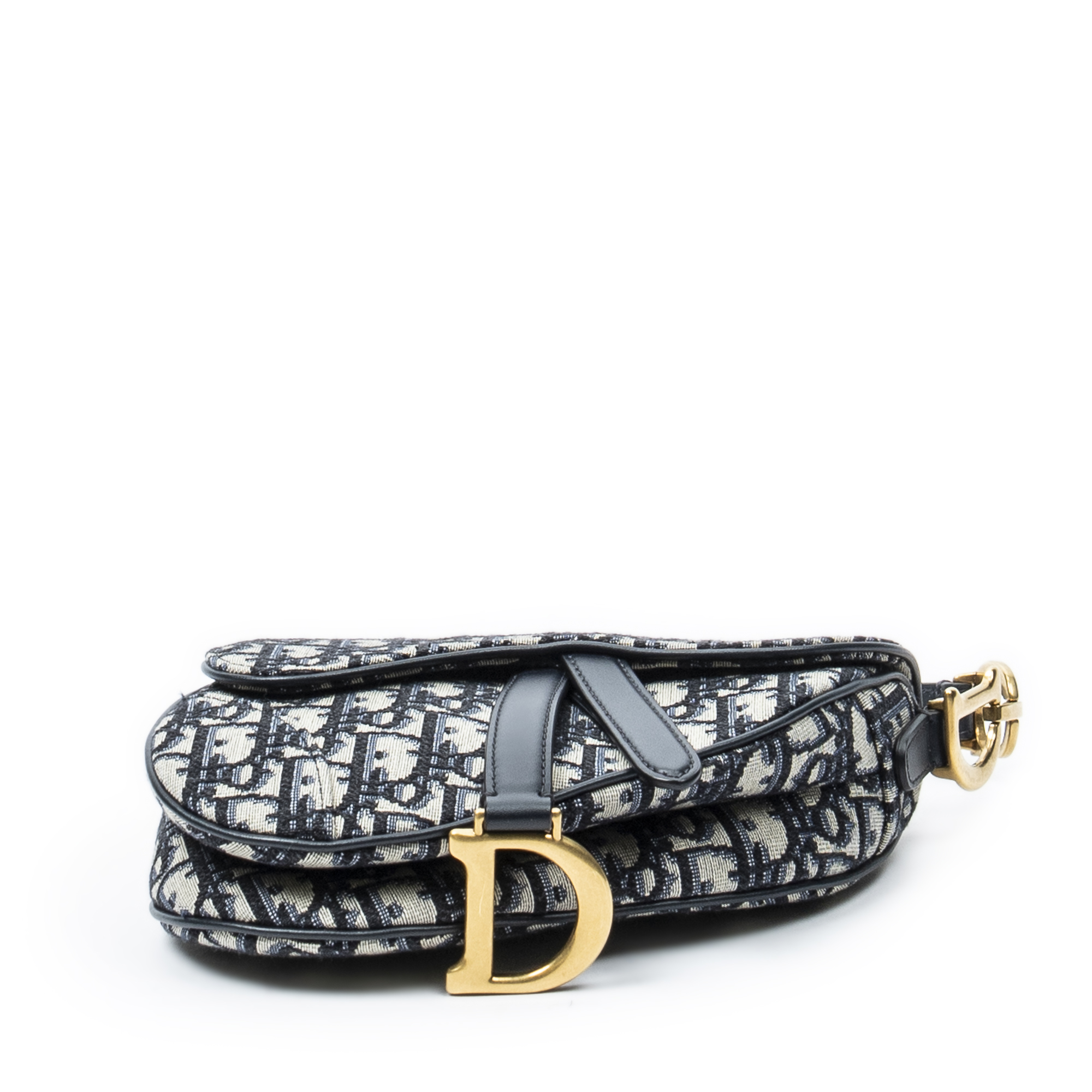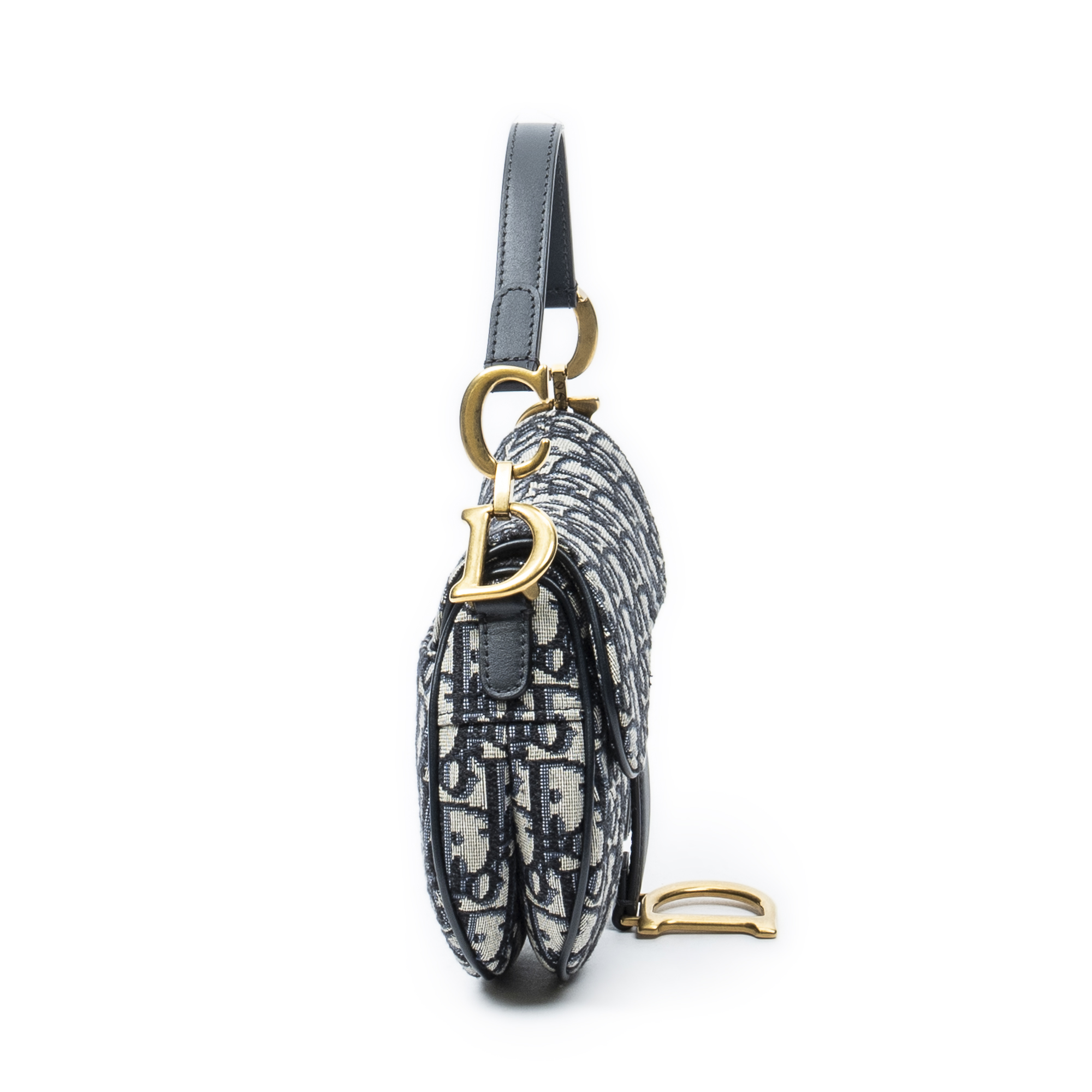 Dior Handbag Mini Saddle Bag in Navy/Beige Oblique Jacquard Canvas and Gold hardware. The product is in Perfect Condition (AA).