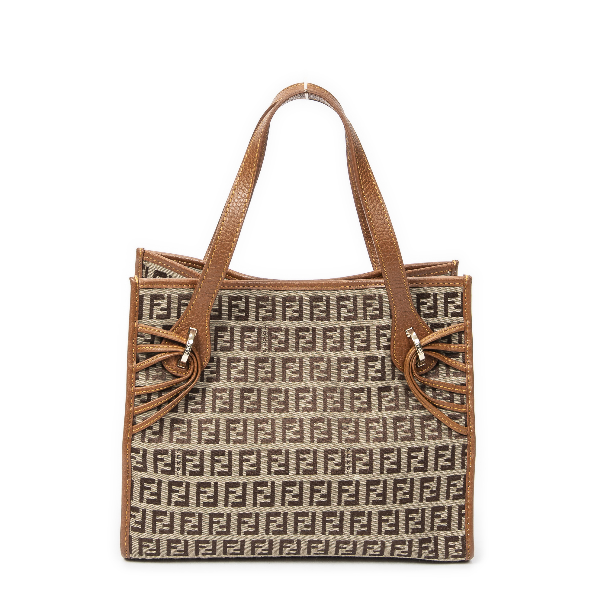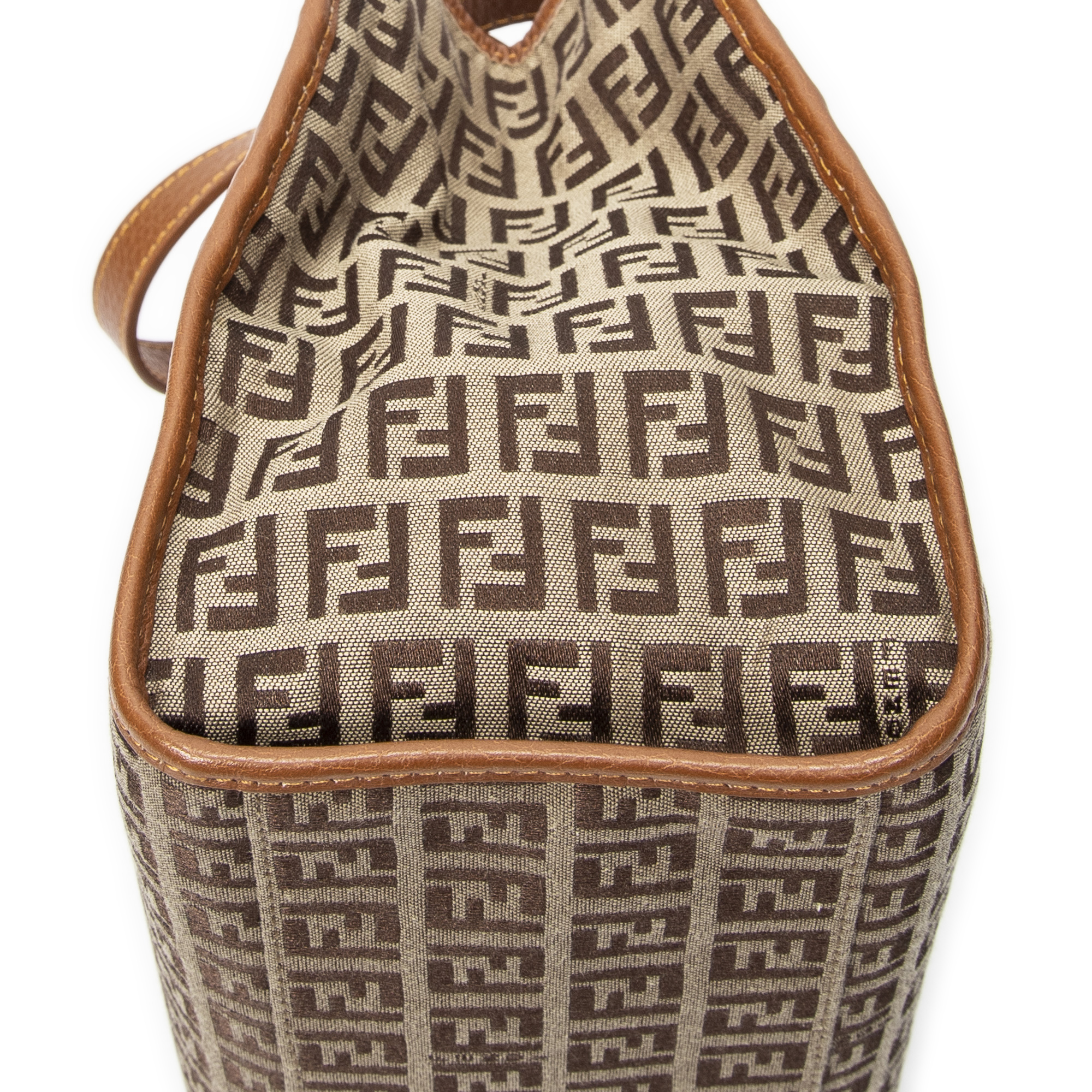 Fendi Handbag Mini Shopping Tote in Brown Zucchino Canvas and Gold hardware. The product is in Excellent Condition (A).