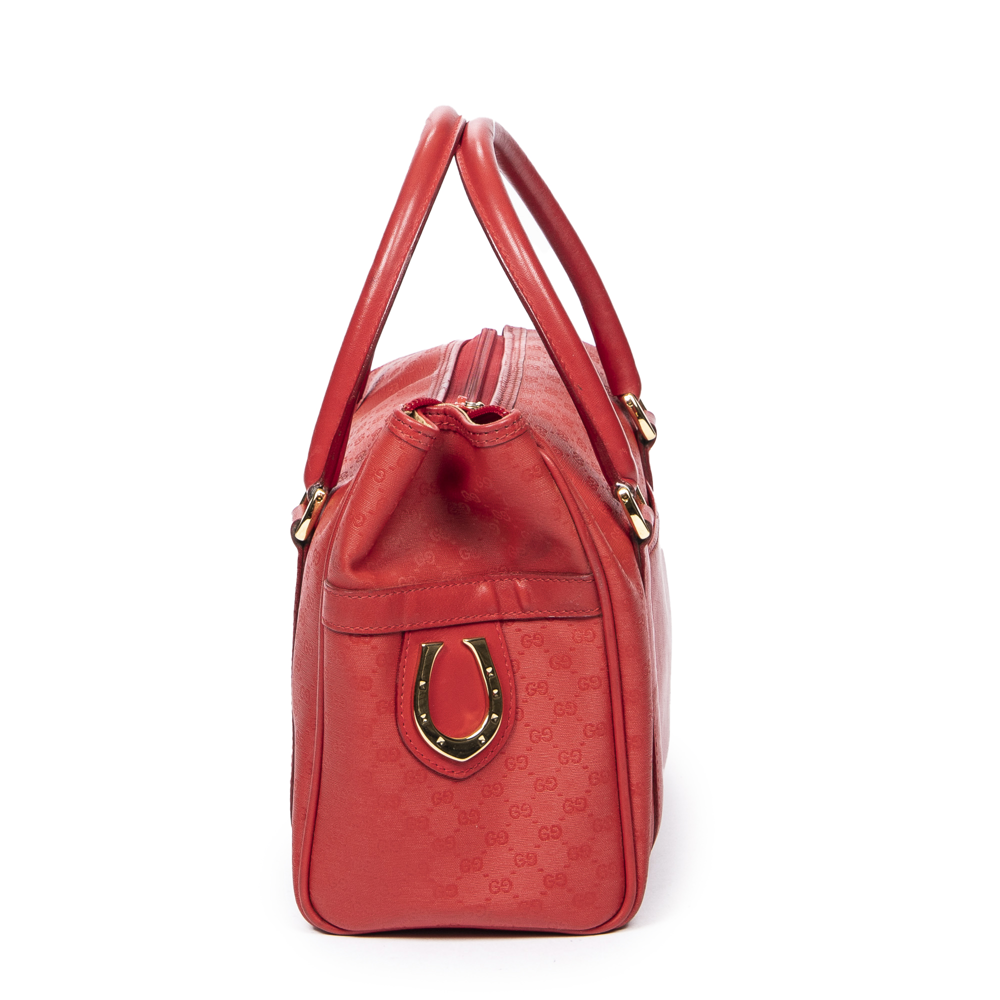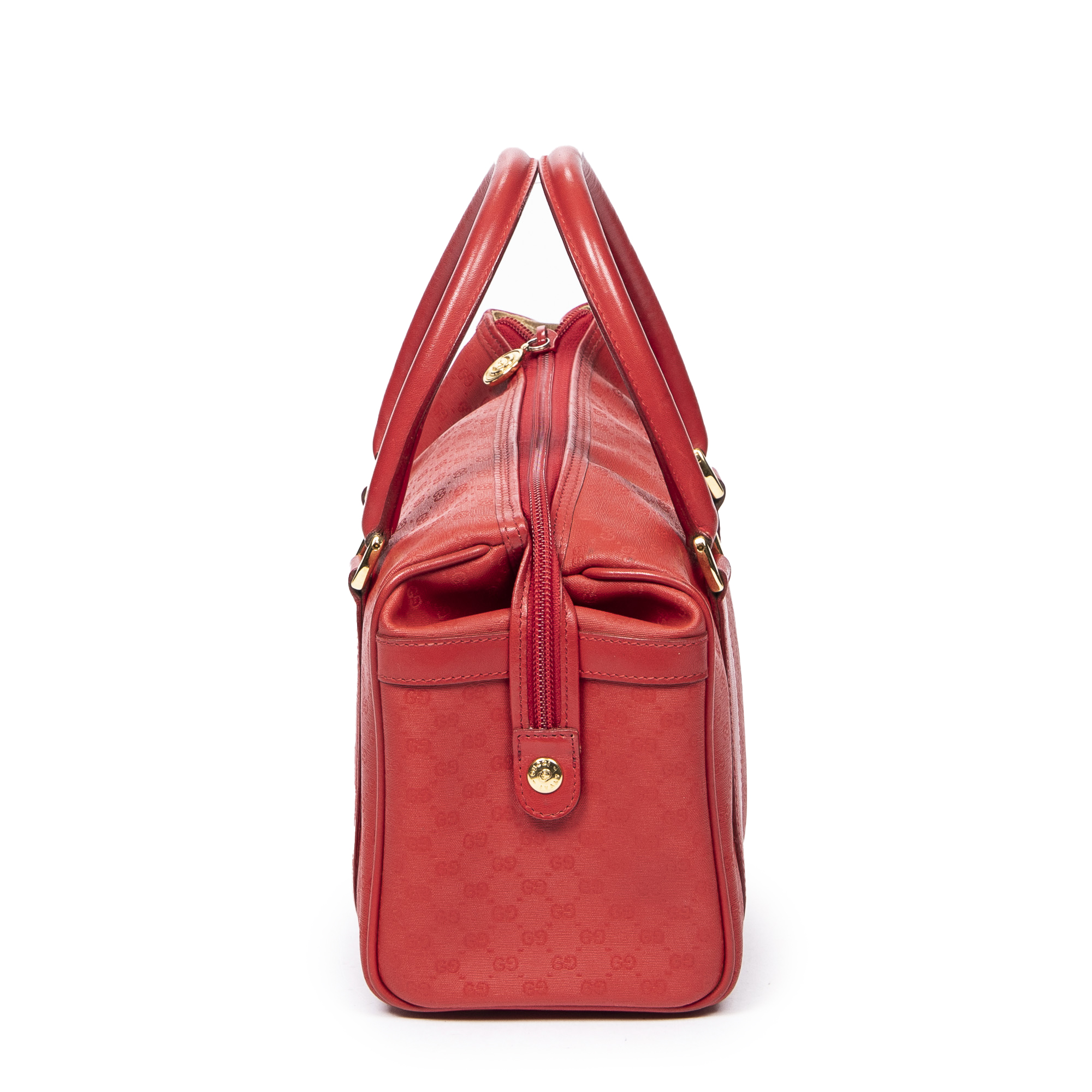 Gucci Handbag Mini Vintage Front Pocket Boston in Red Microguccissima Coated Canvas and Gold hardware. The product is in Excellent Condition (A).