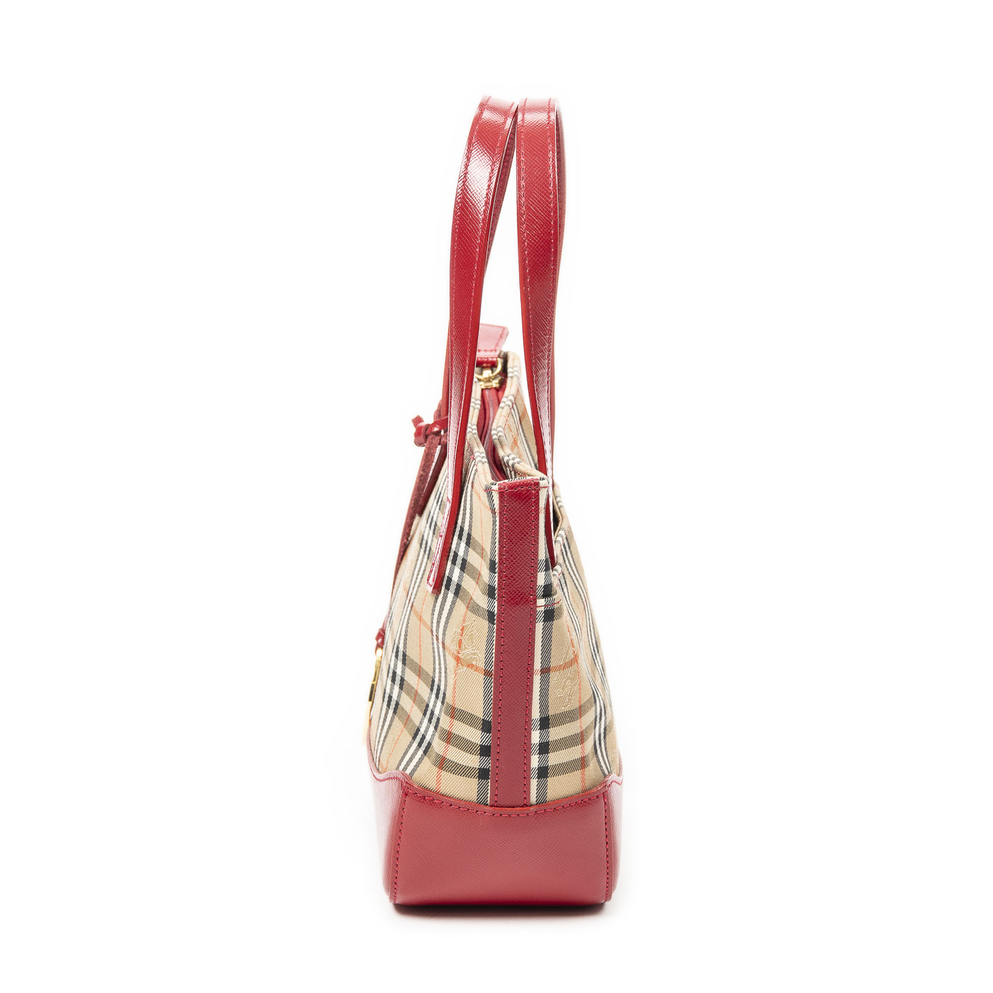 Burberry Handbag Mini Zip Shopping Tote in Beige/Red Haymarket Check Canvas and Gold hardware. The product is in Excellent Condition (A).