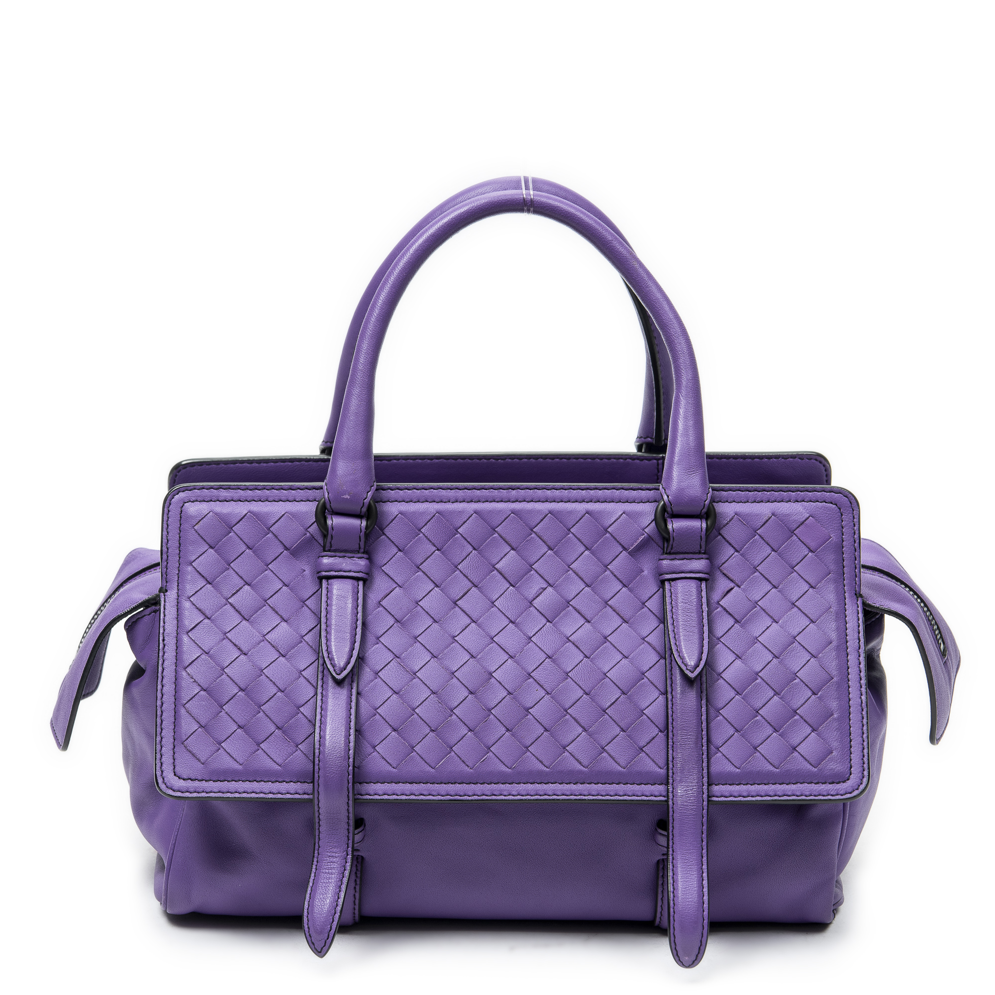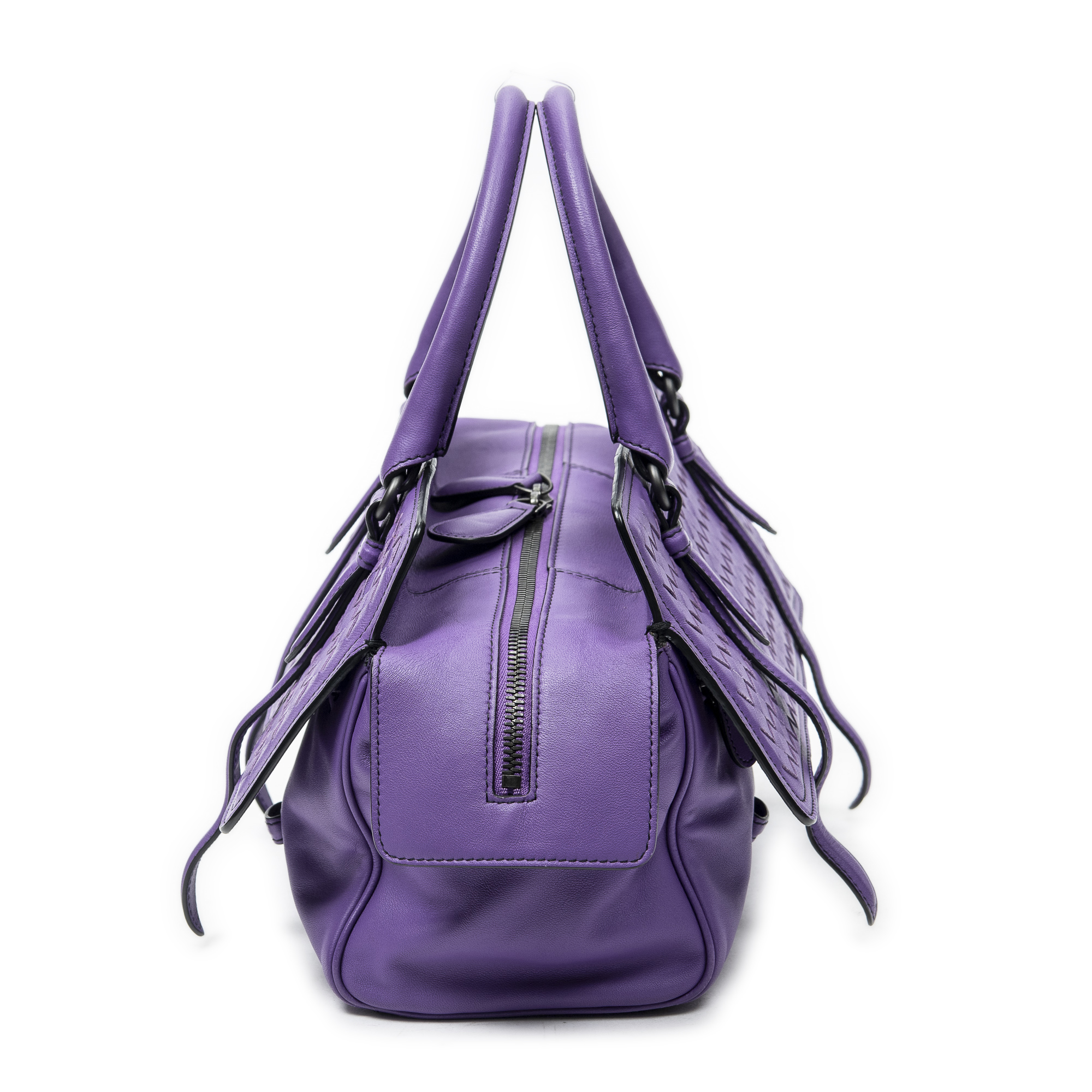 Bottega Veneta Handbag Monaco in Purple Trimmed Intrecciato Leather and Aged Brass hardware. The product is in Perfect Condition (AA).