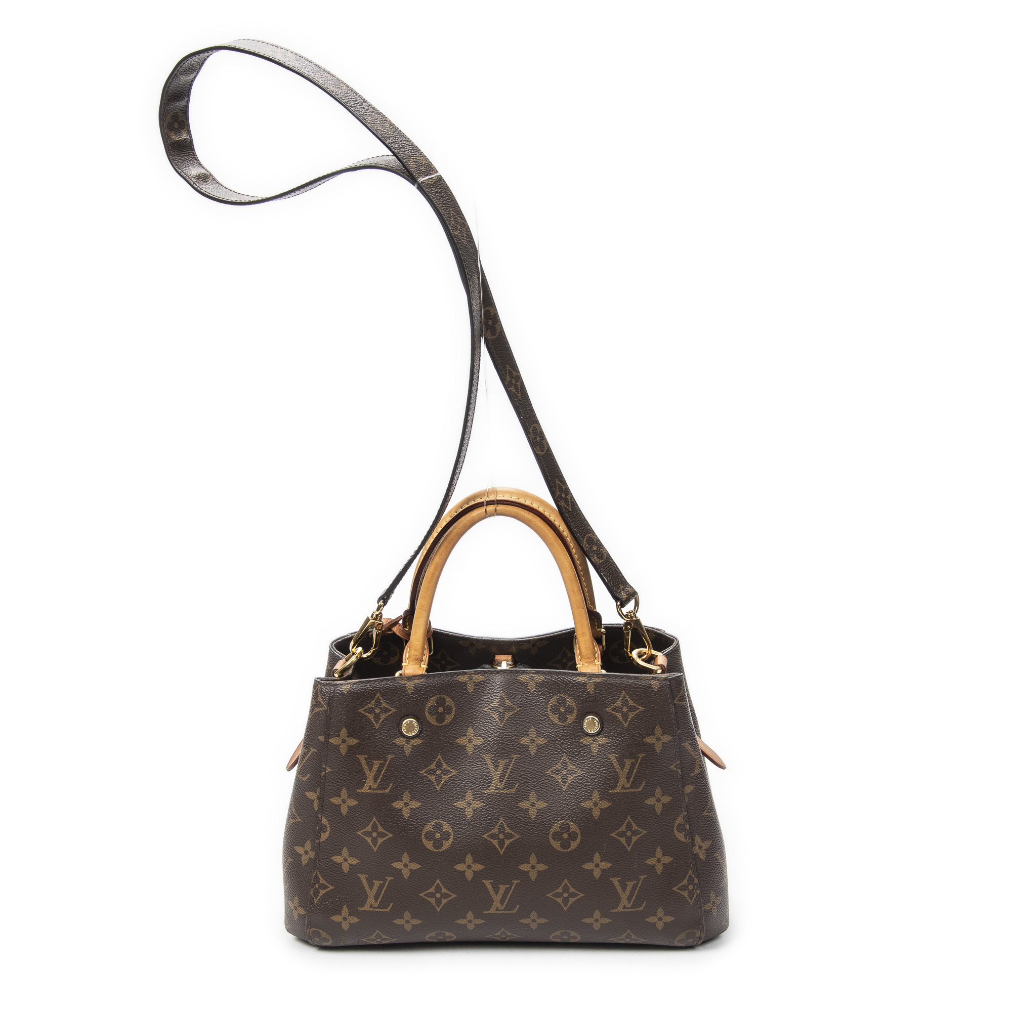Louis Vuitton Handbag Montaigne PM in Brown Monogram Canvas and Golden Brass hardware. The product is in Very Good Condition (AB).