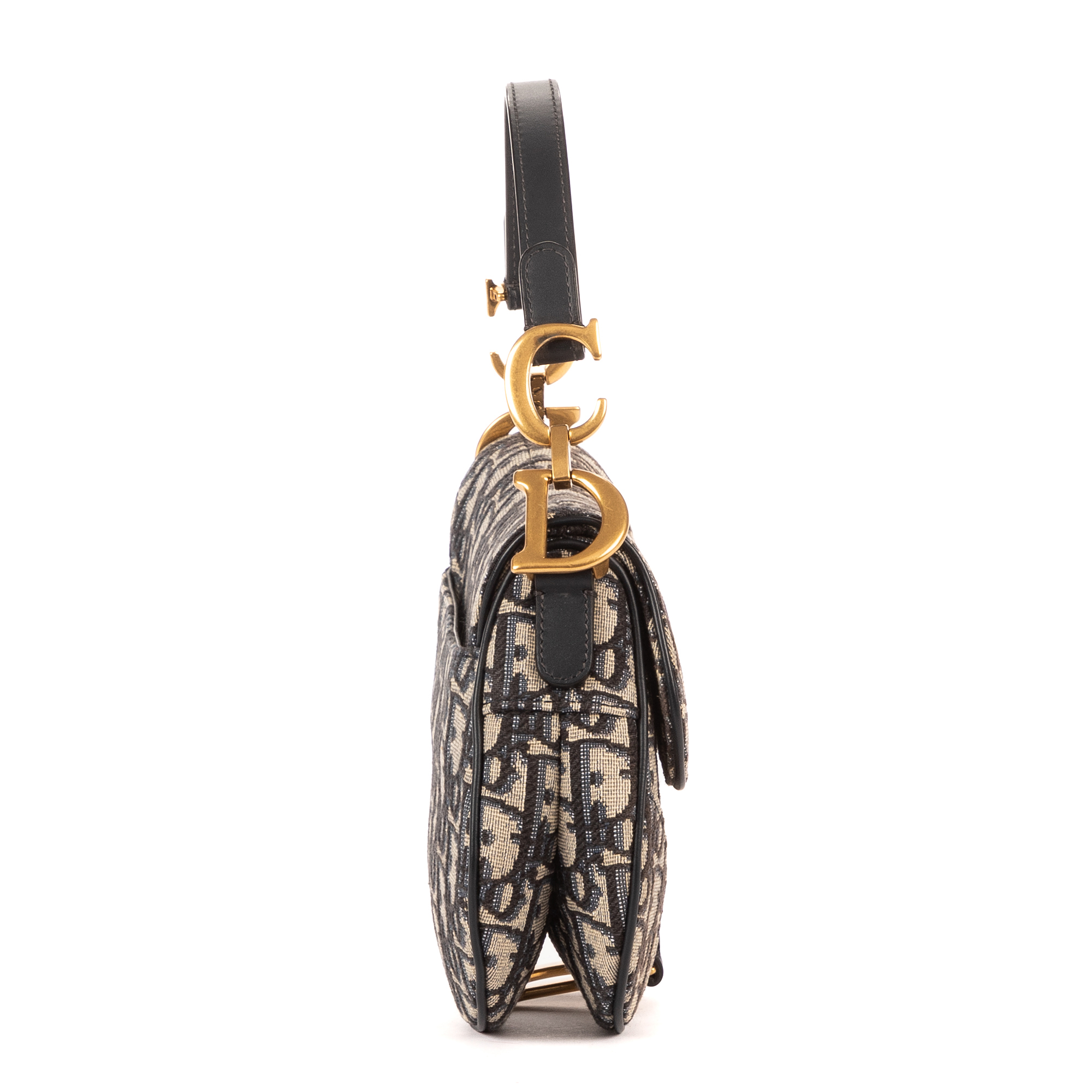 Christian Dior Handbag Oblique Saddle Mini in Navy Diorissimo Oblique Canvas and Gold hardware. The product is in Excellent Condition (A).
