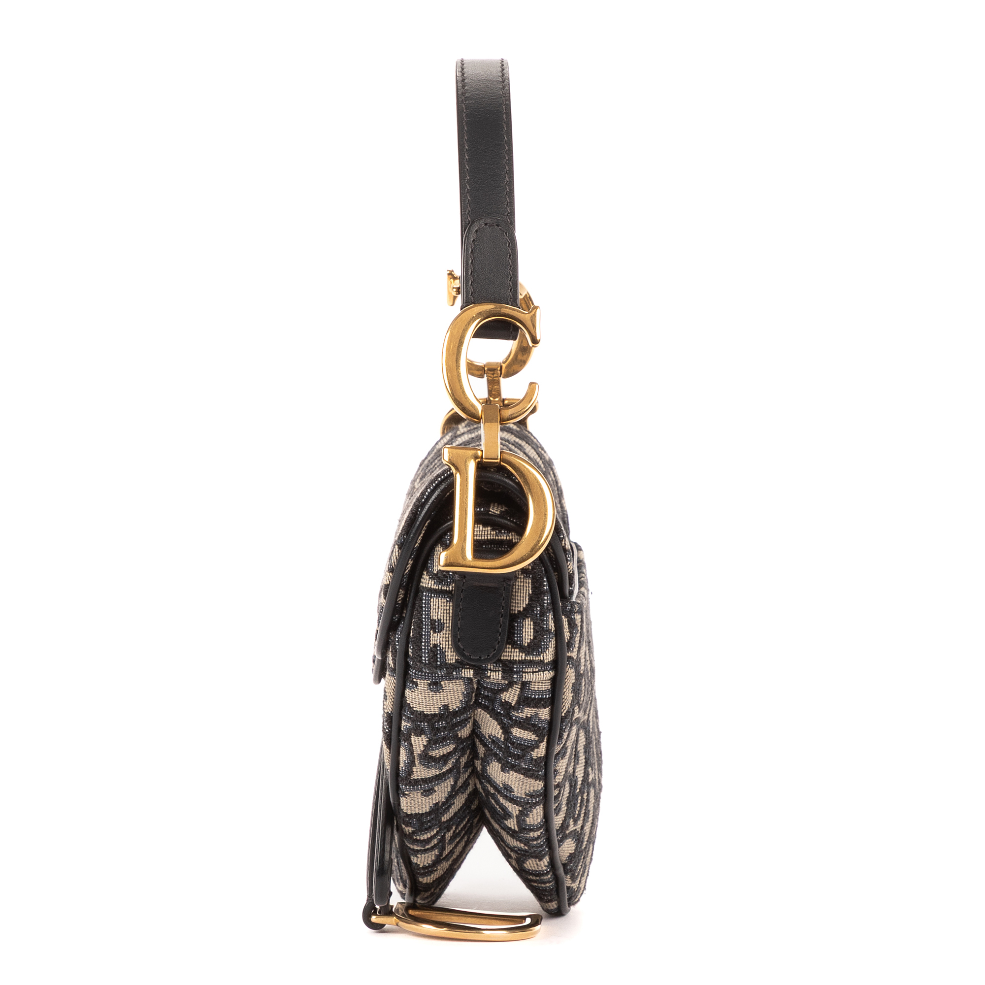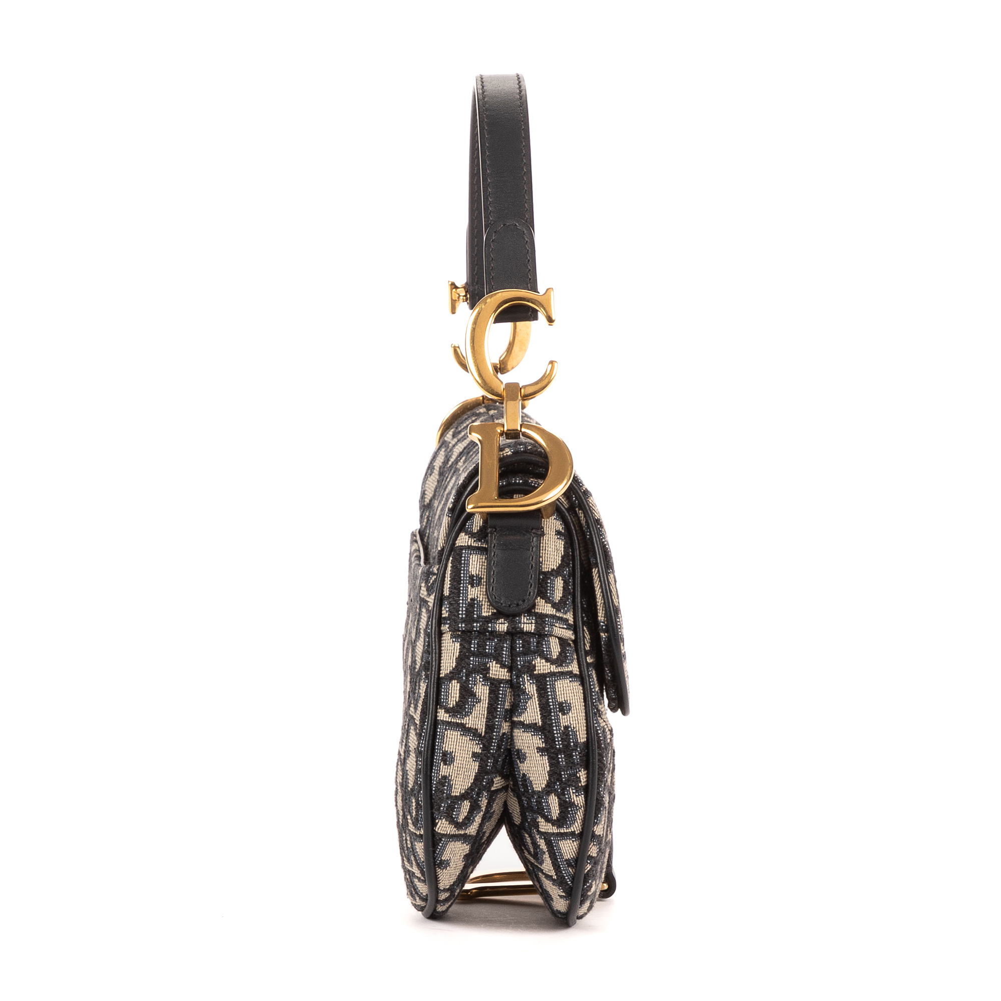 Christian Dior Handbag Oblique Saddle Mini in Navy Diorissimo Oblique Canvas and Gold hardware. The product is in Perfect Condition (AA).