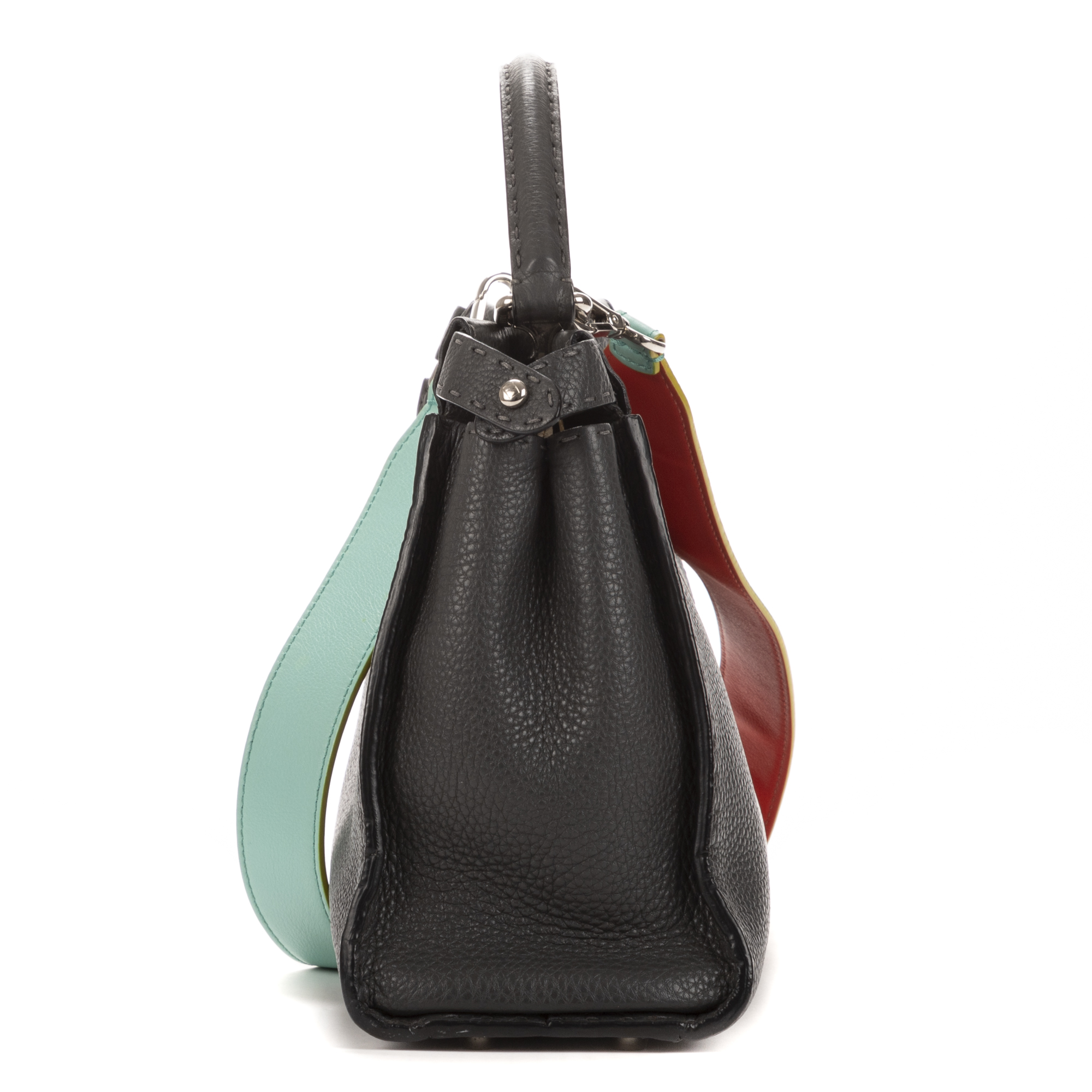 Fendi Shoulder Bag Peekaboo Briefcase in Light Blue Calfskin Leather and Silver hardware. The product is in Excellent Condition (A).