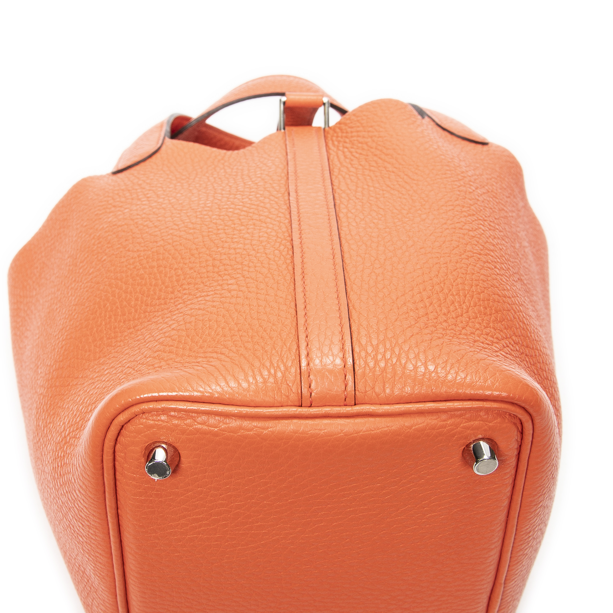 Hermès Handbag Picotin 18 in Orange Clemence Leather and Palladium hardware. The product is in Perfect Condition (AA).
