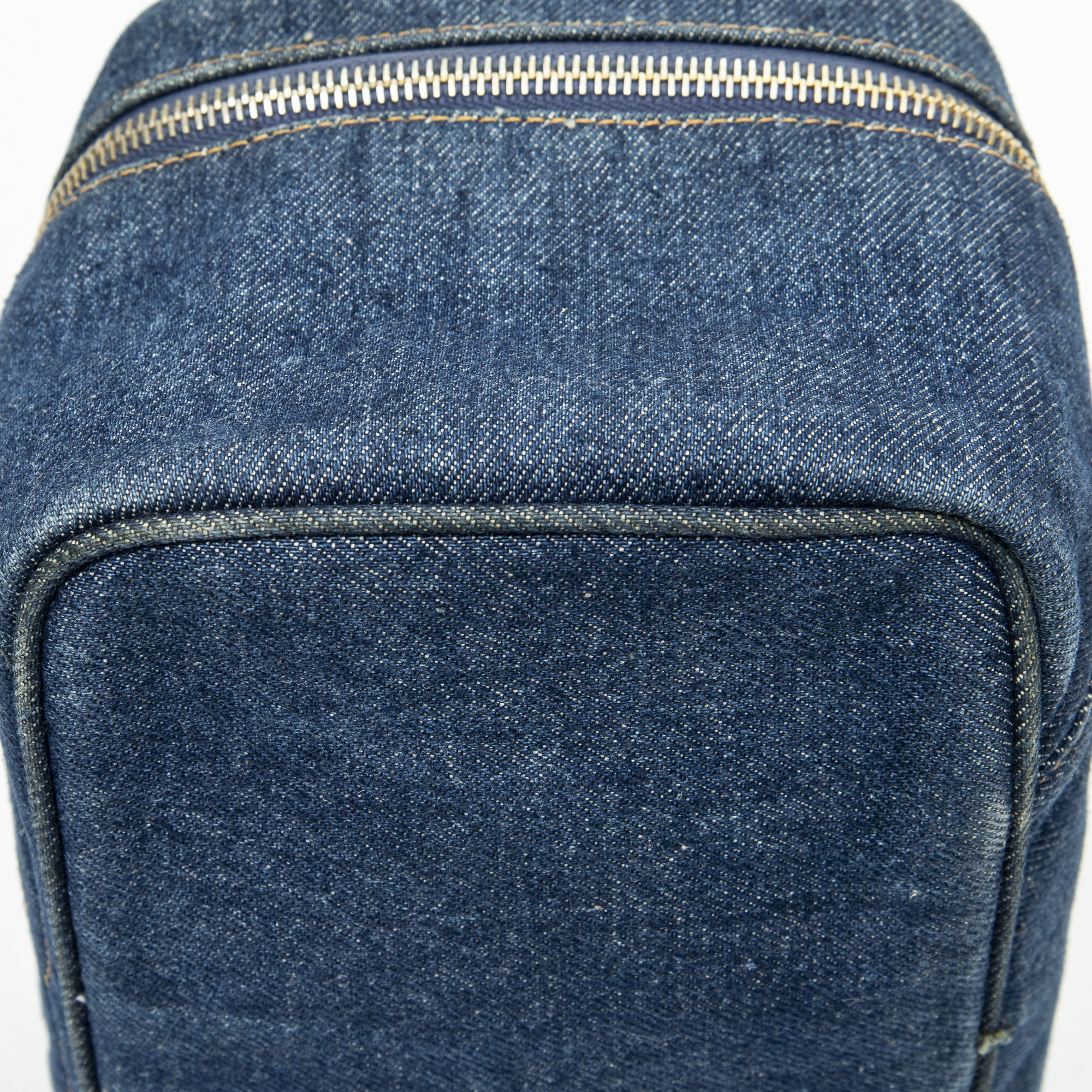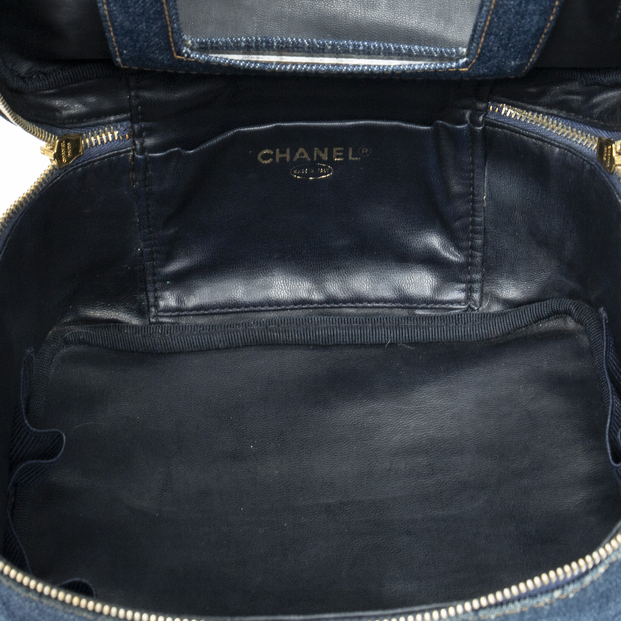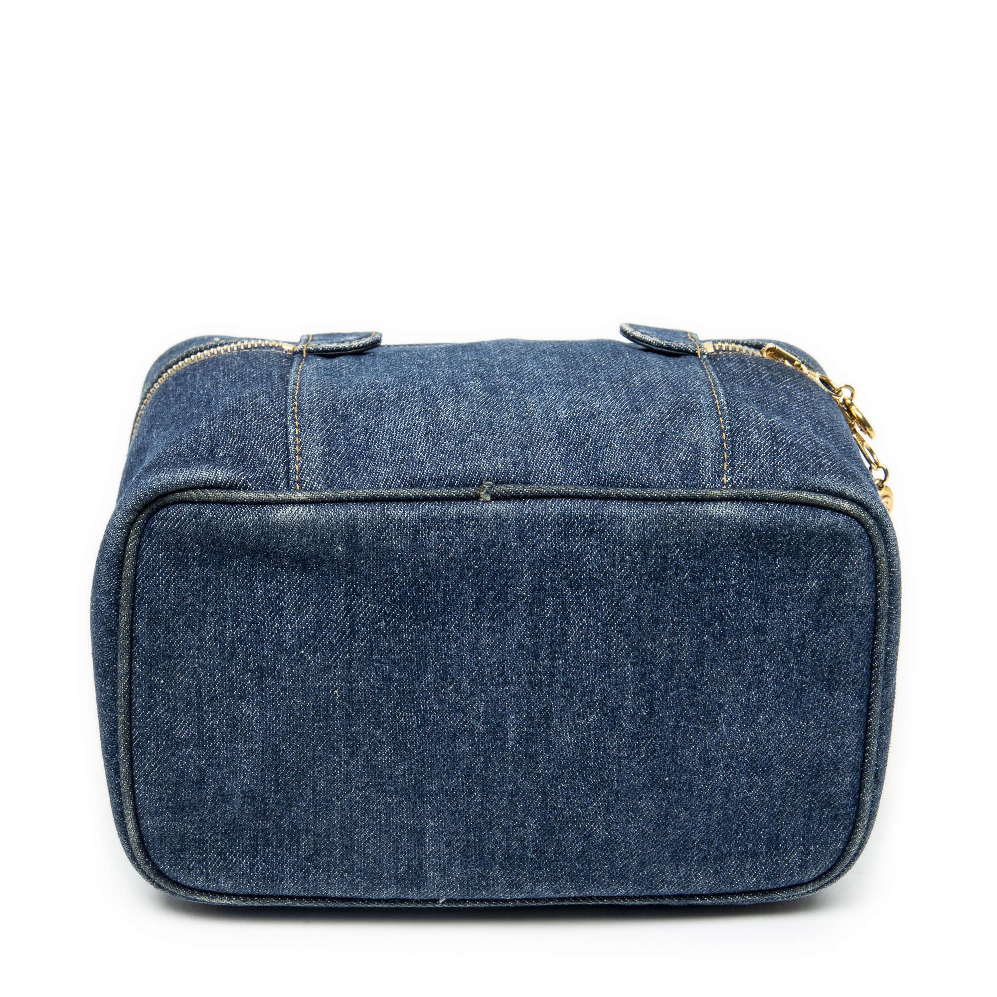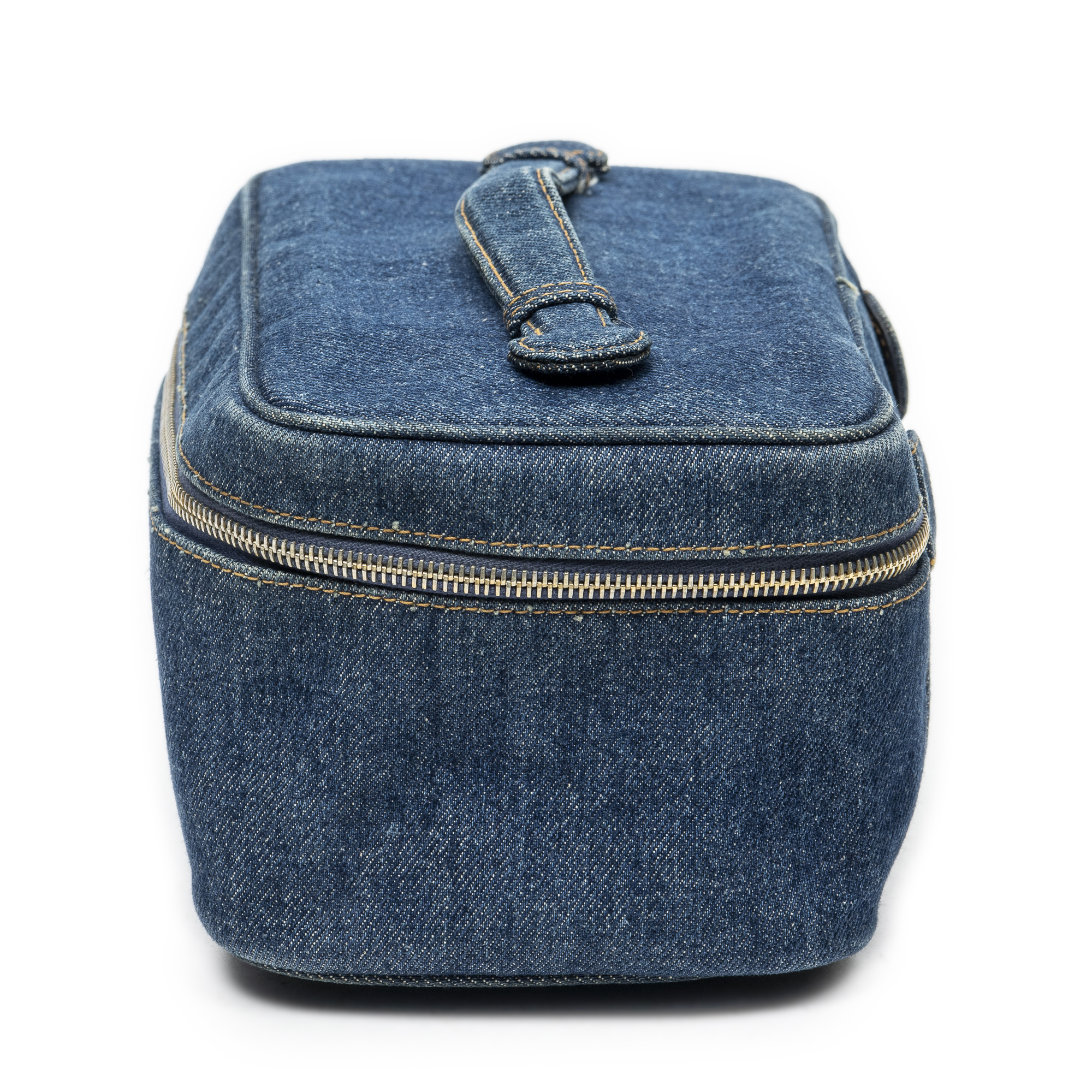 Chanel Handbag Rare CC Denim Vanity Case in Blue Denim Denim Canvas and Gold hardware. The product is in Excellent Condition (A).