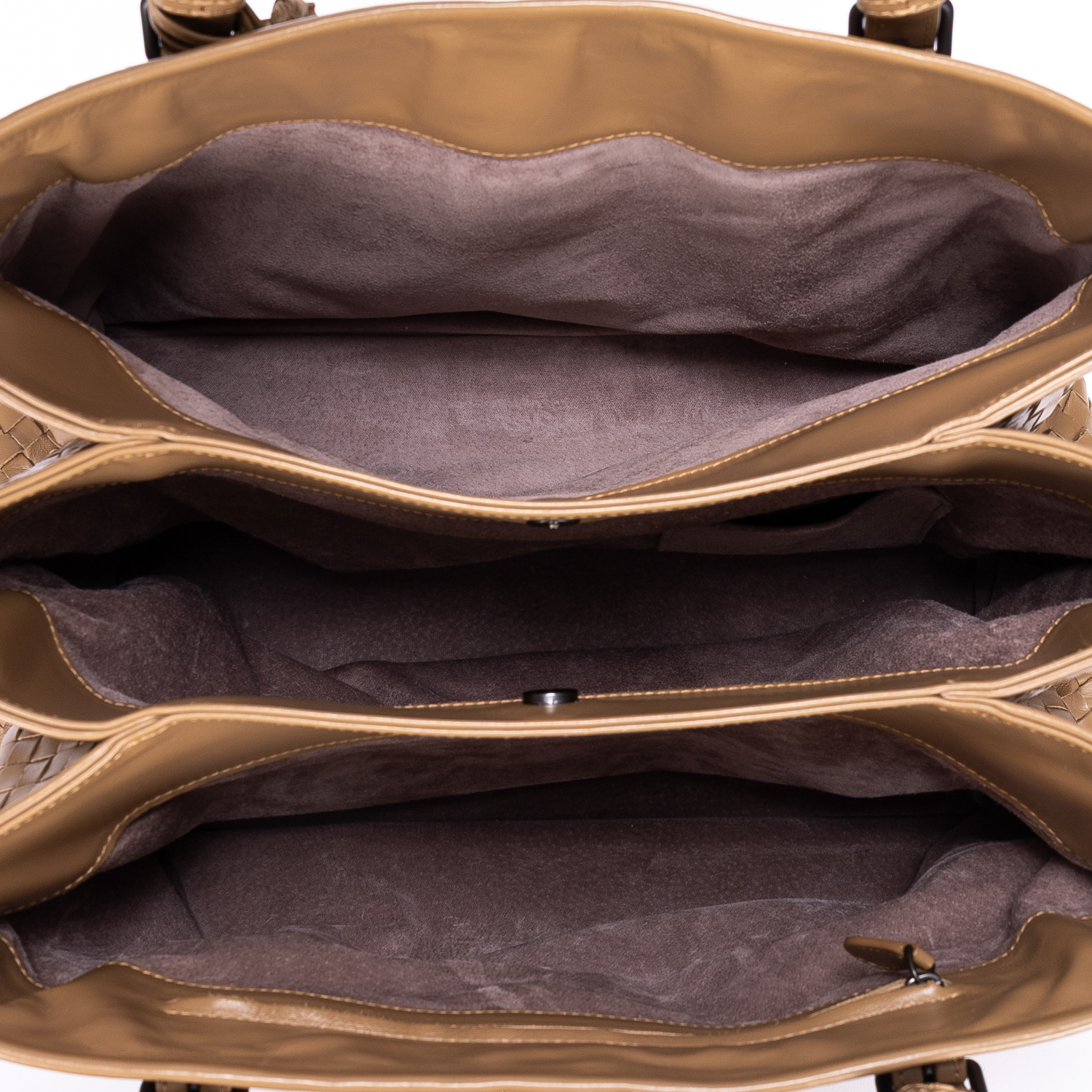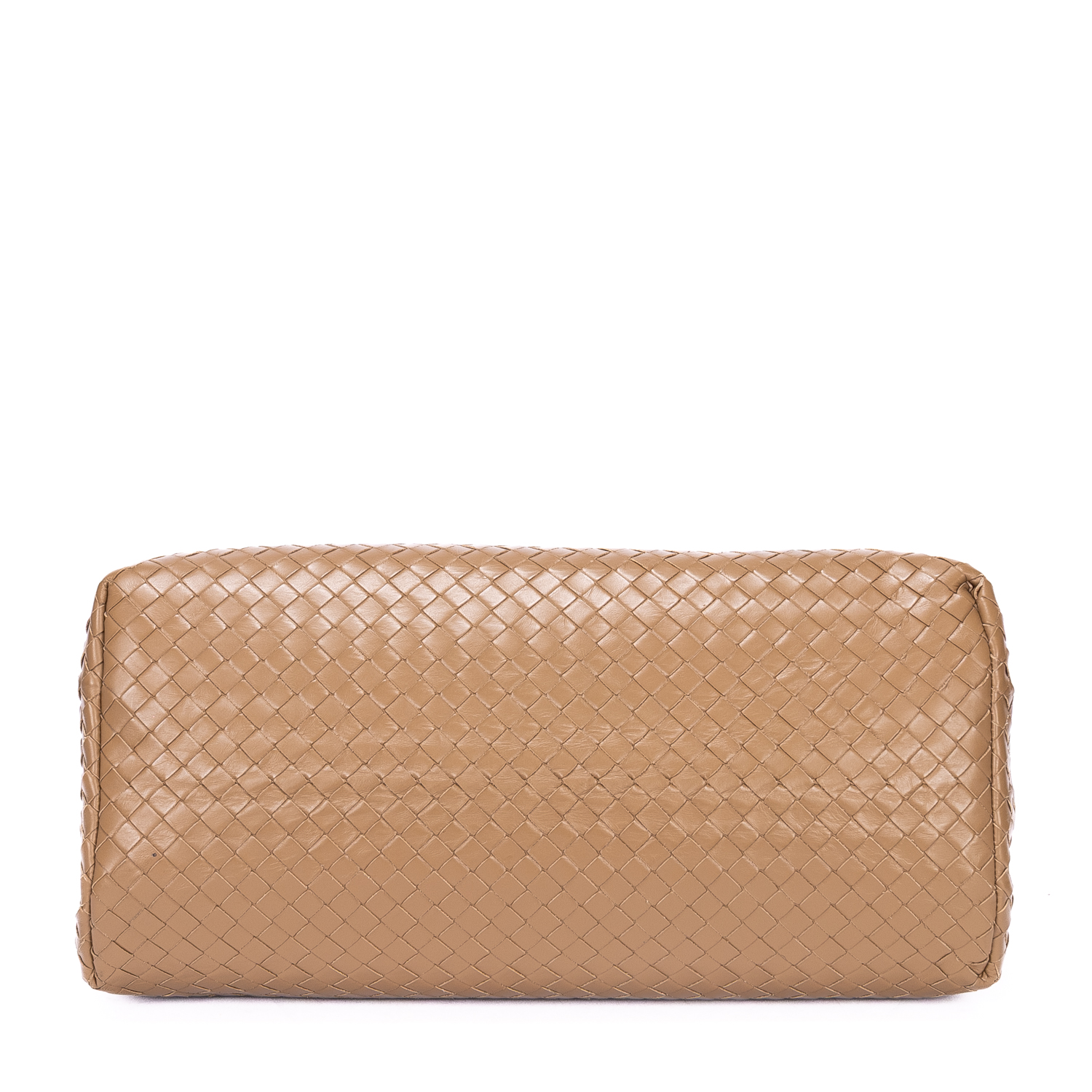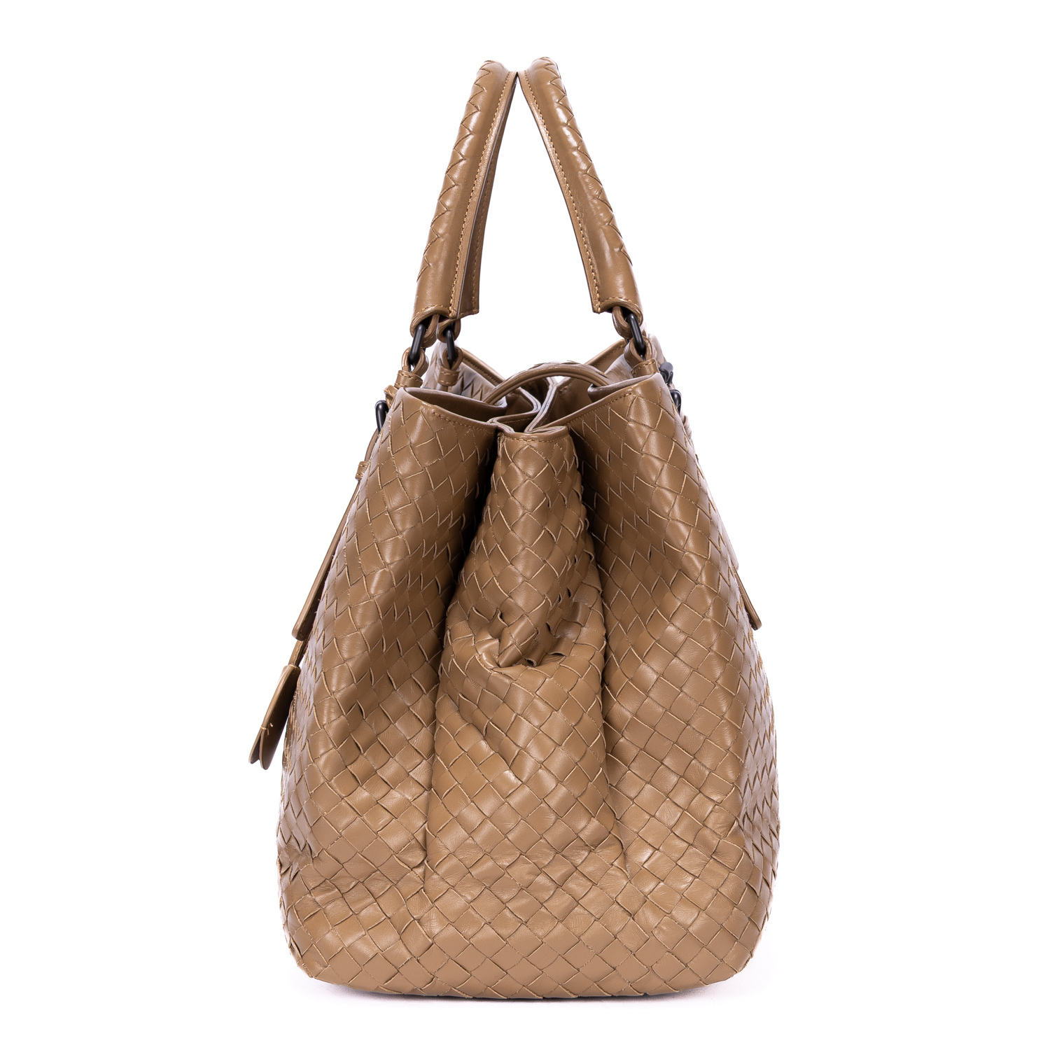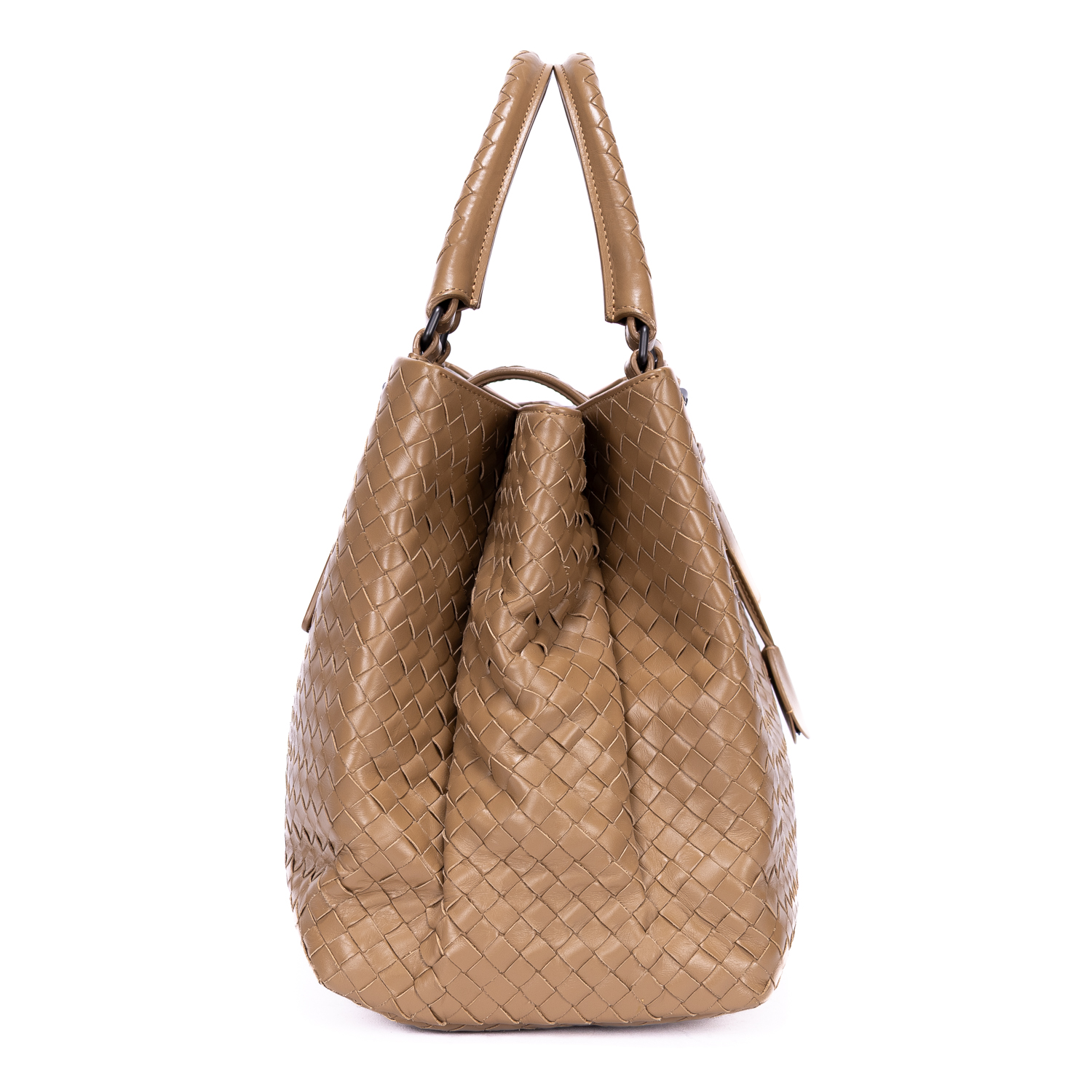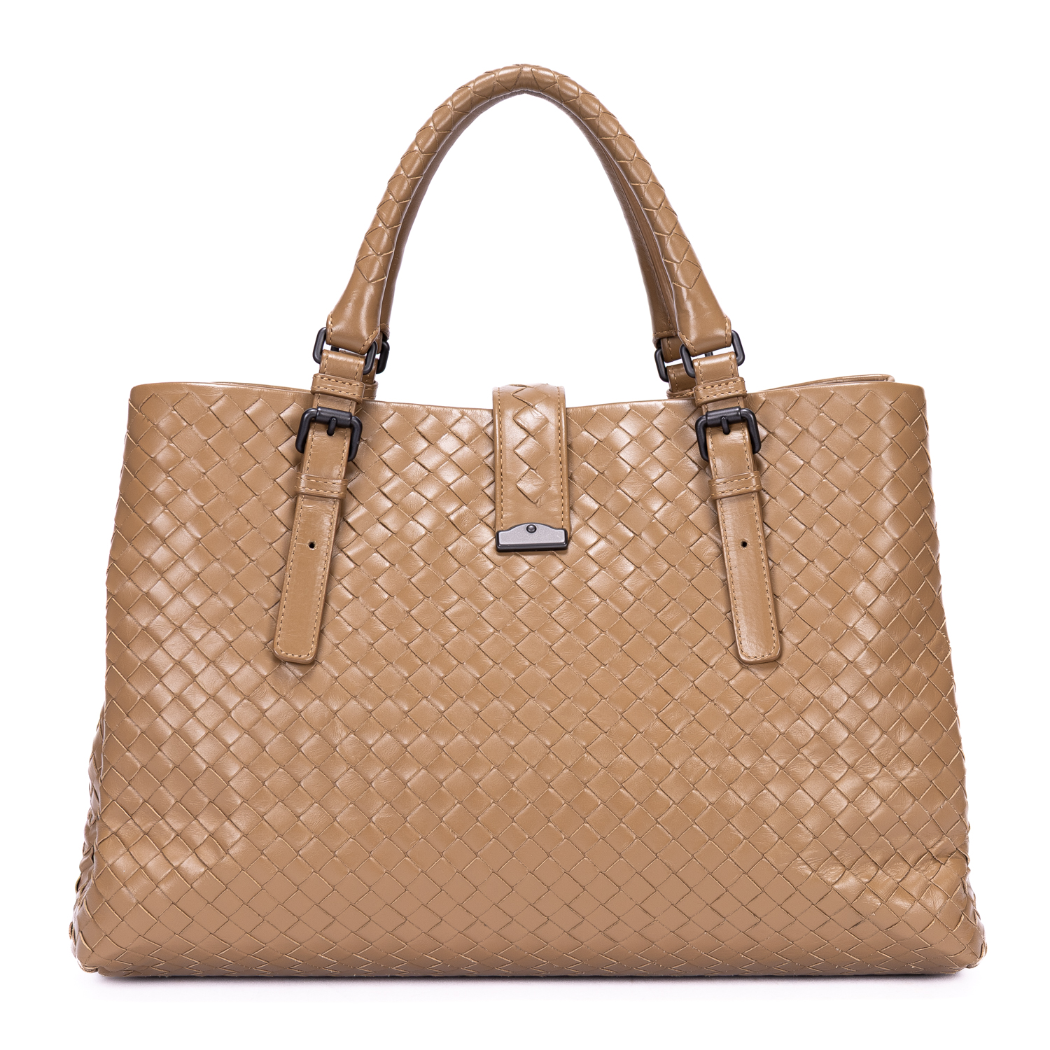 Bottega Veneta Handbag Roma Tote Large in Caramel Brown Intrecciato Leather and Black Metal hardware. The product is in Perfect Condition (AA).
