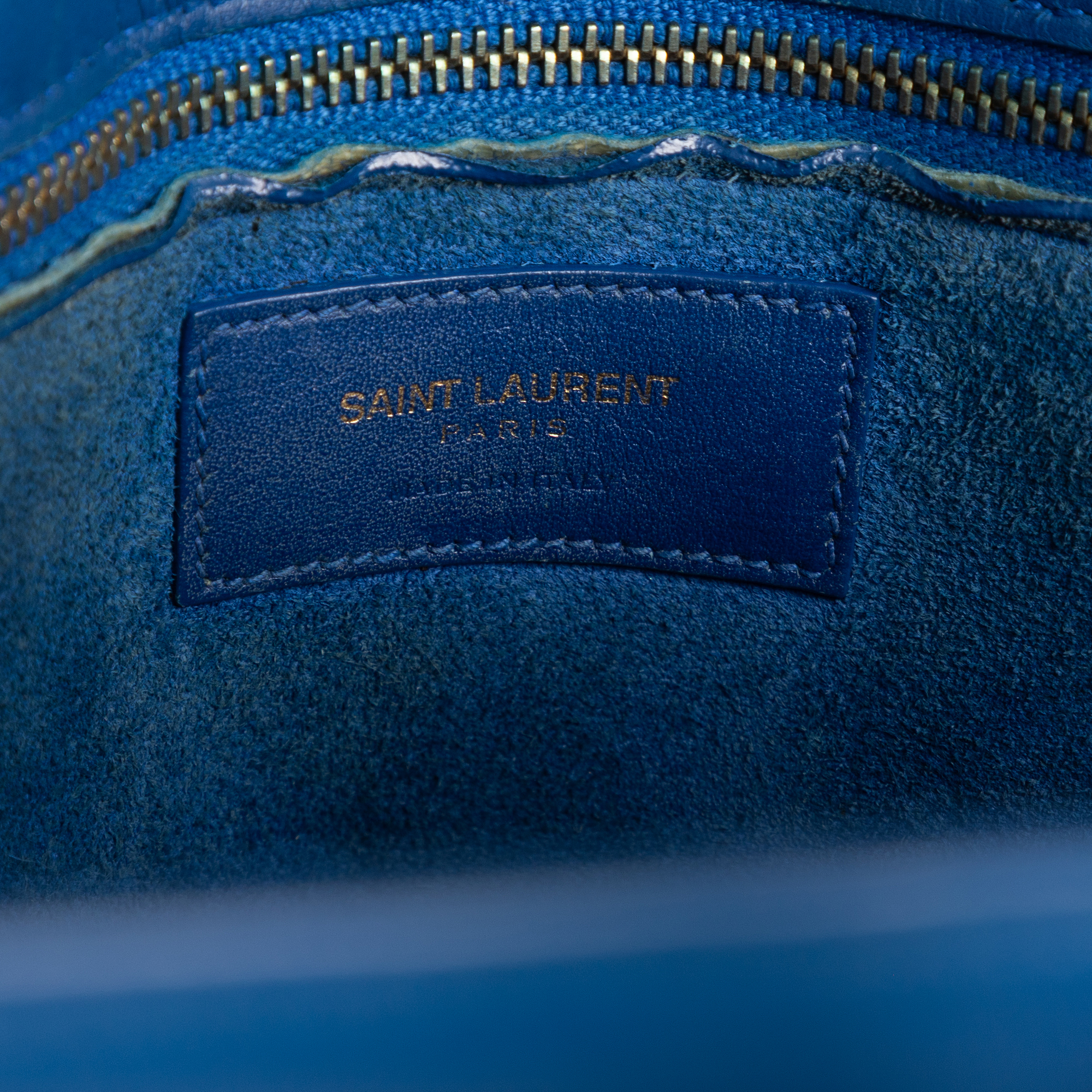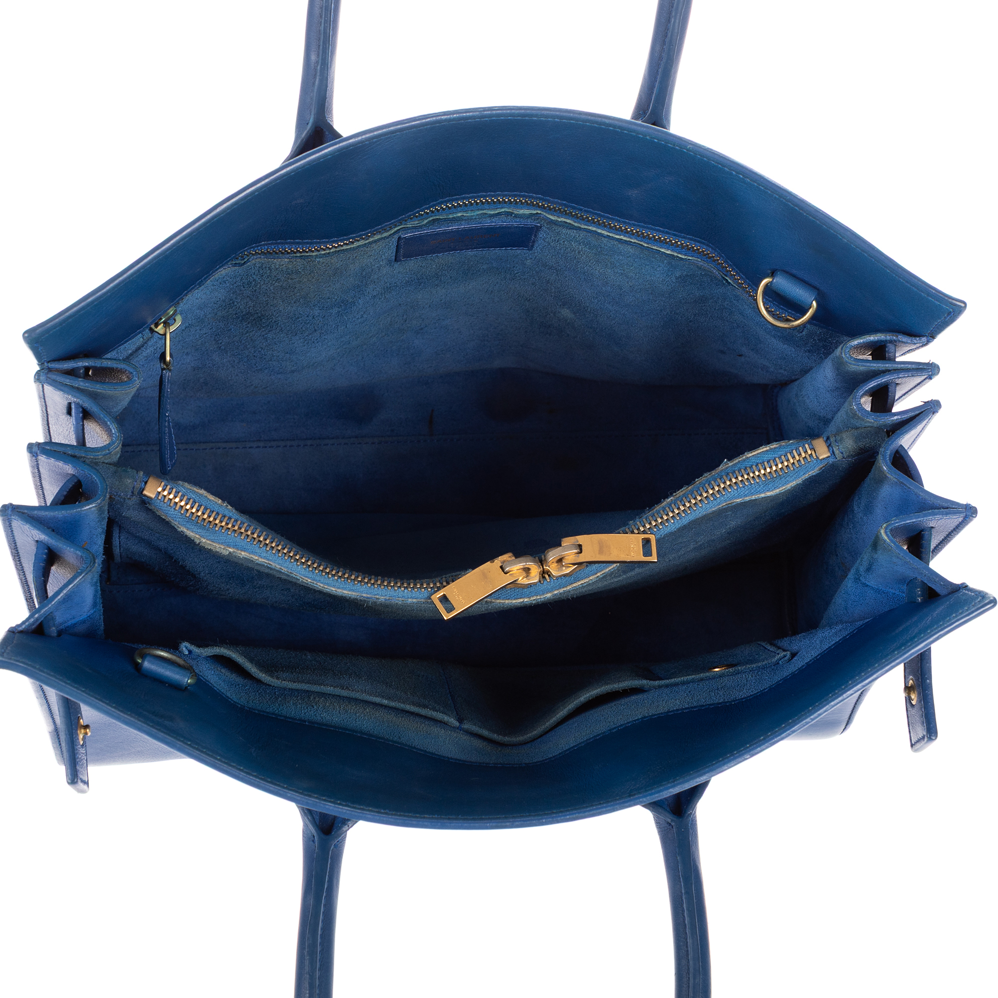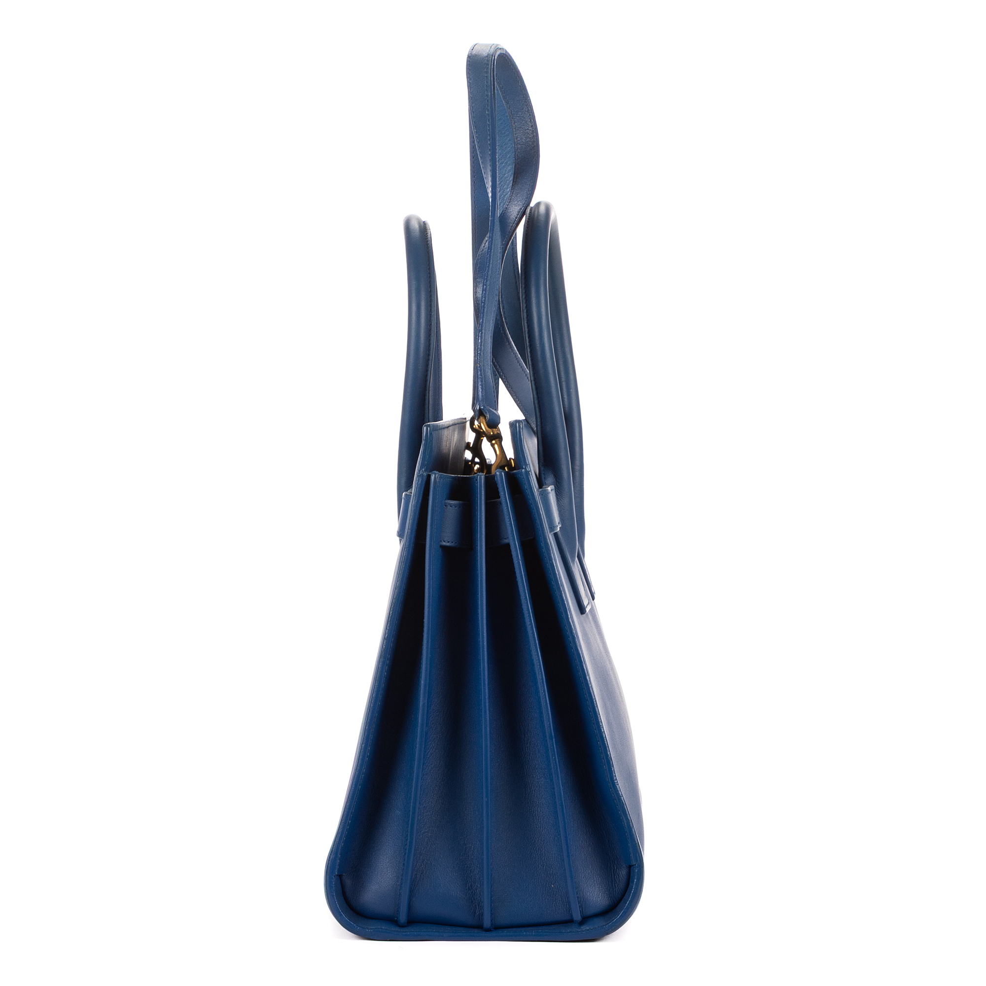 Yves Saint Laurent Handbag Sac De Jour Nano in Blue Smooth Leather and Gold hardware. The product is in Excellent Condition (A).