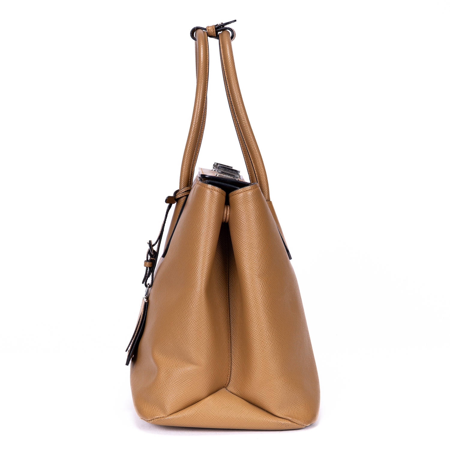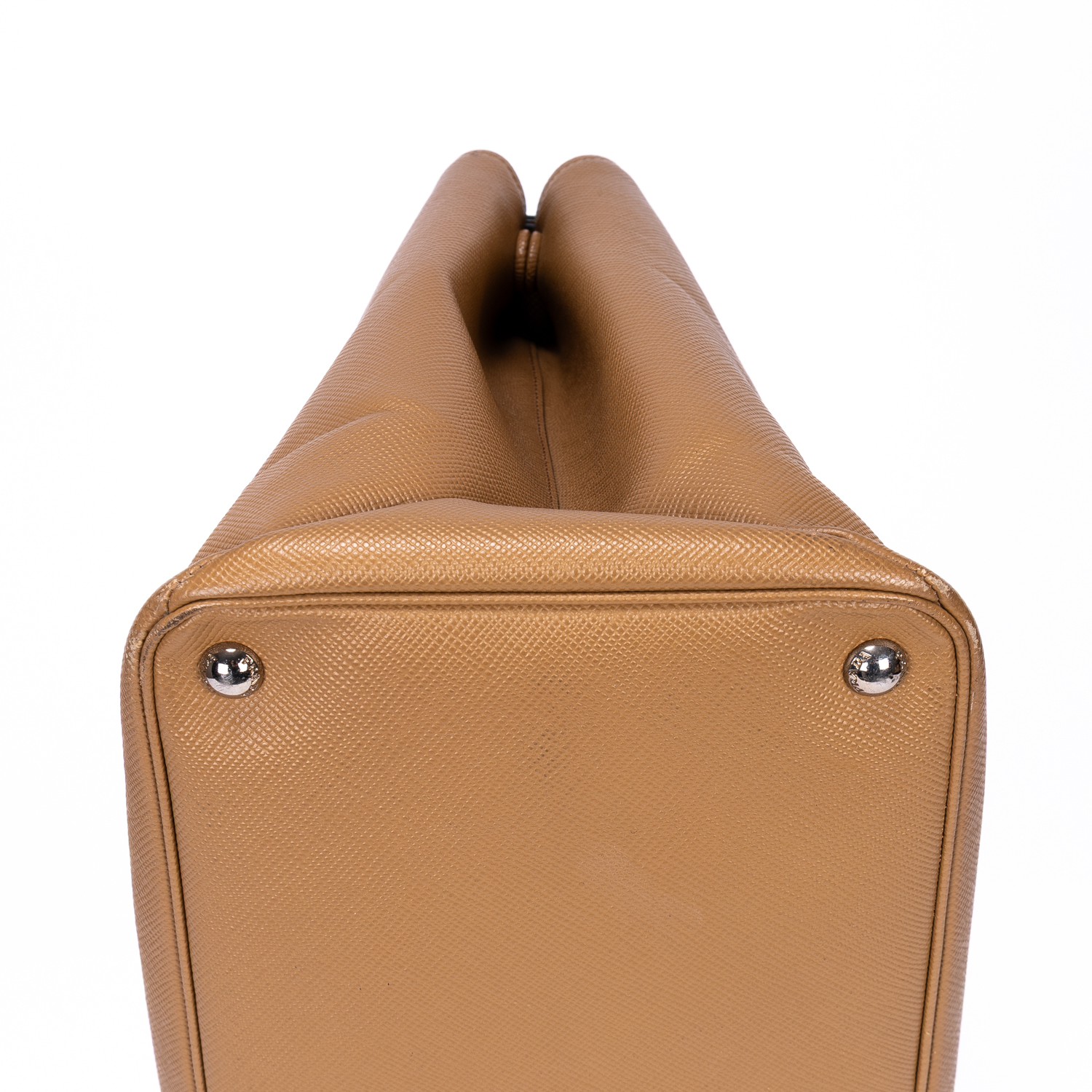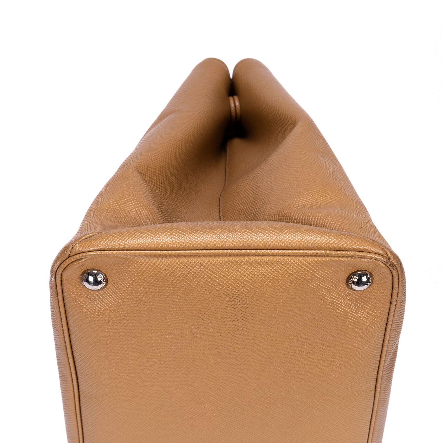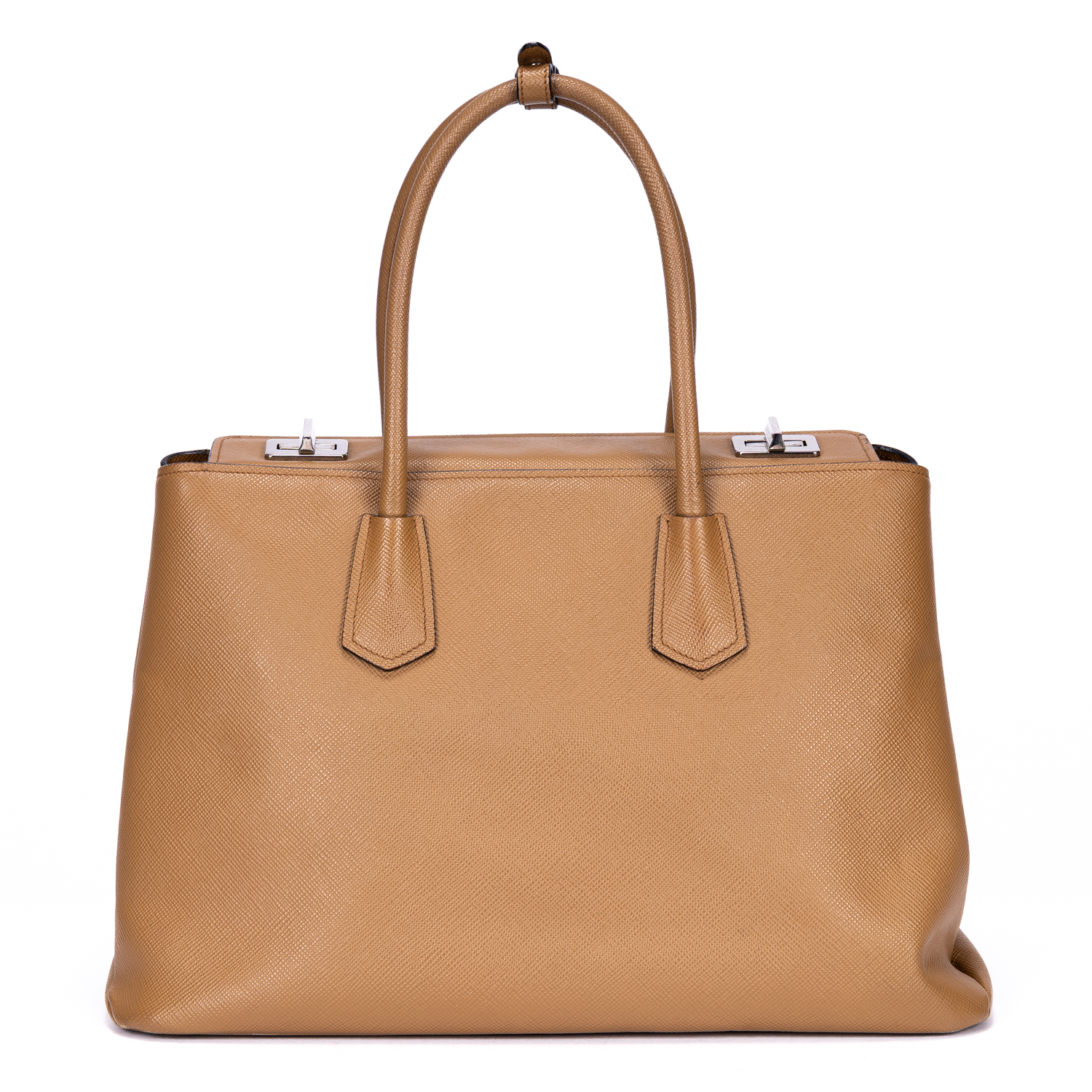 Prada Handbag Saffiano Lux Tote in Caramel Brown Saffiano Leather and Silver hardware. The product is in Excellent Condition (A).