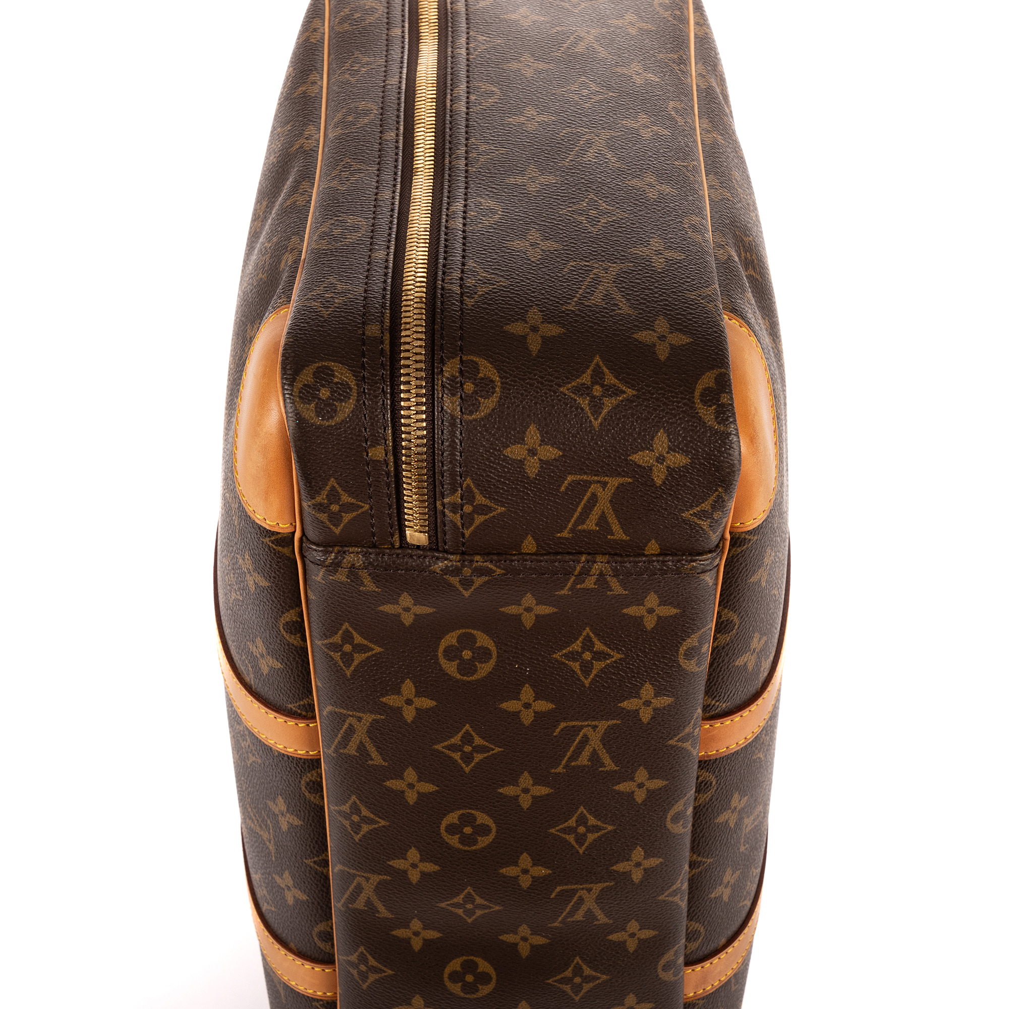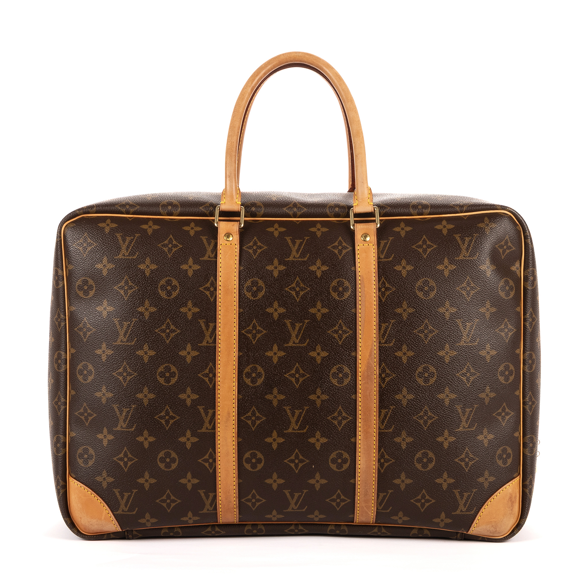 Louis Vuitton Handbag Sirius 45 in Brown Monogram Canvas and Golden Brass hardware. The product is in Very Good Condition (AB).