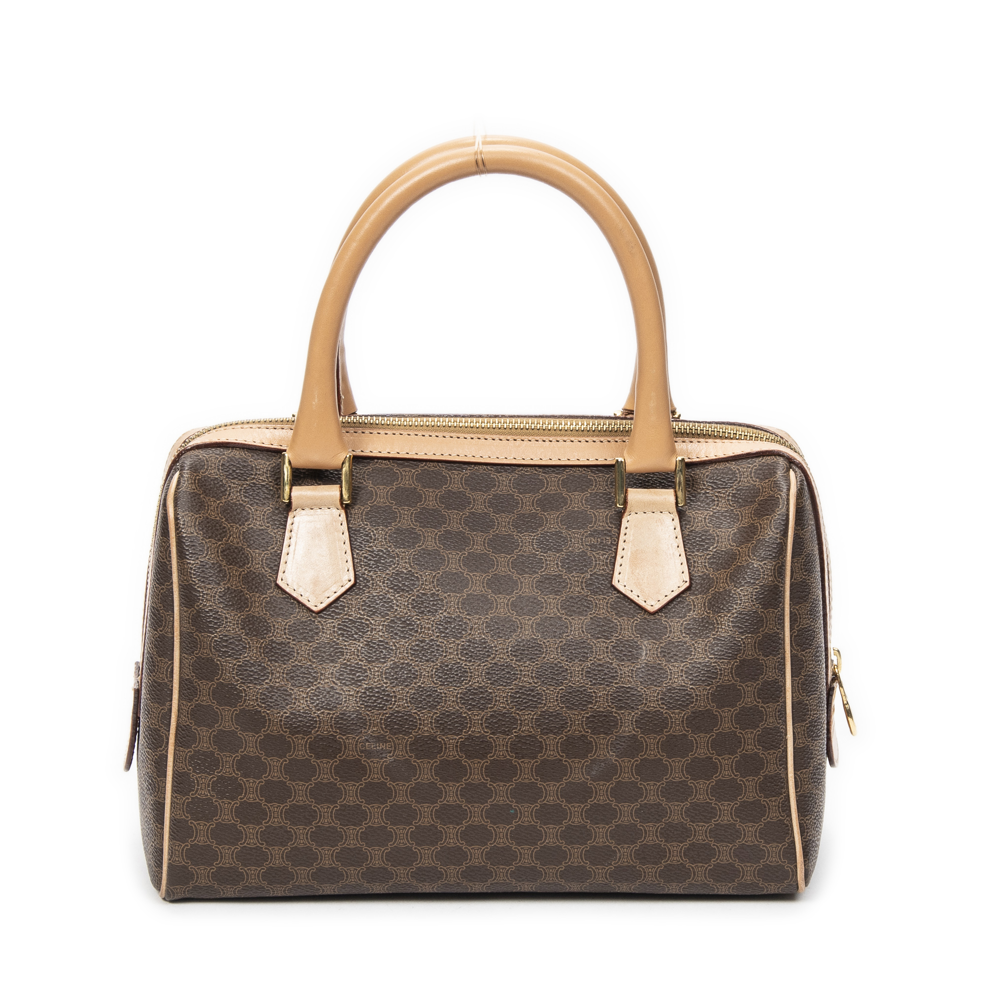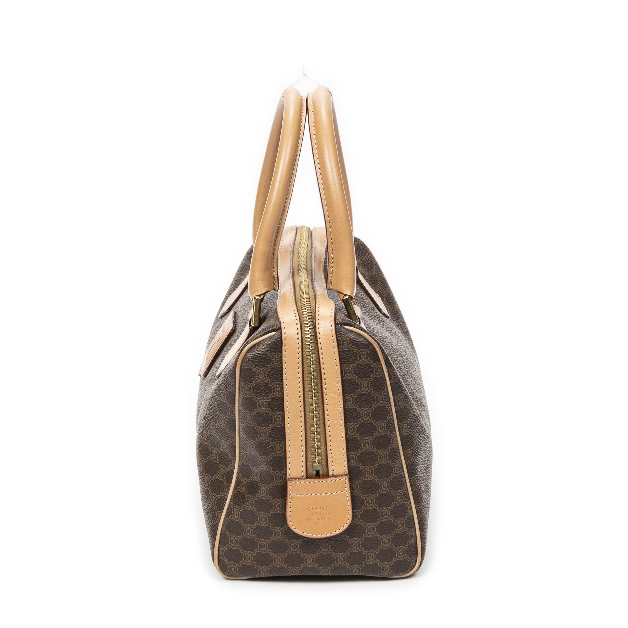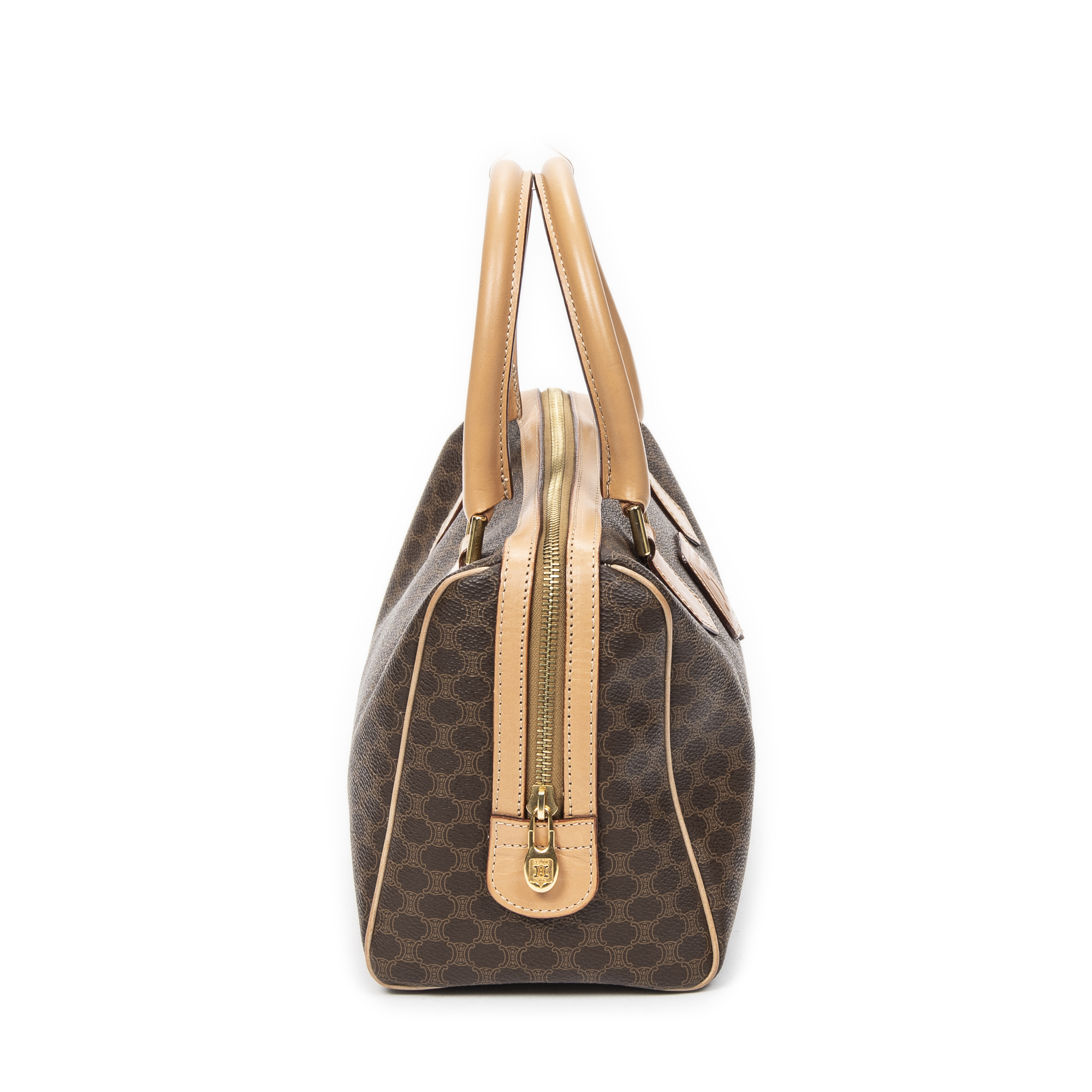 Celine Handbag Small Boston in Beige/Brown Macadam Coated Canvas and Gold hardware. The product is in Excellent Condition (A).