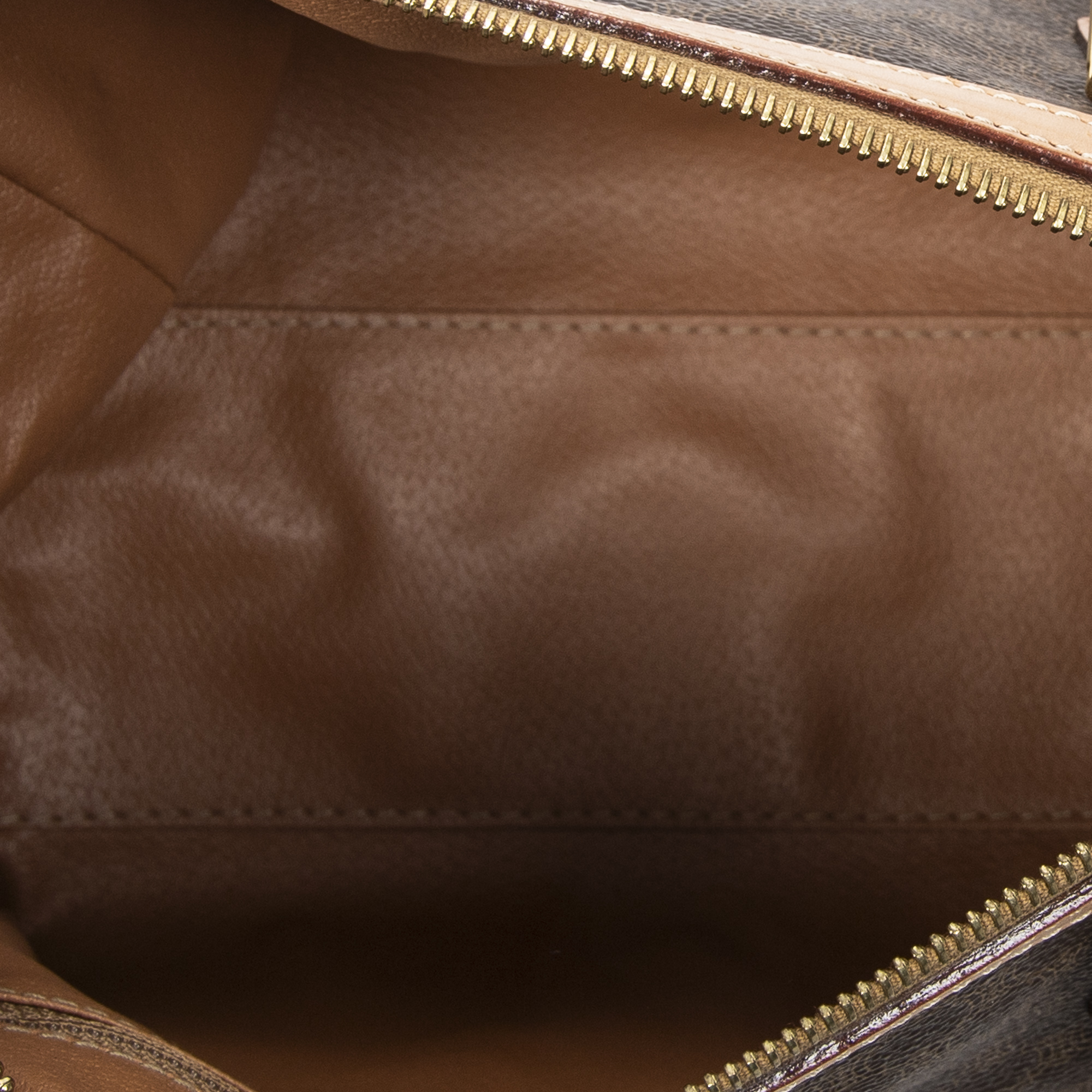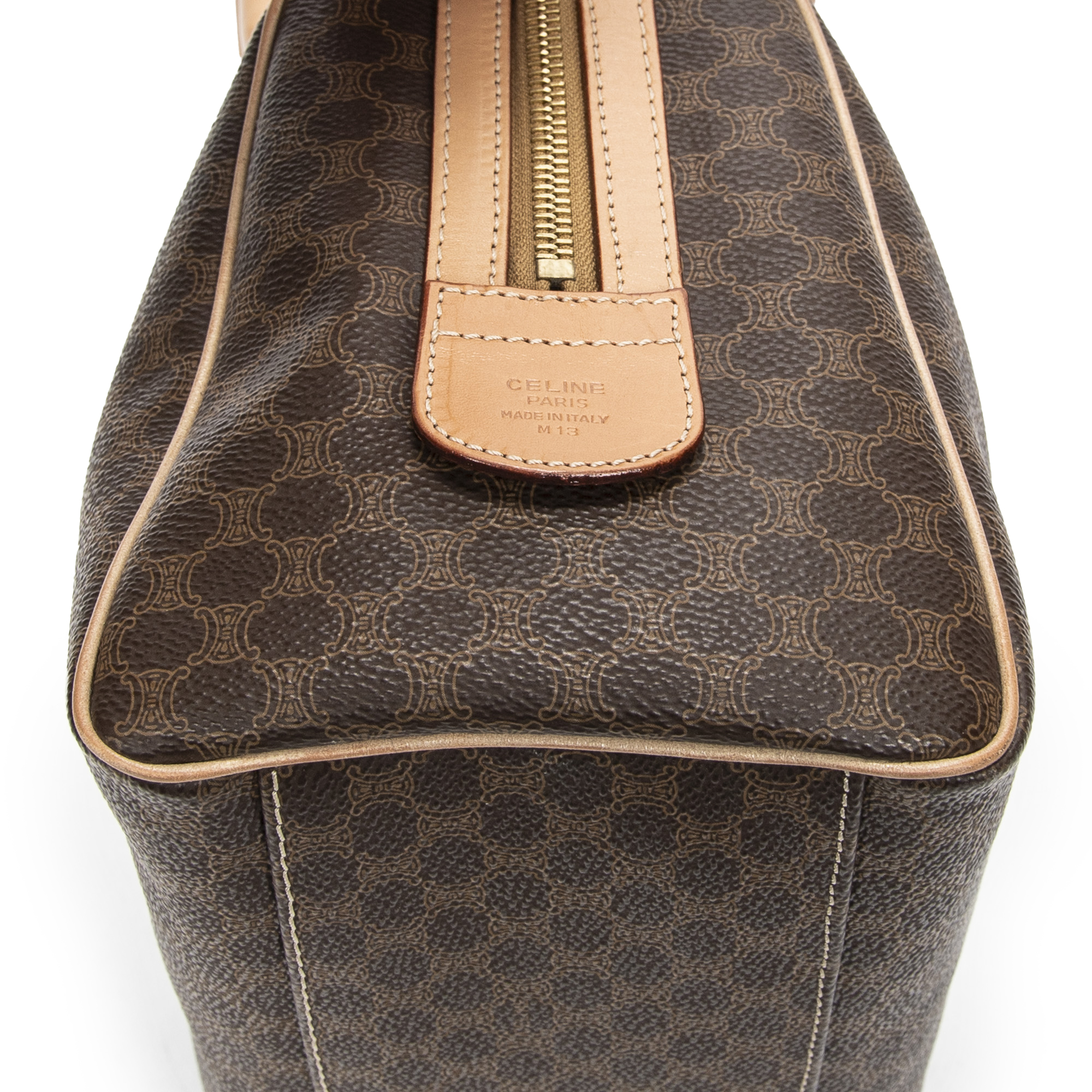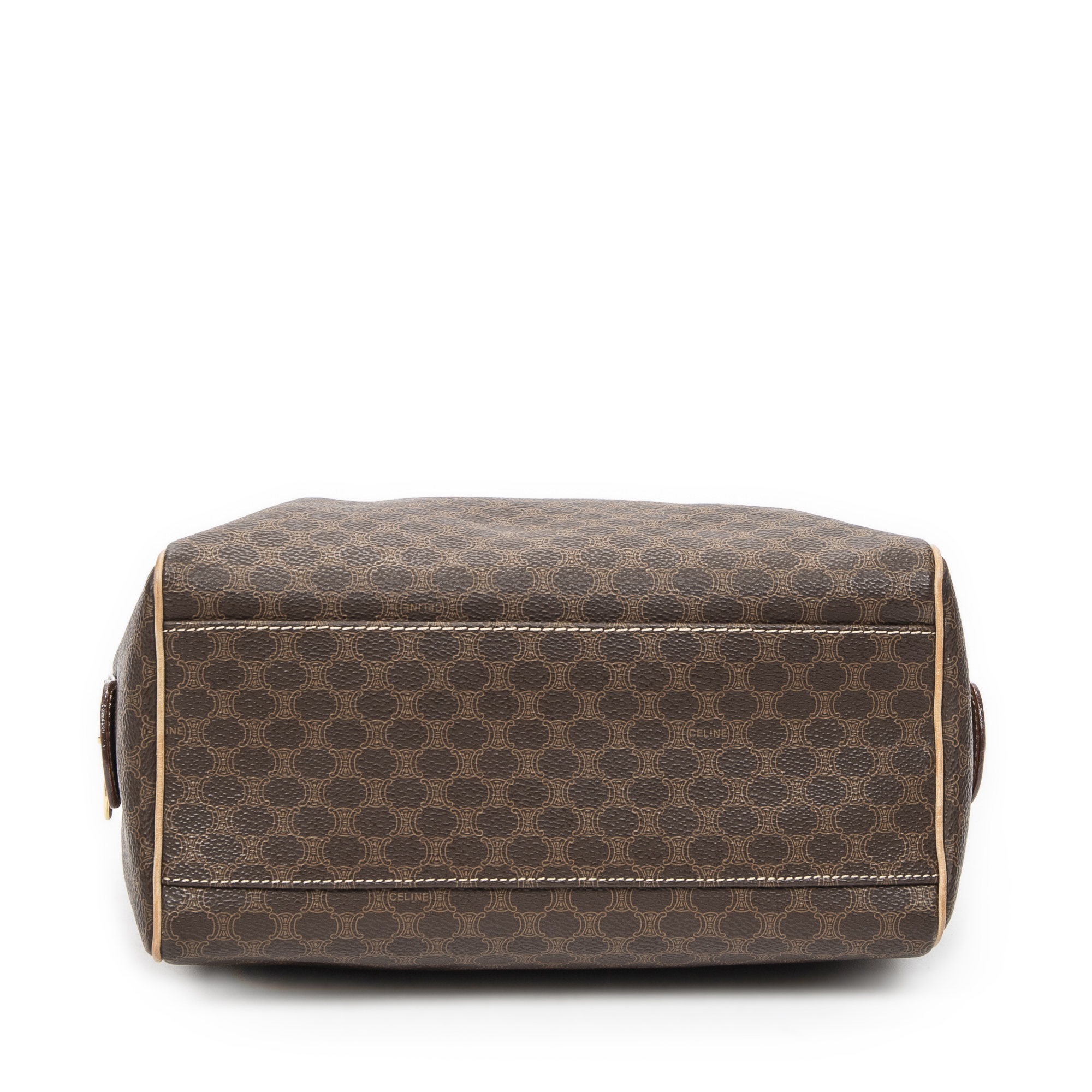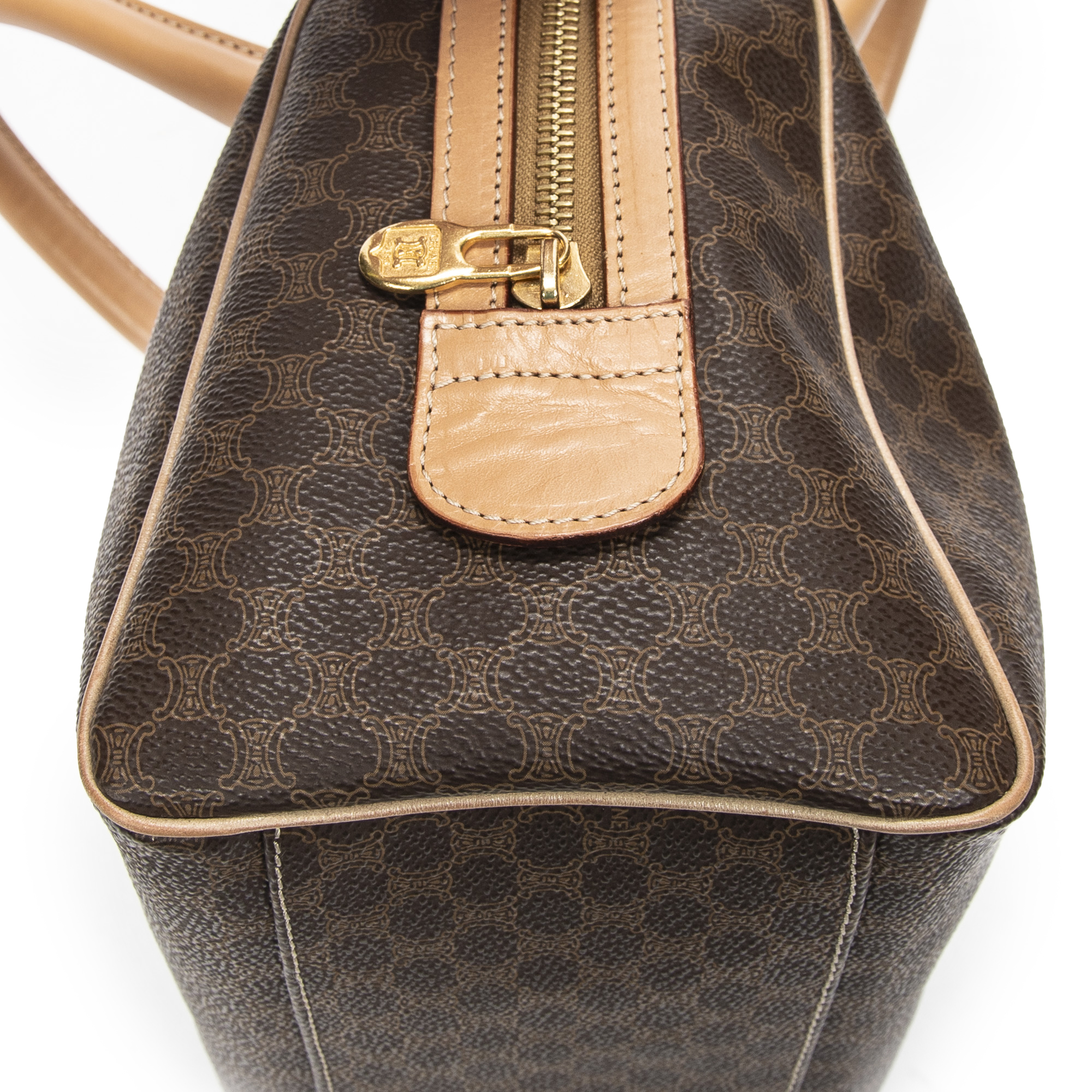 Celine Handbag Small Boston in Beige/Brown Macadam Coated Canvas and Gold hardware. The product is in Excellent Condition (A).