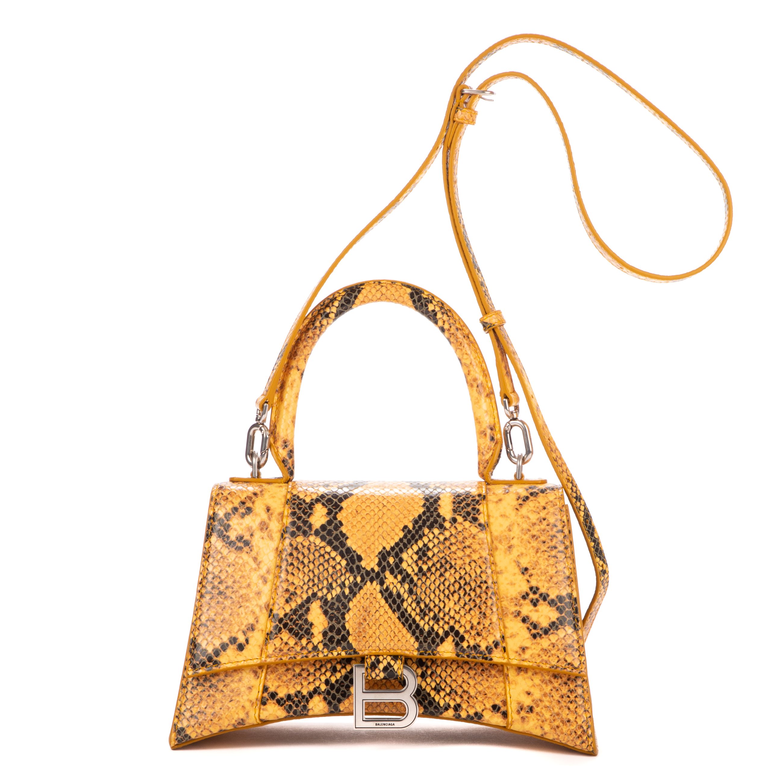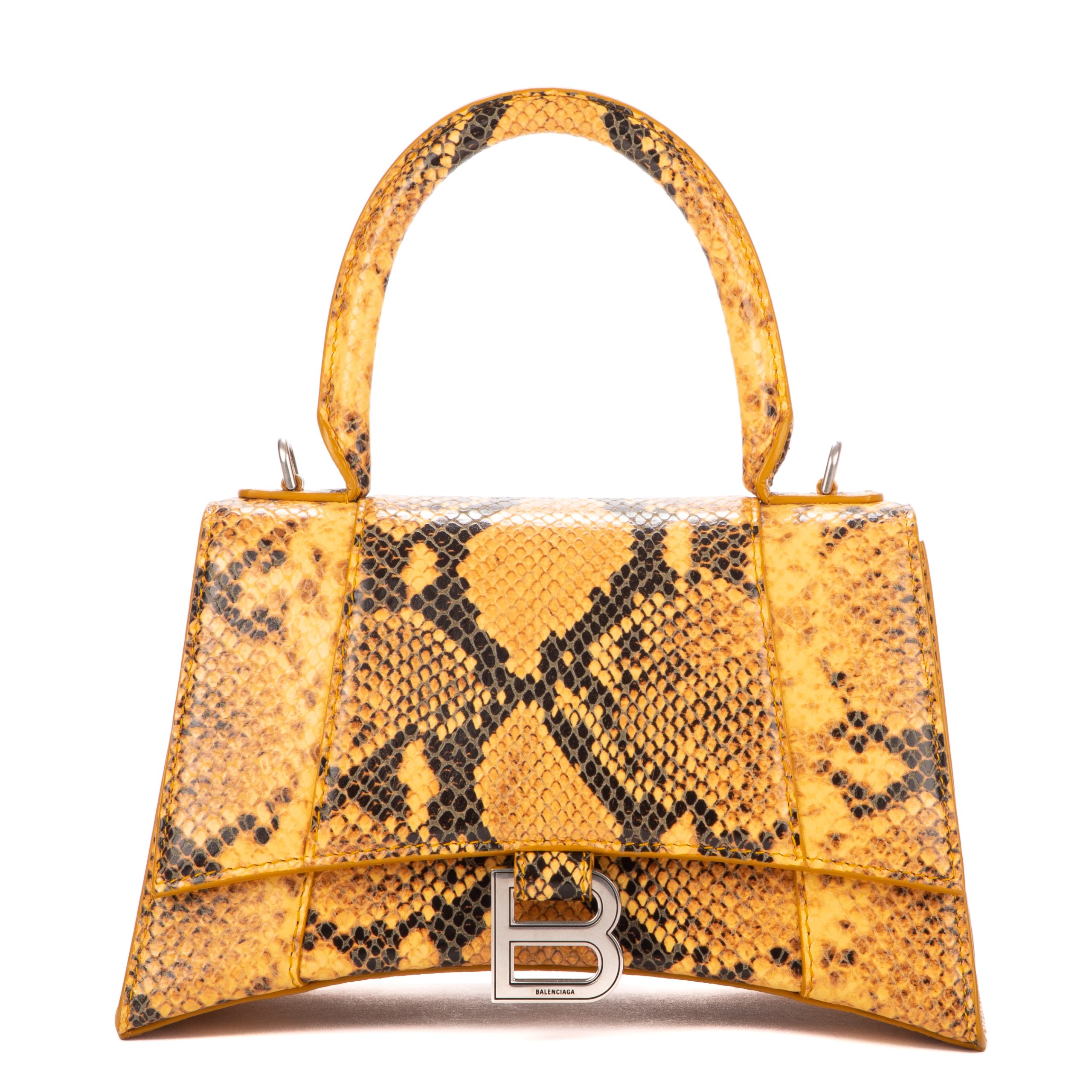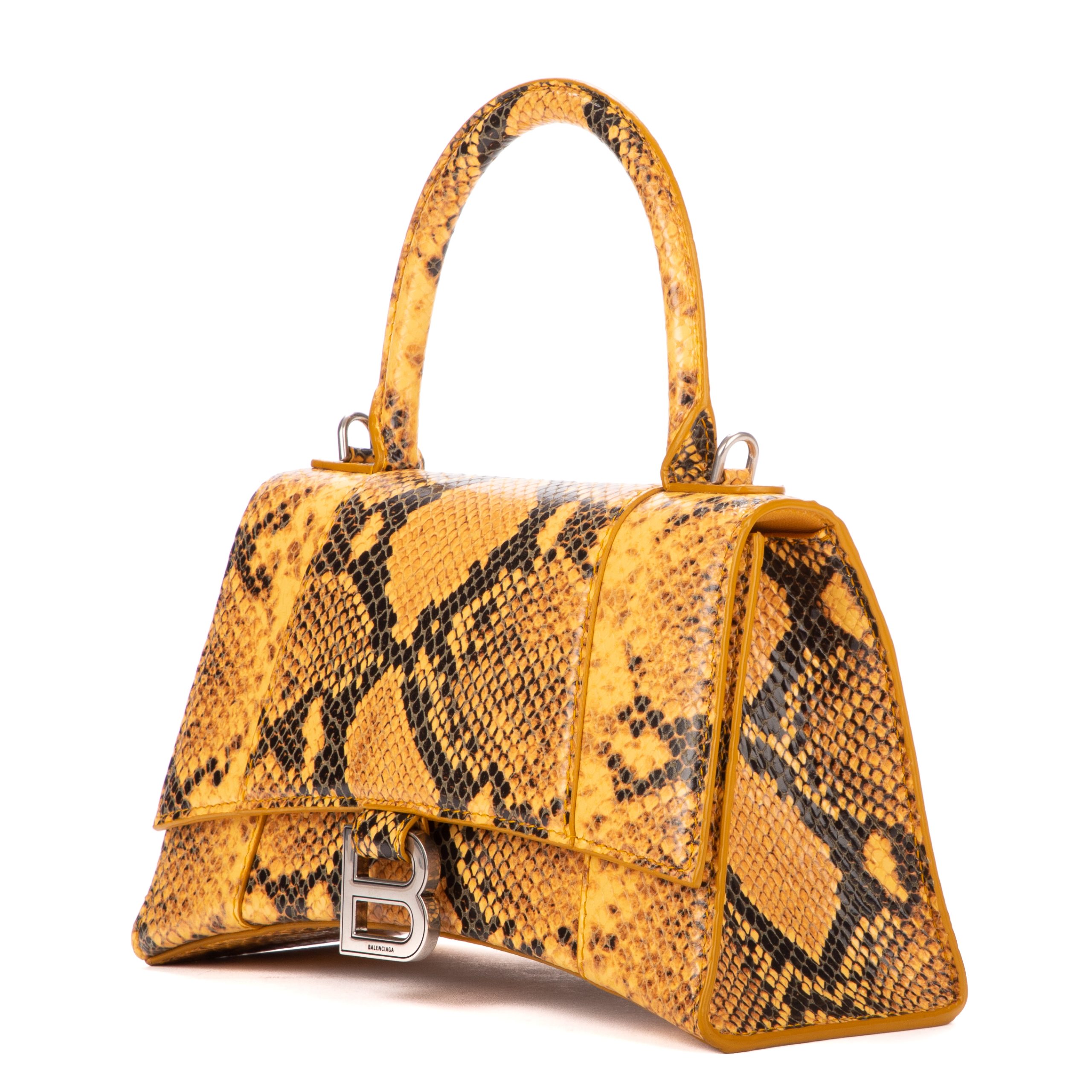 Balenciaga Handbag Small Hourglass in Light Brown Python Embossed Leather and Silver hardware. The product is Like New (N).