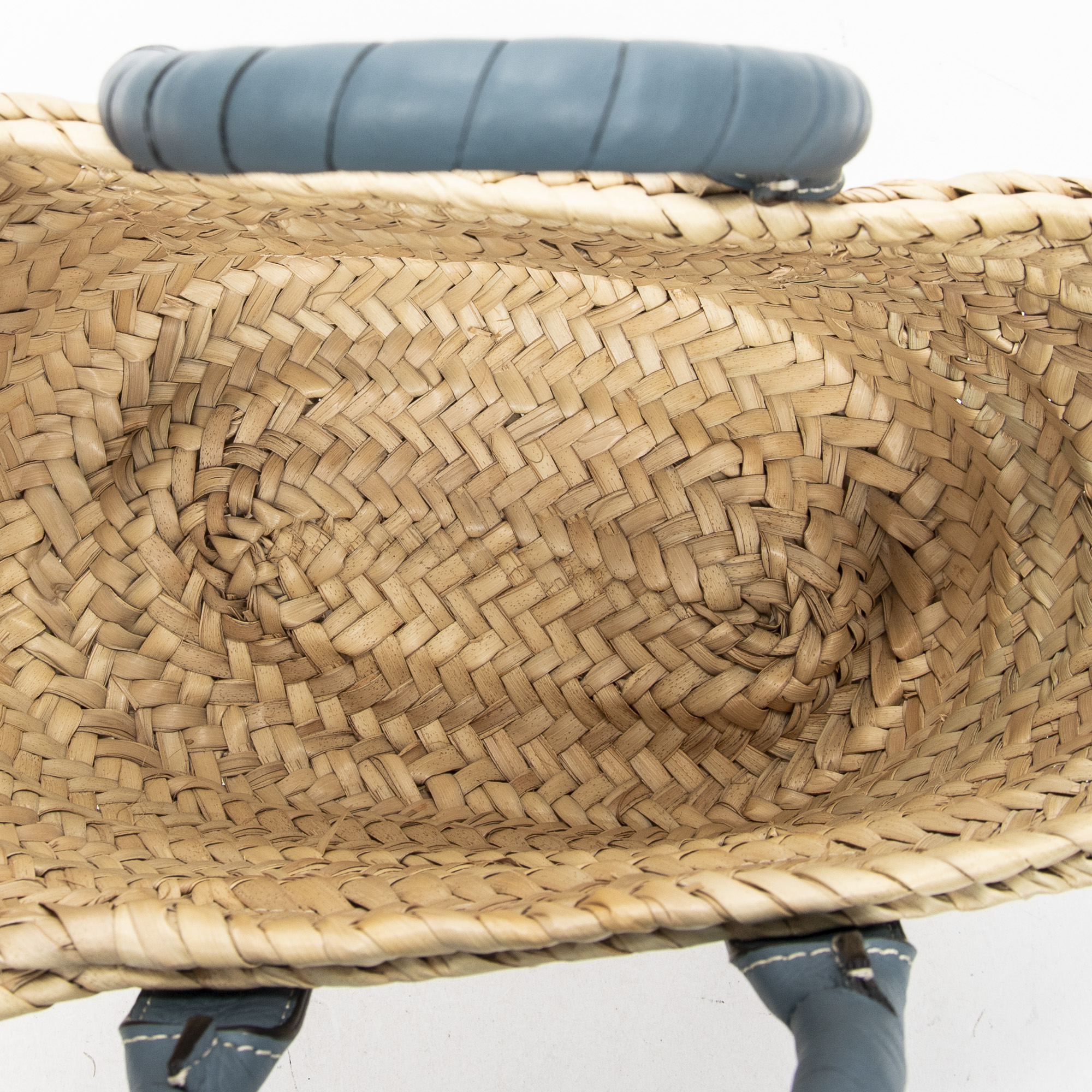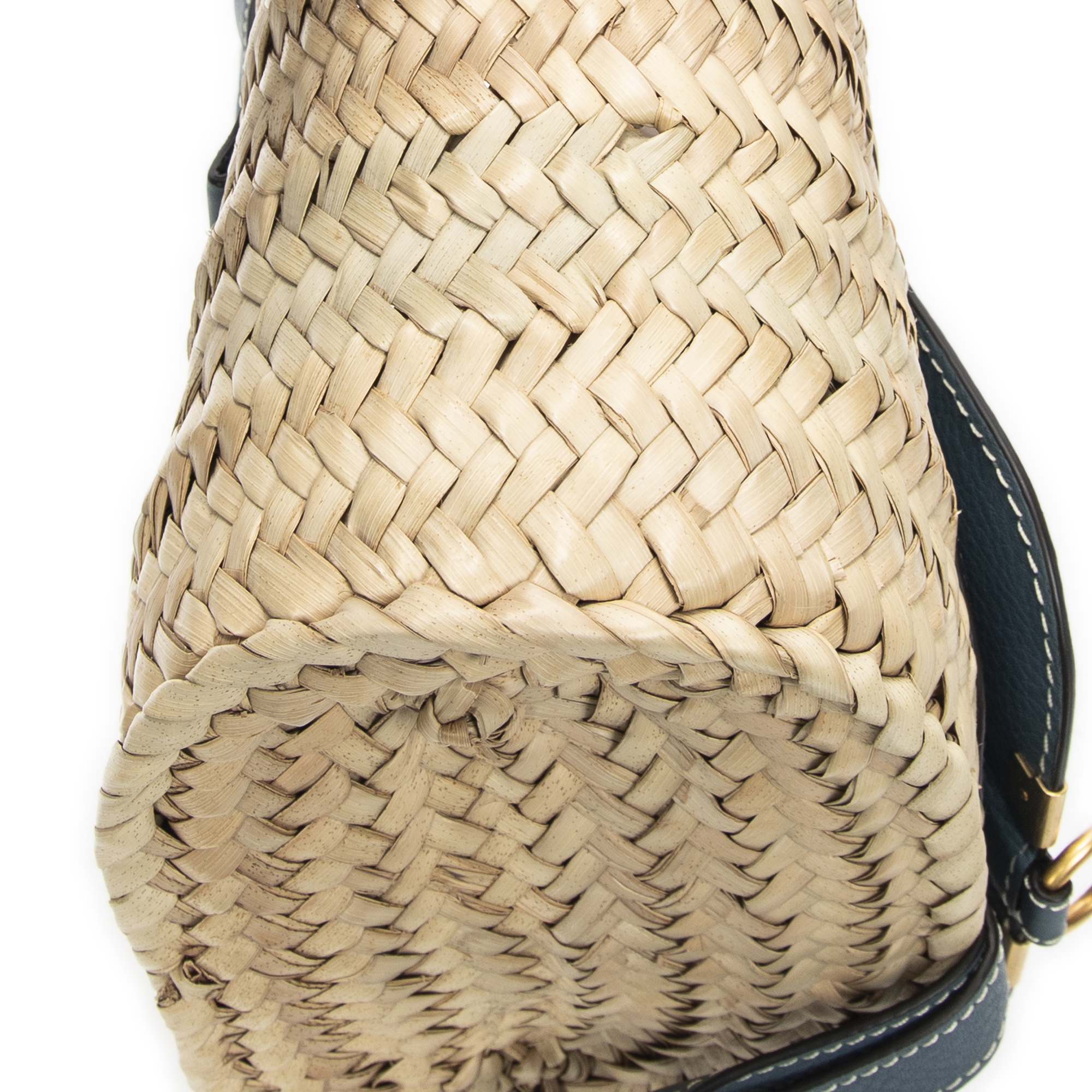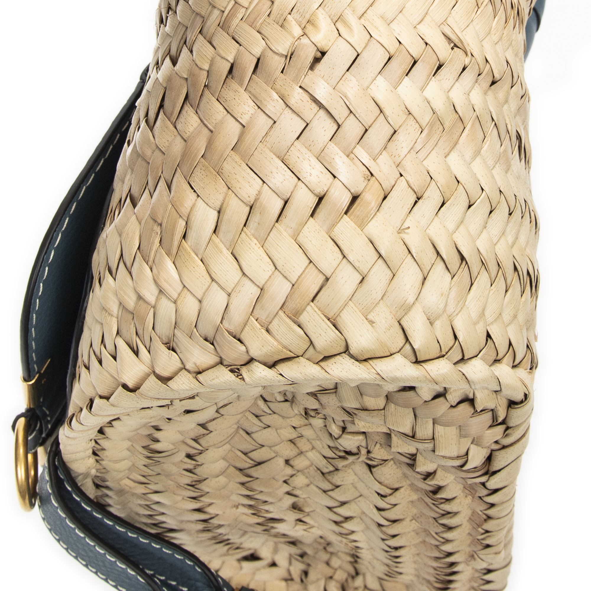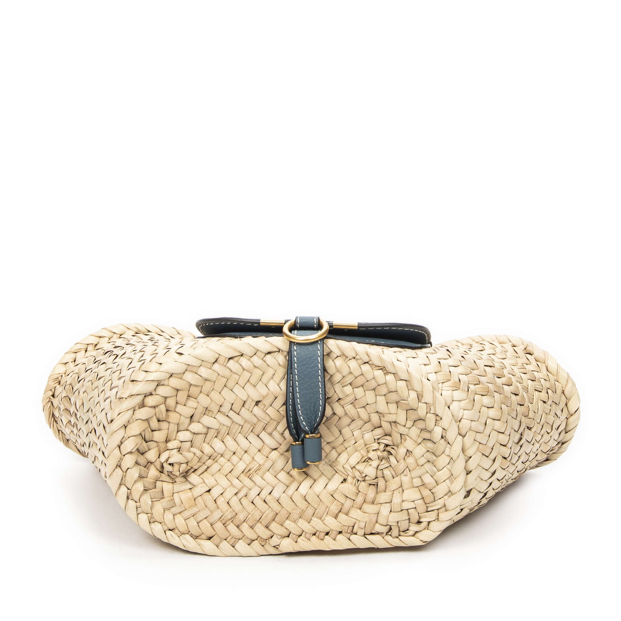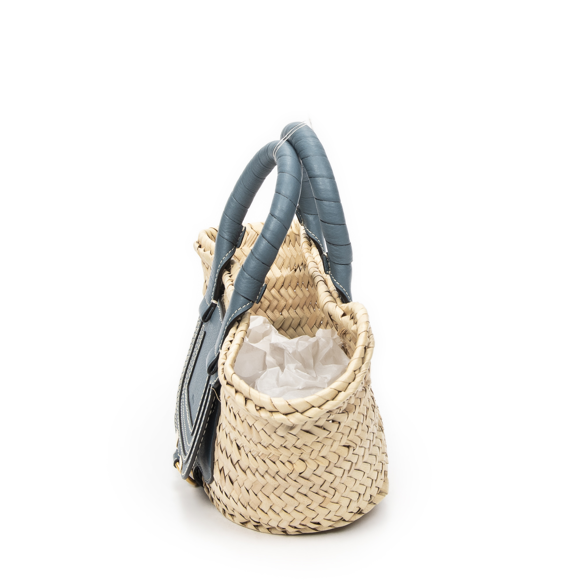 Chloé Handbag Small Marcie Basket in Blue/Natural Woven Raffia Canvas and Gold hardware. The product is in Perfect Condition (AA).