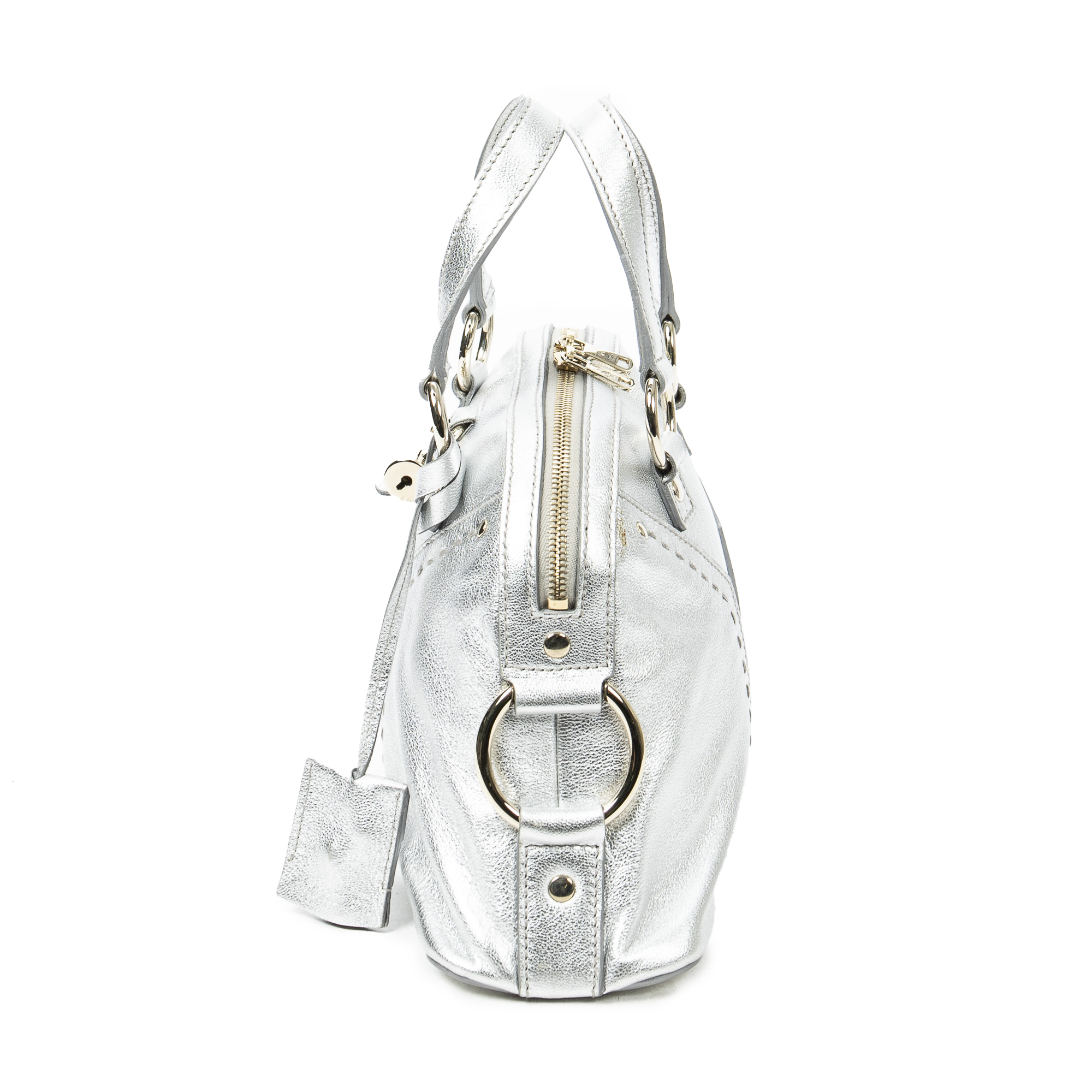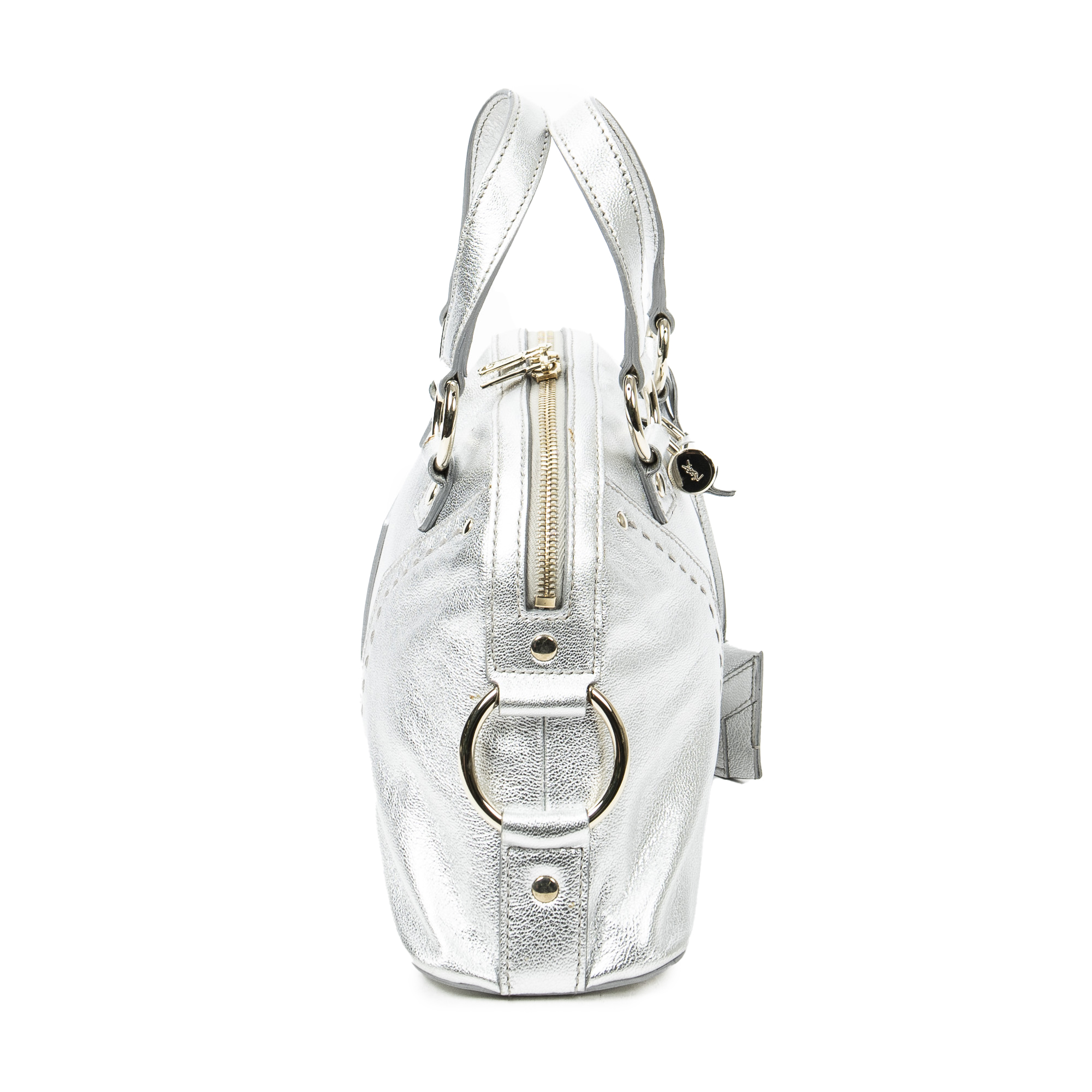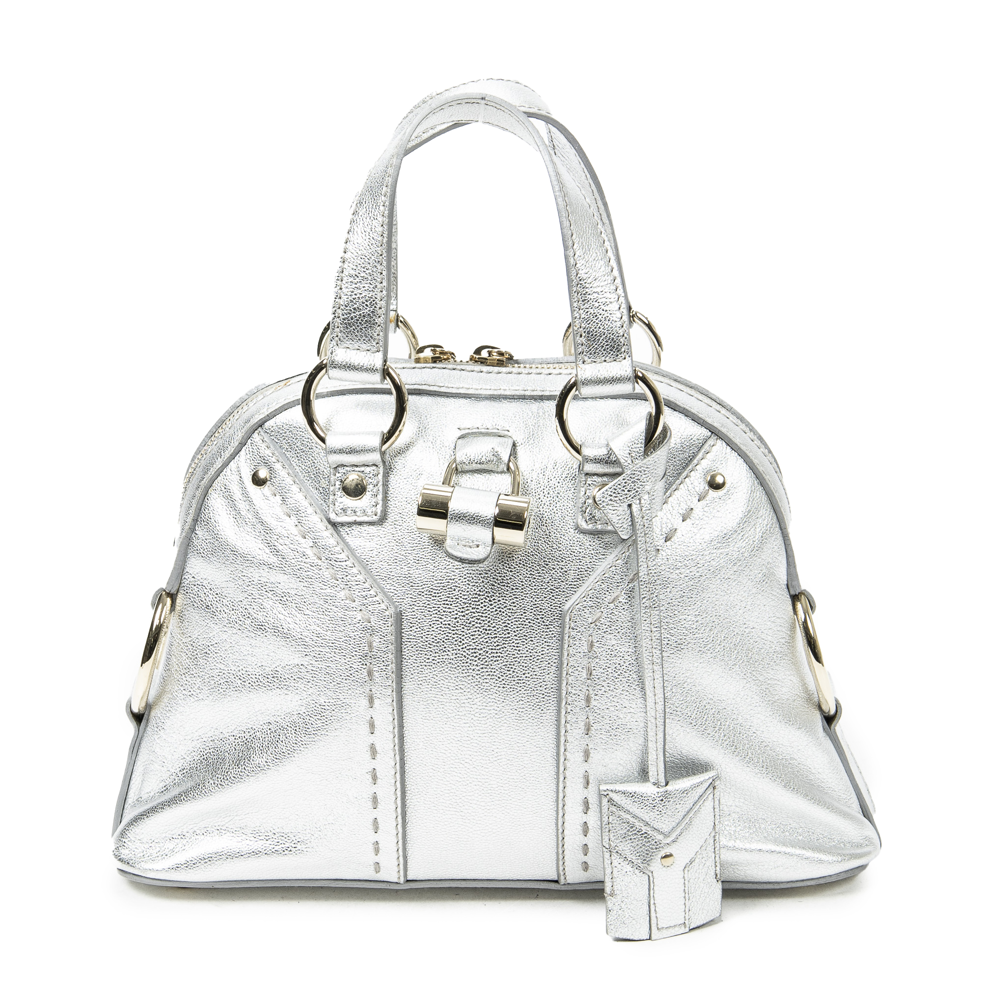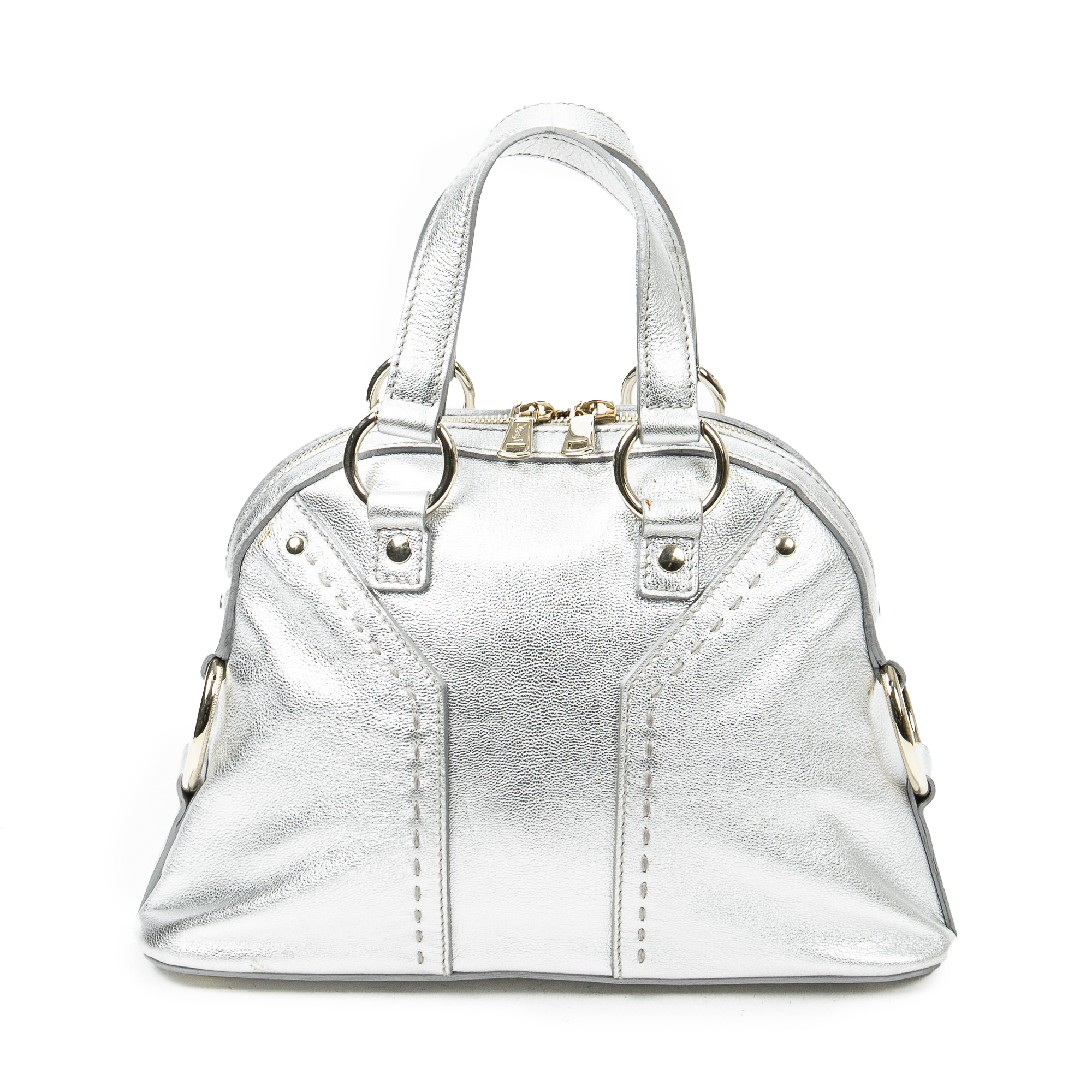 Yves Saint Laurent Handbag Small Muse Bag in Metallic Silver Small Grained Leather and Gold hardware. The product is in Excellent Condition (A).