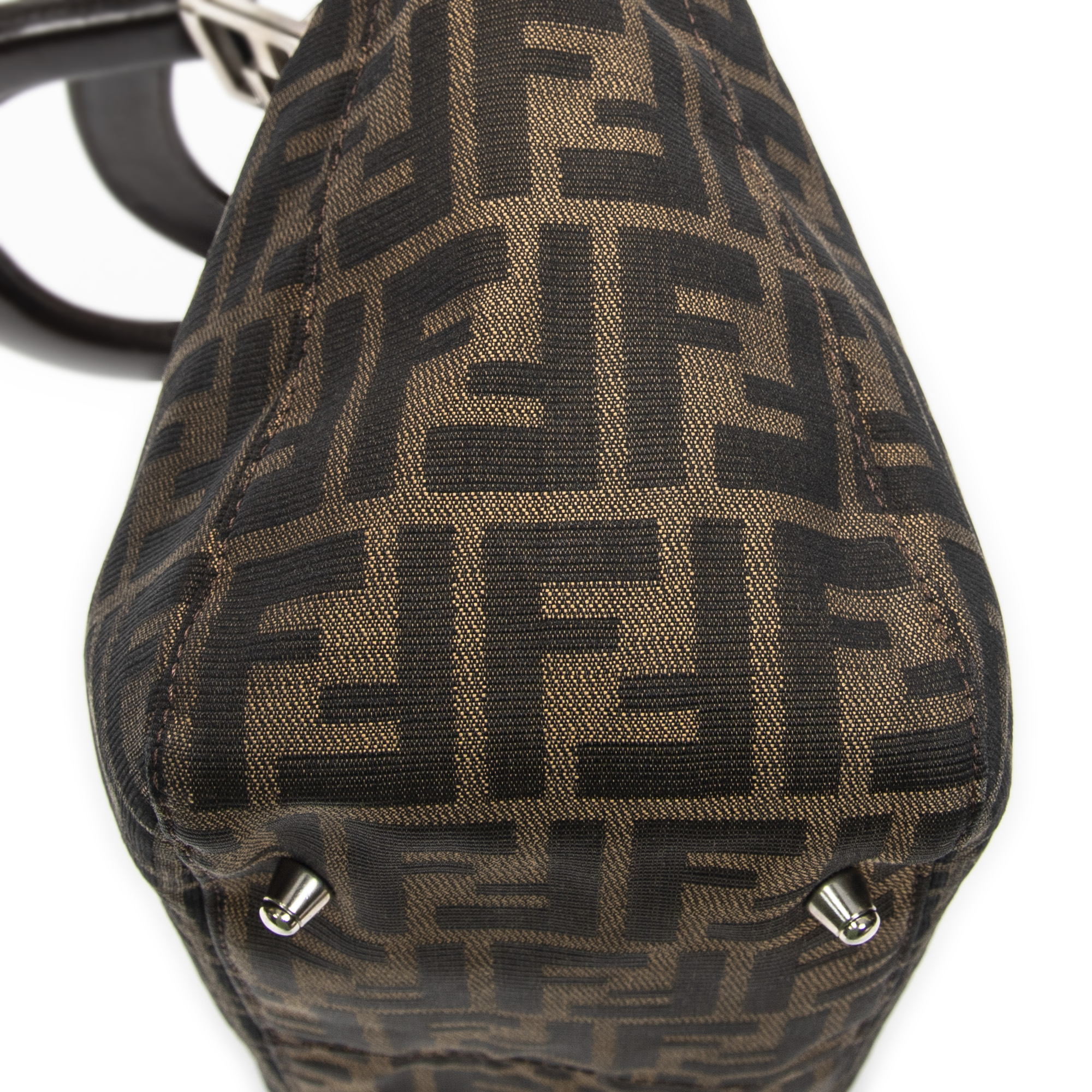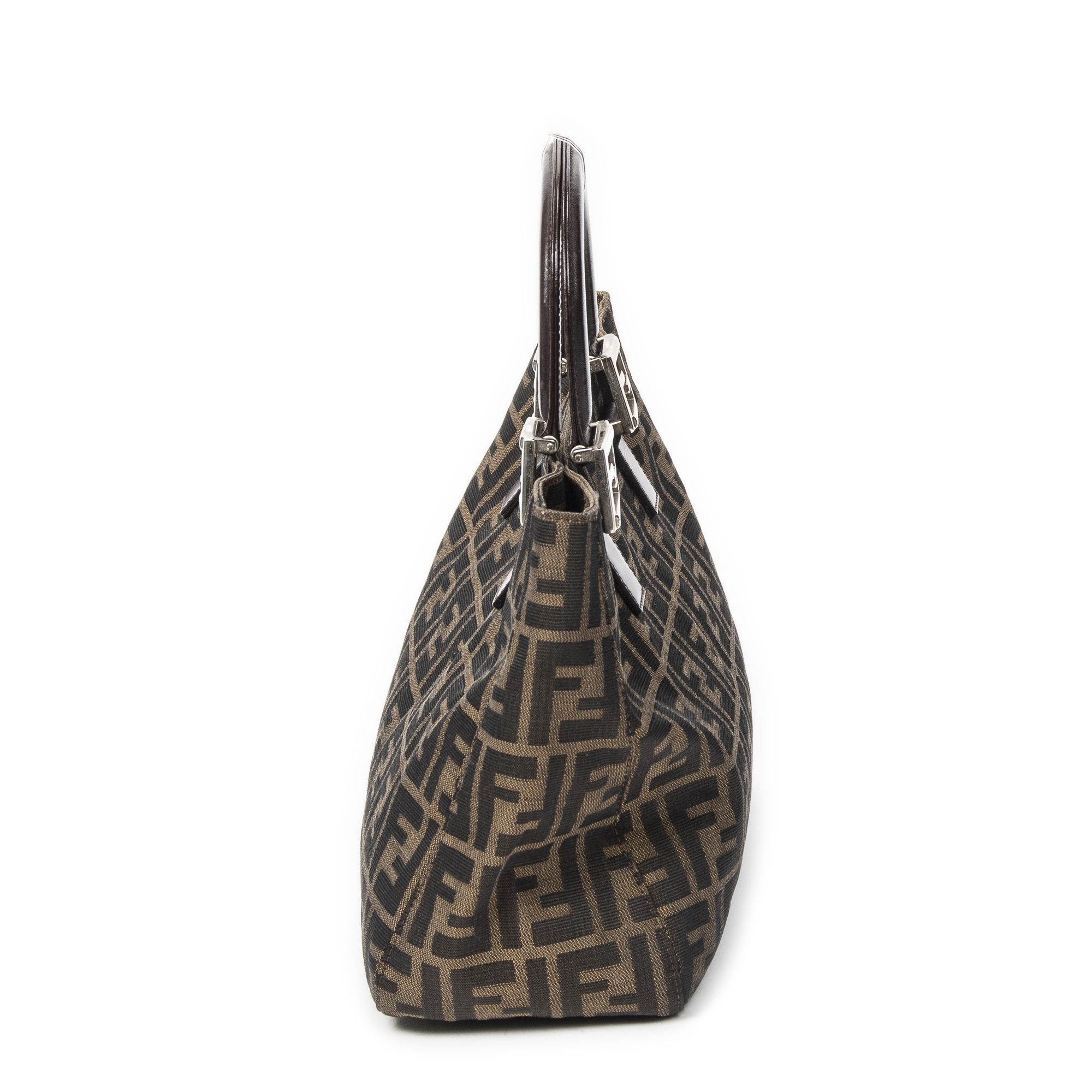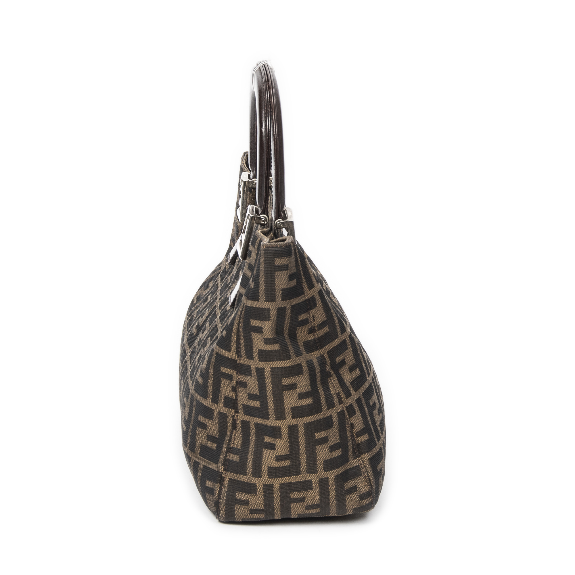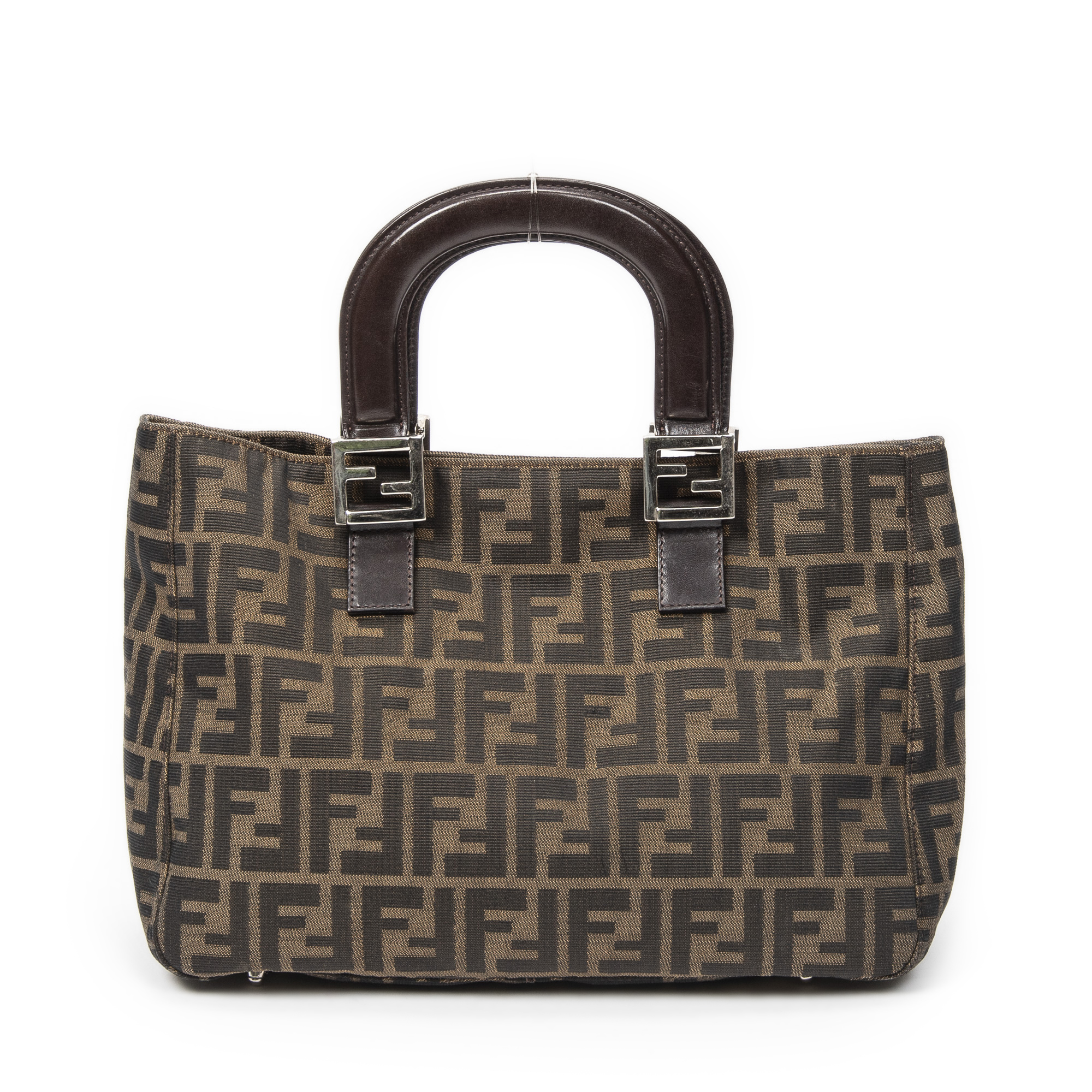 Fendi Handbag Small Shopper Tote in Brown Zucca Canvas and Silver hardware. The product is in Excellent Condition (A).