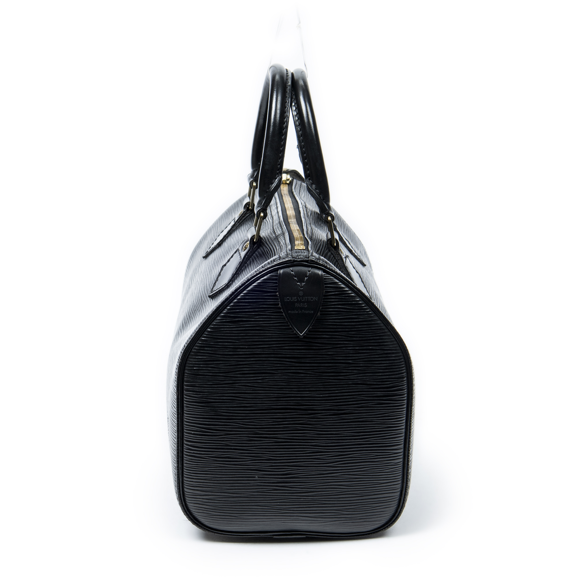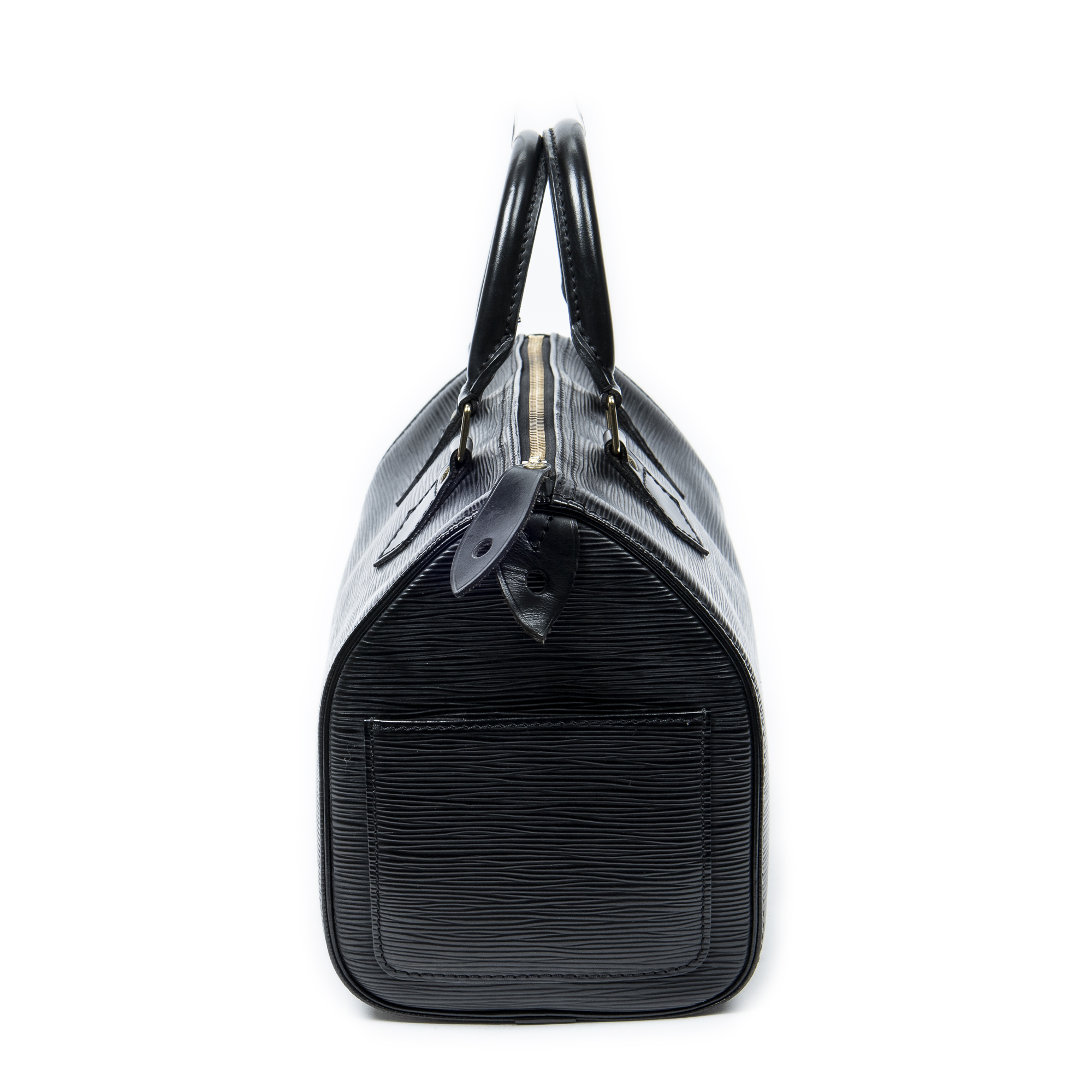 Louis Vuitton Handbag Speedy 25 in Black Epi and Golden Brass hardware. The product is in Excellent Condition (A).