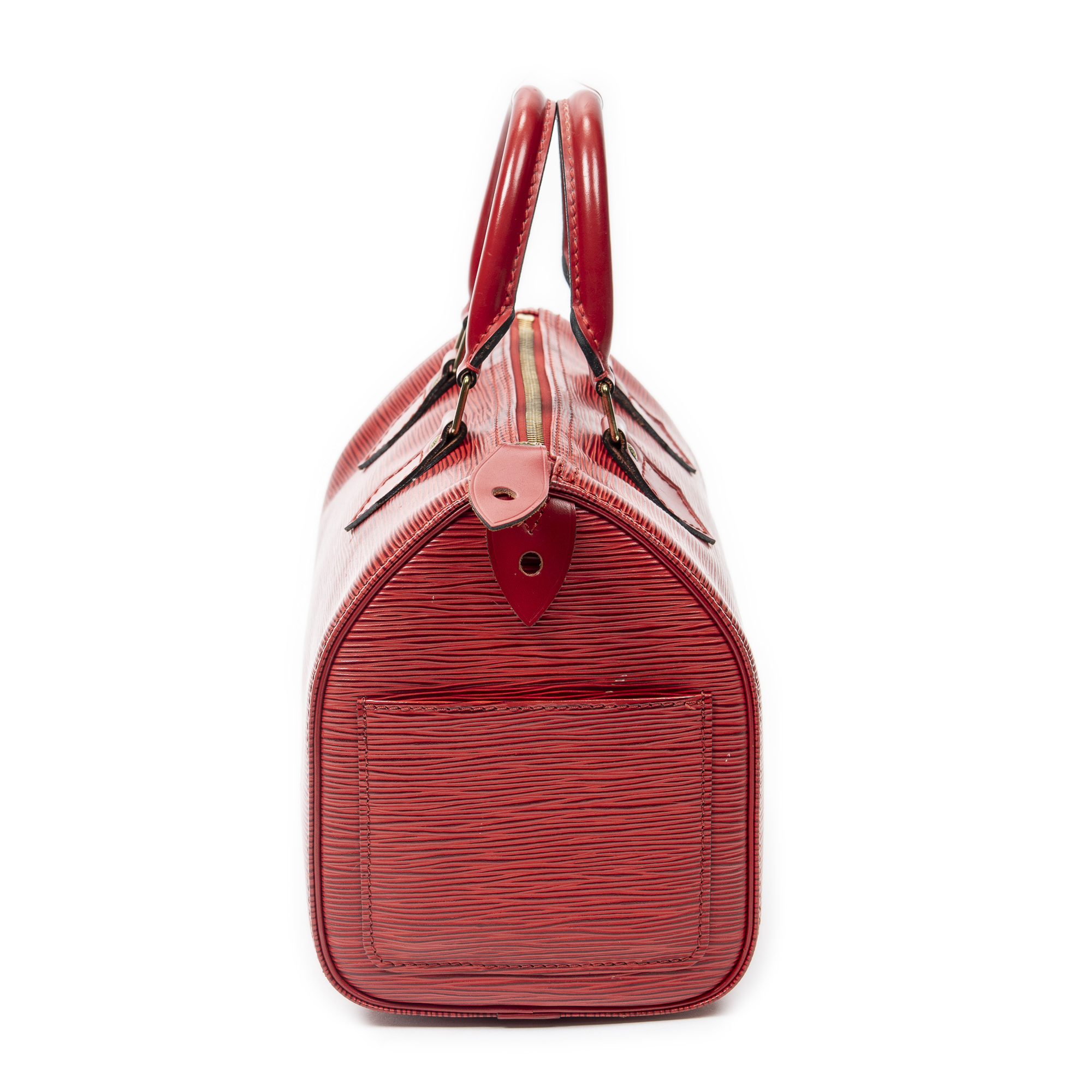 Louis Vuitton Handbag Speedy 25 in Red Epi and Golden Brass hardware. The product is in Excellent Condition (A).