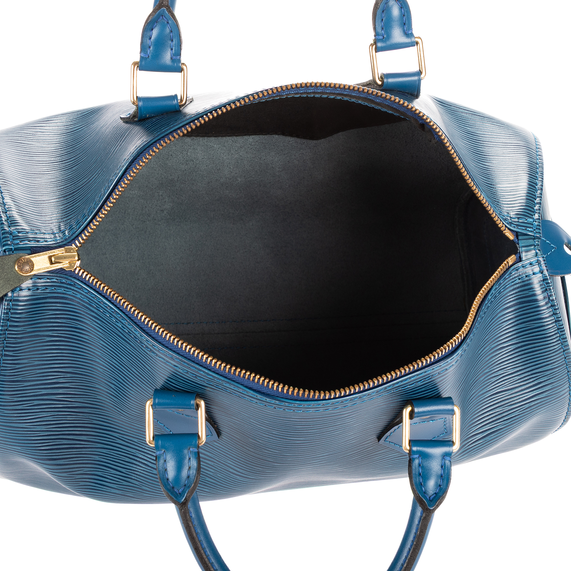 Louis Vuitton Handbag Speedy 30 in Blue Epi and Golden Brass hardware. The product is in Excellent Condition (A).