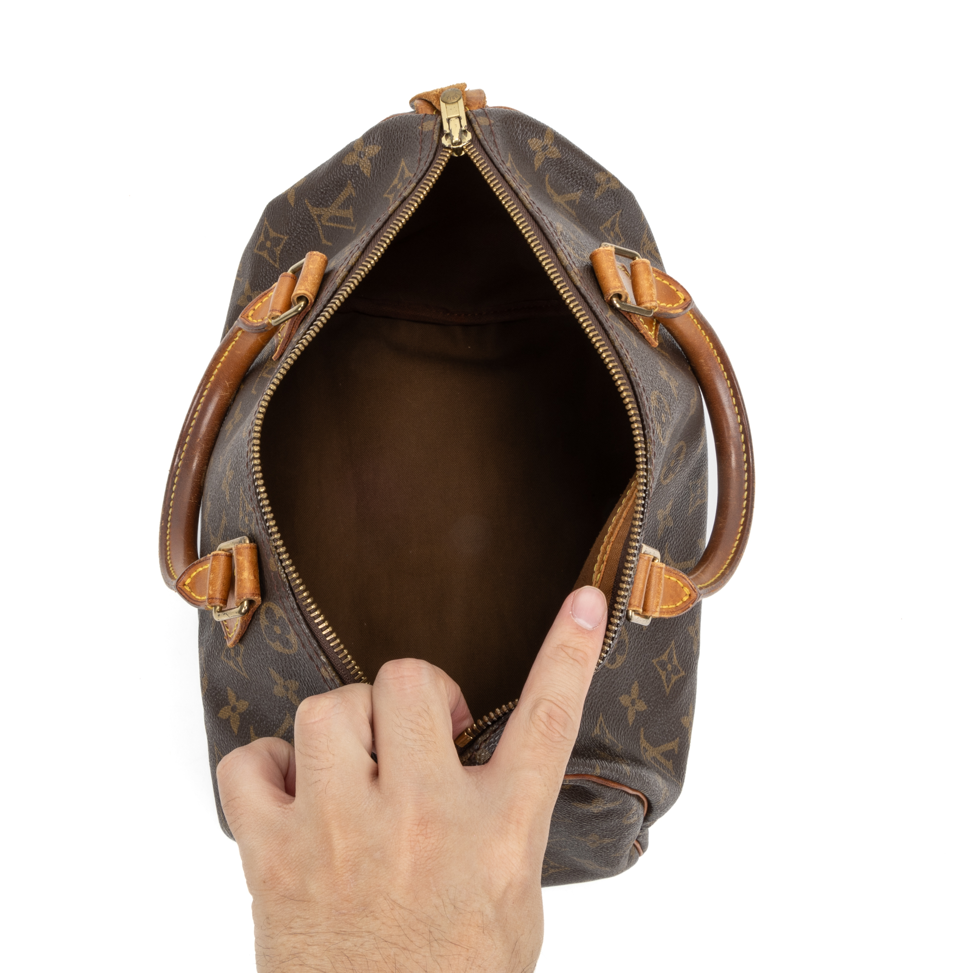 Louis Vuitton Handbag Speedy 30 in Brown Monogram Canvas and Golden Brass hardware. The product is in Excellent Condition (A).