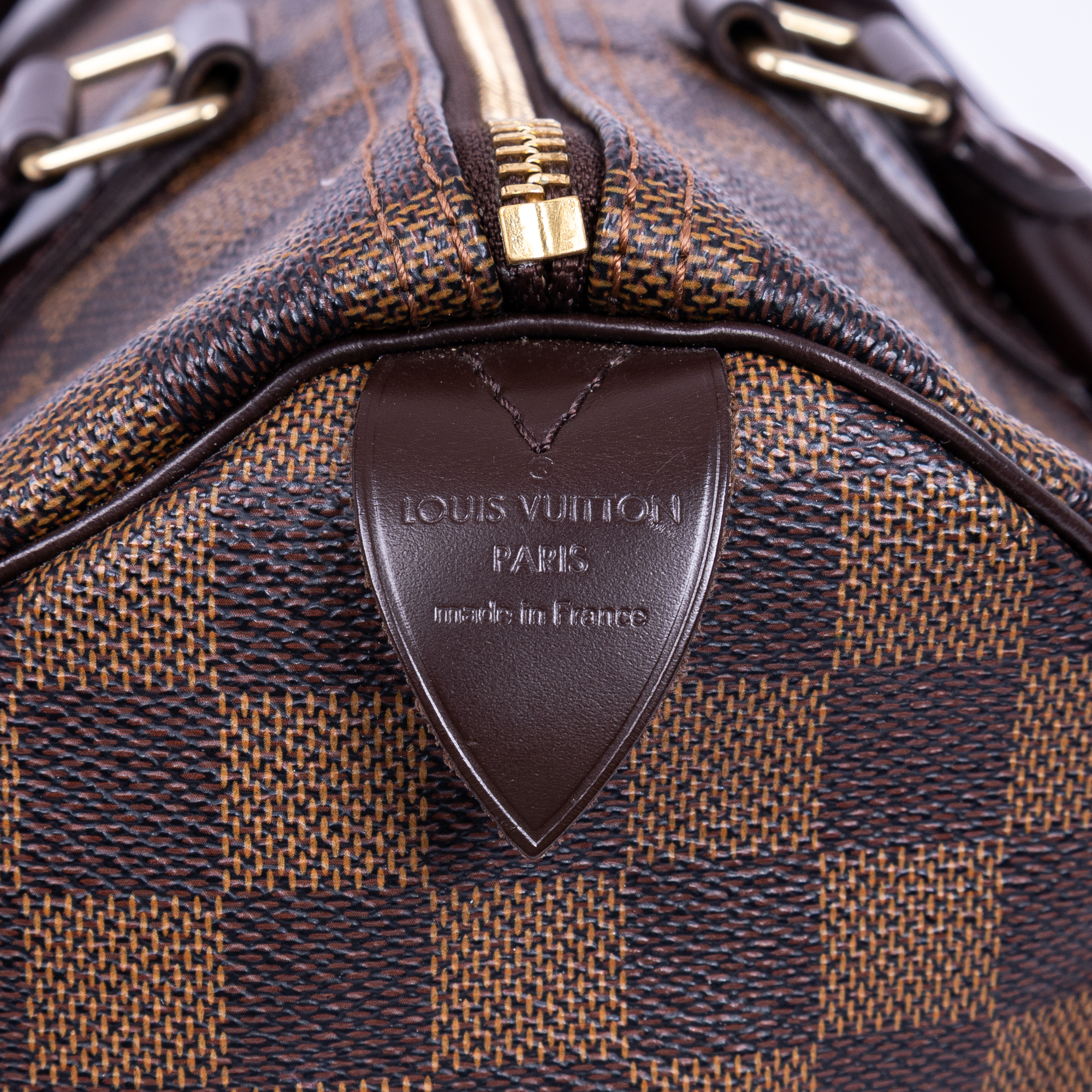 Louis Vuitton Handbag Speedy 30 in Brown Damier Ebene and Golden Brass hardware. The product is in Perfect Condition (AA).