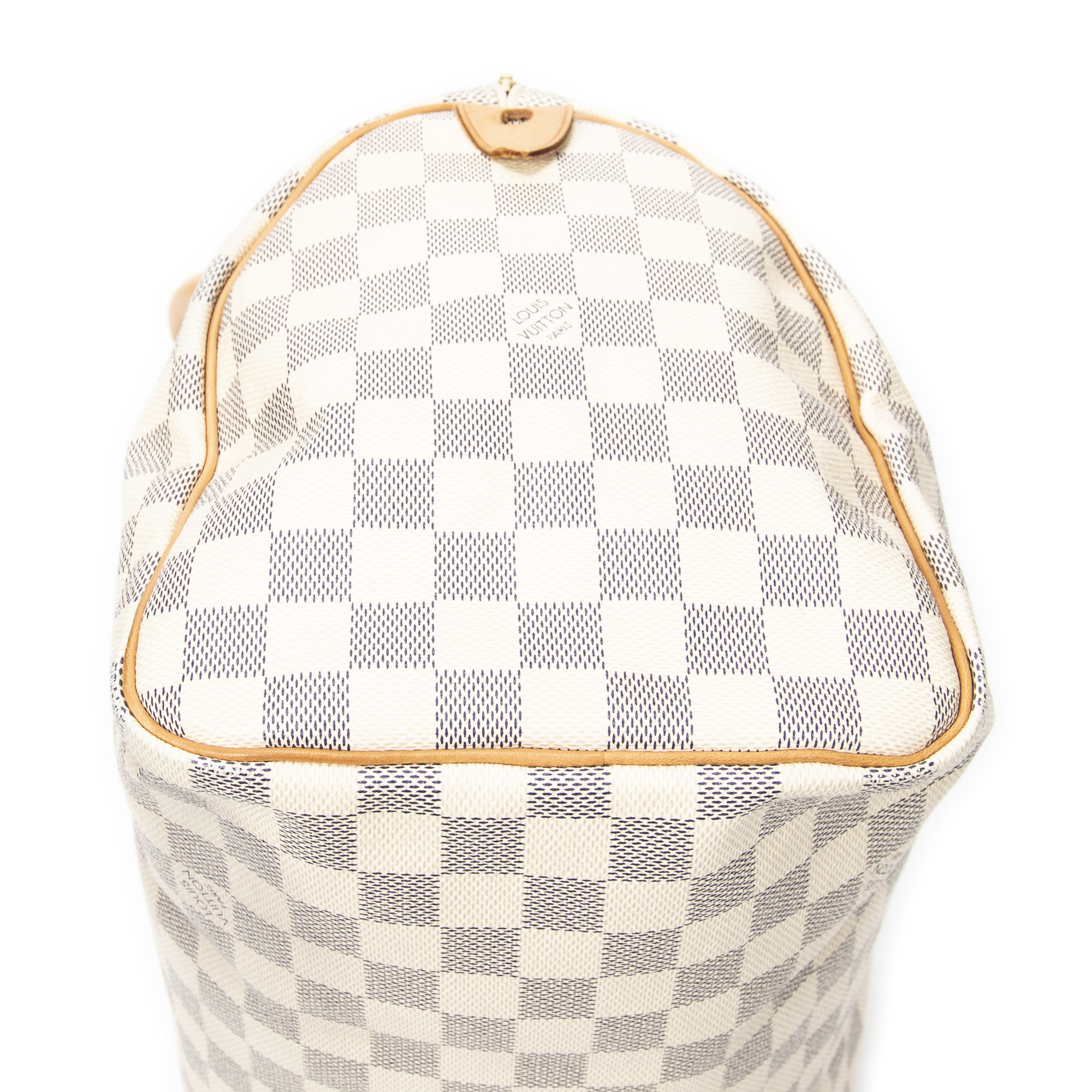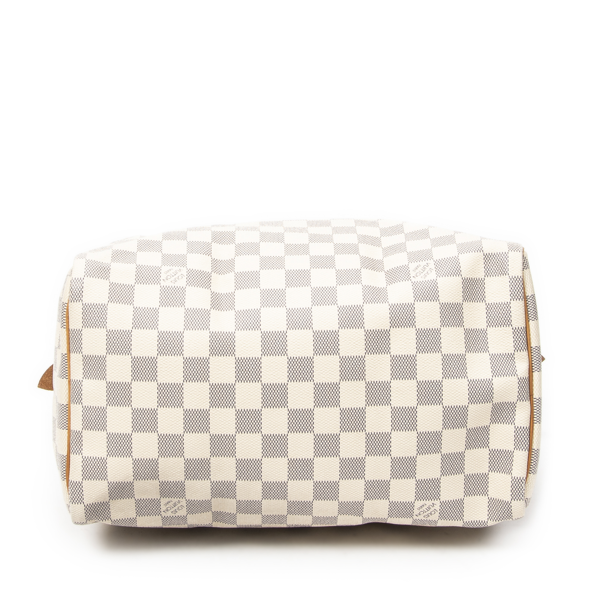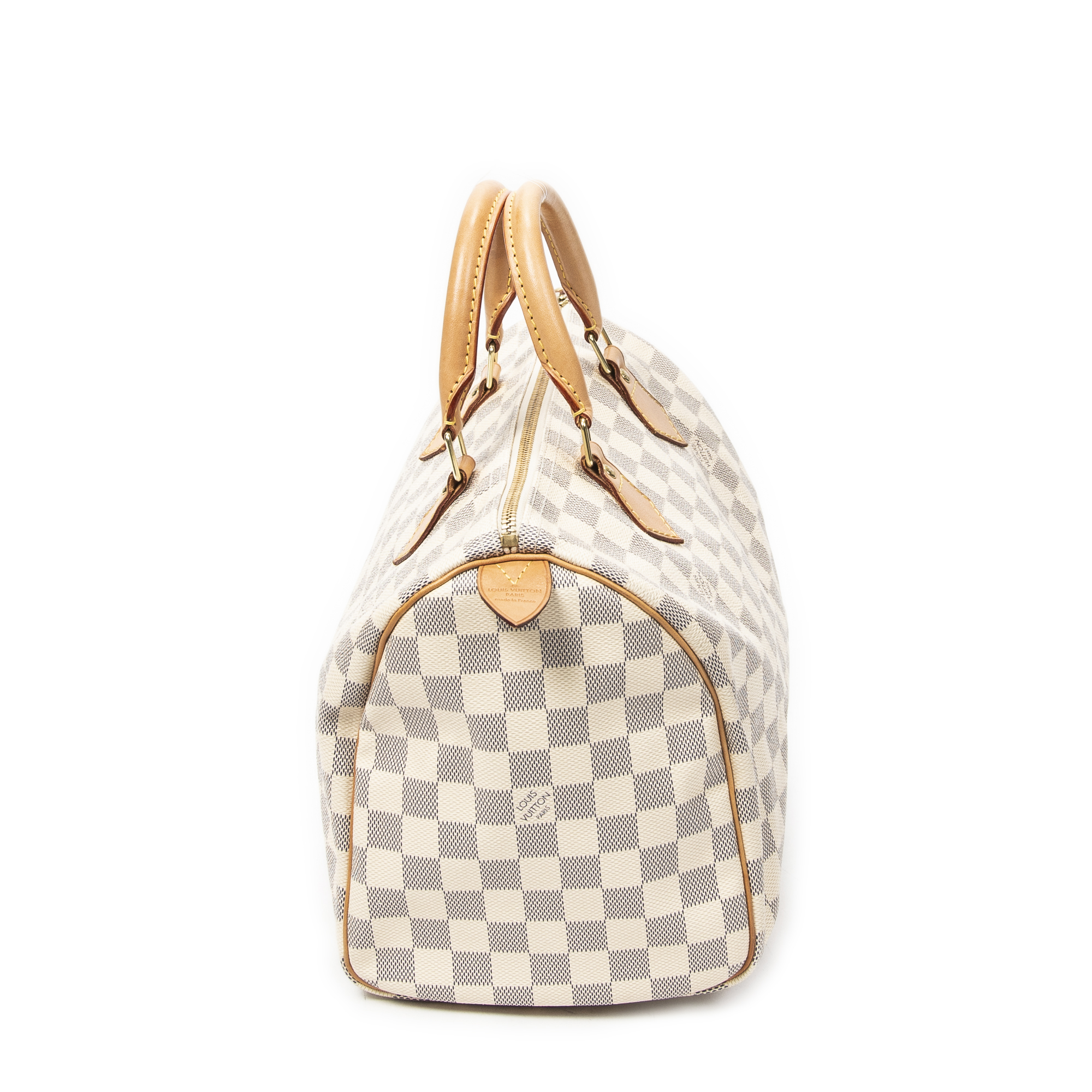 Louis Vuitton Handbag Speedy 30 in Ivory Damier Azur and Golden Brass hardware. The product is in Perfect Condition (AA).