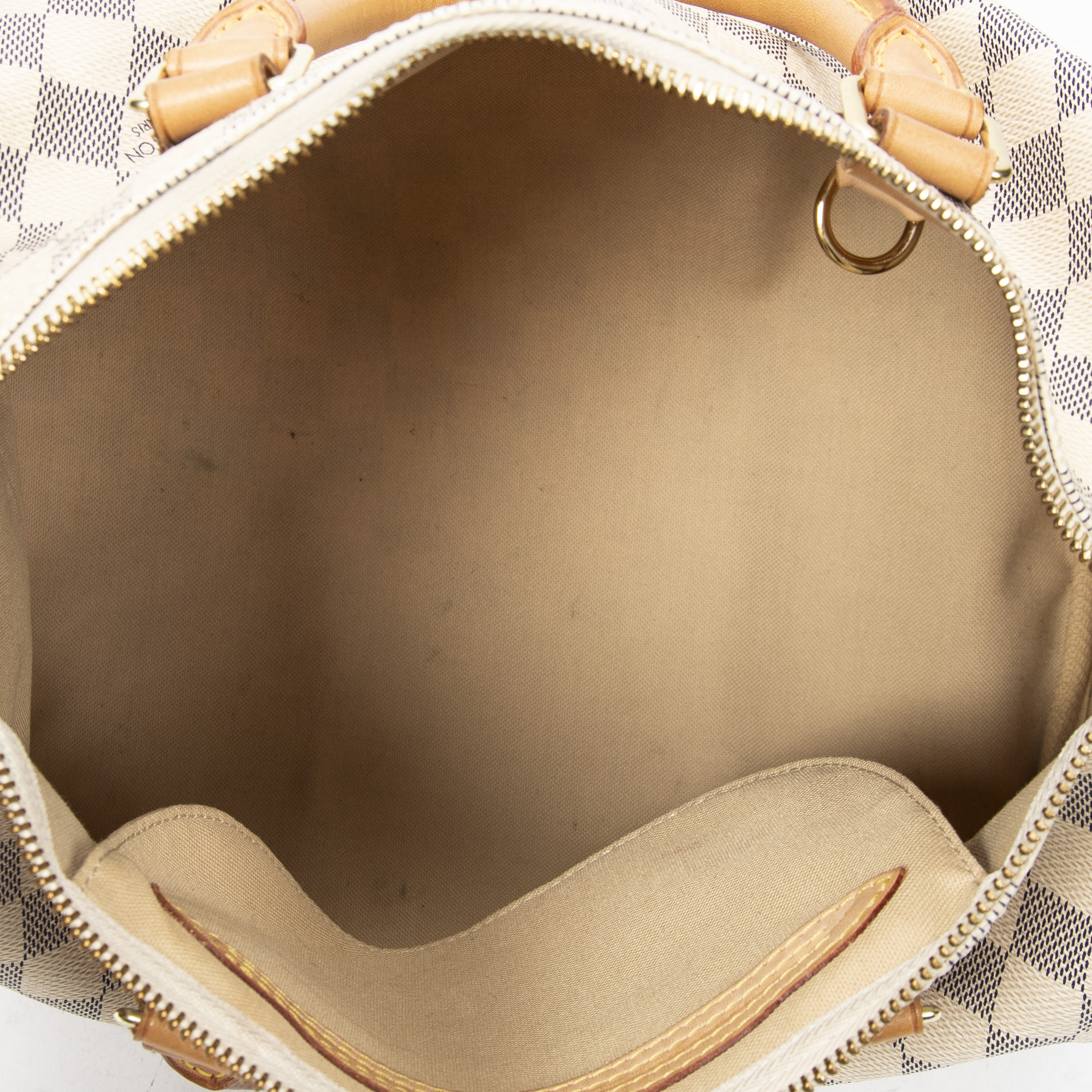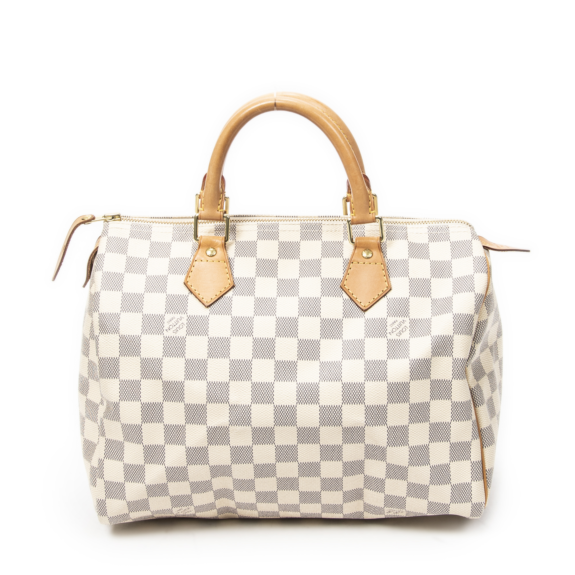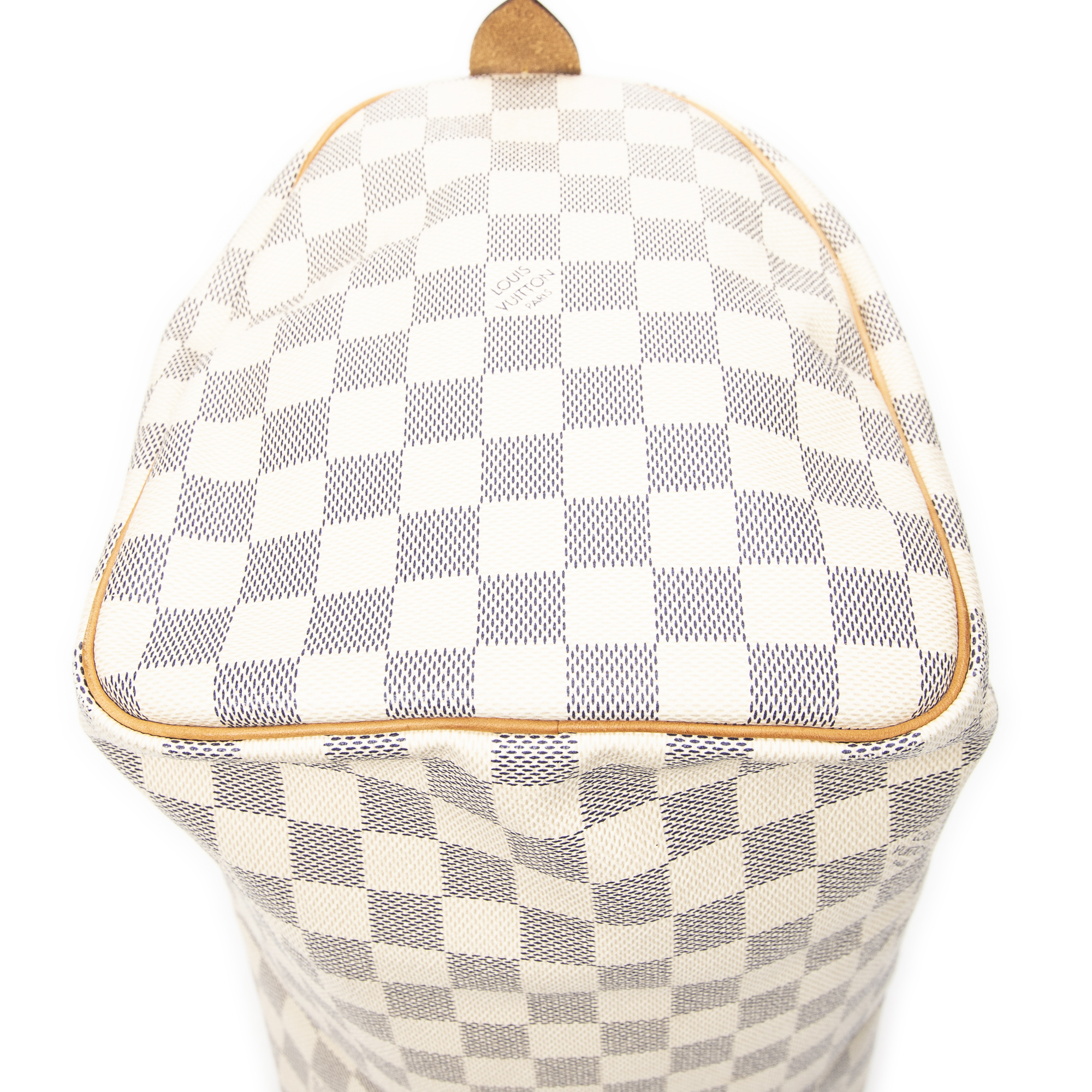 Louis Vuitton Handbag Speedy 30 in Ivory Damier Azur and Golden Brass hardware. The product is in Perfect Condition (AA).