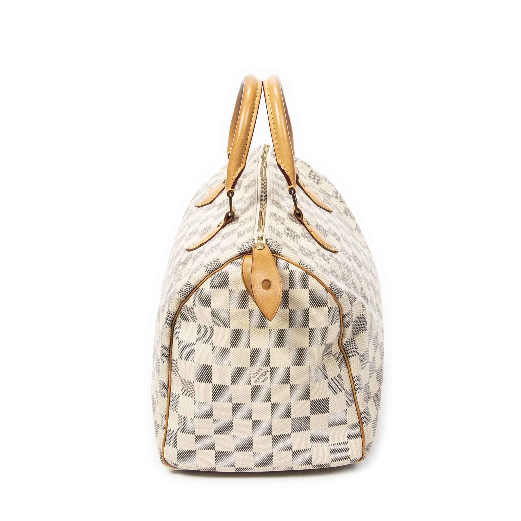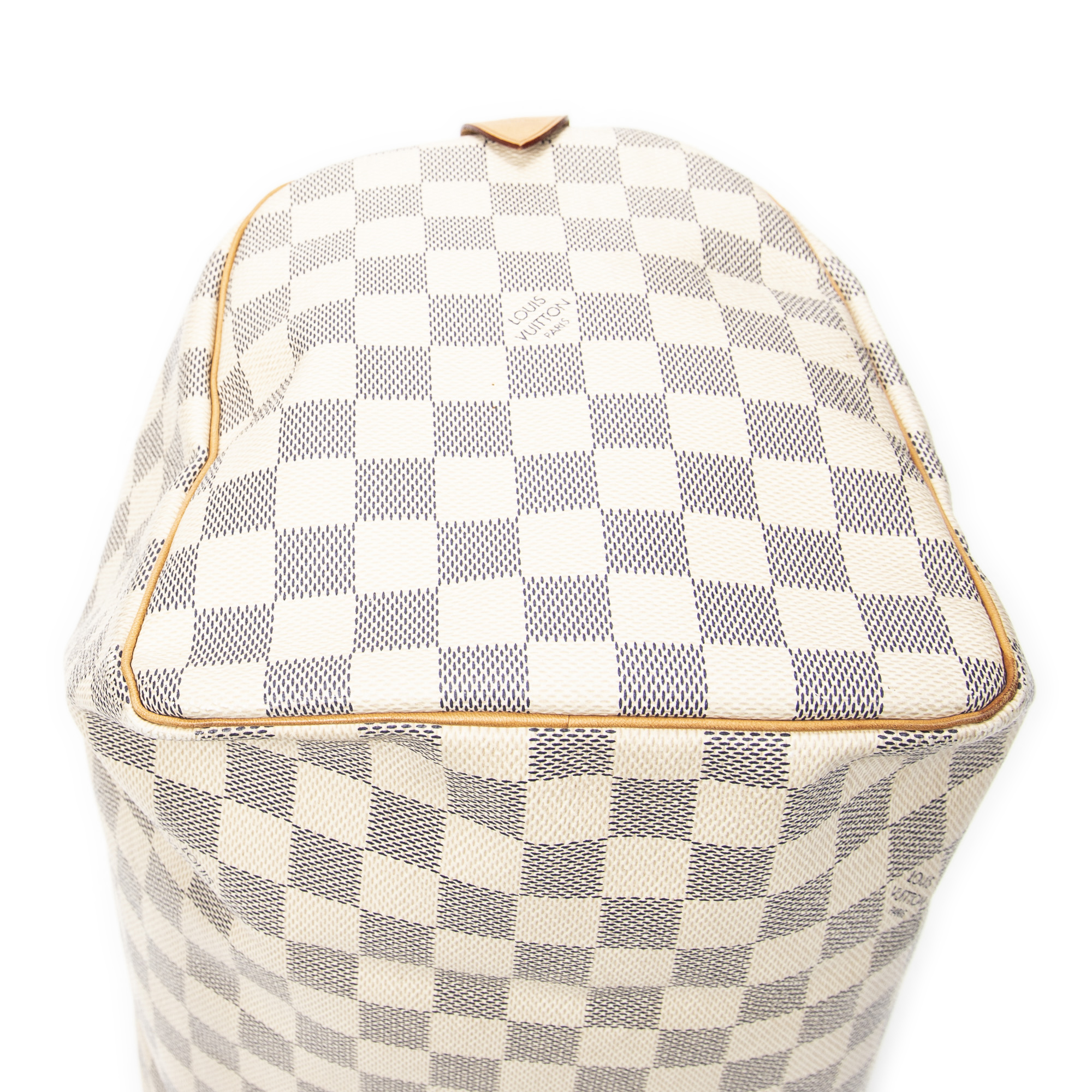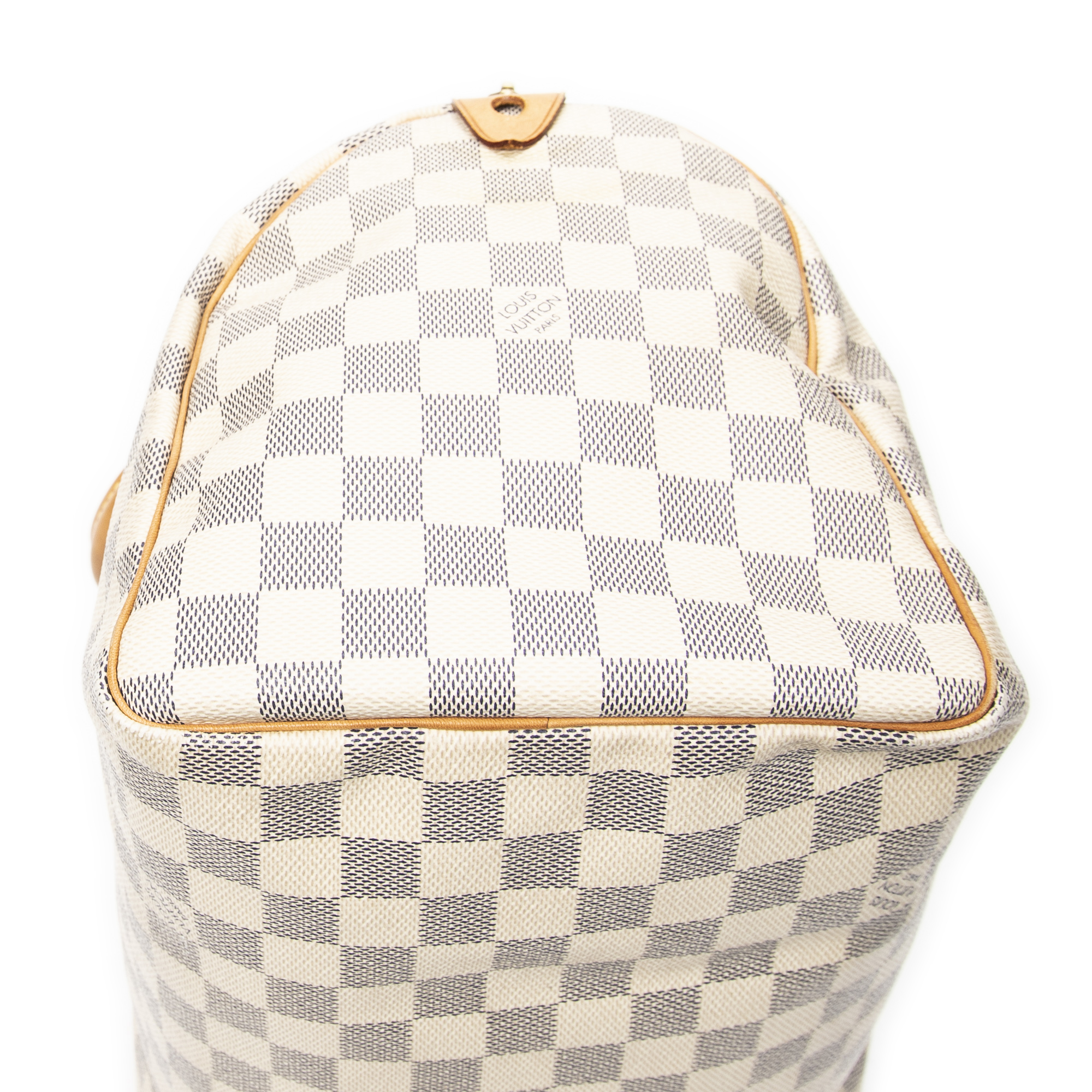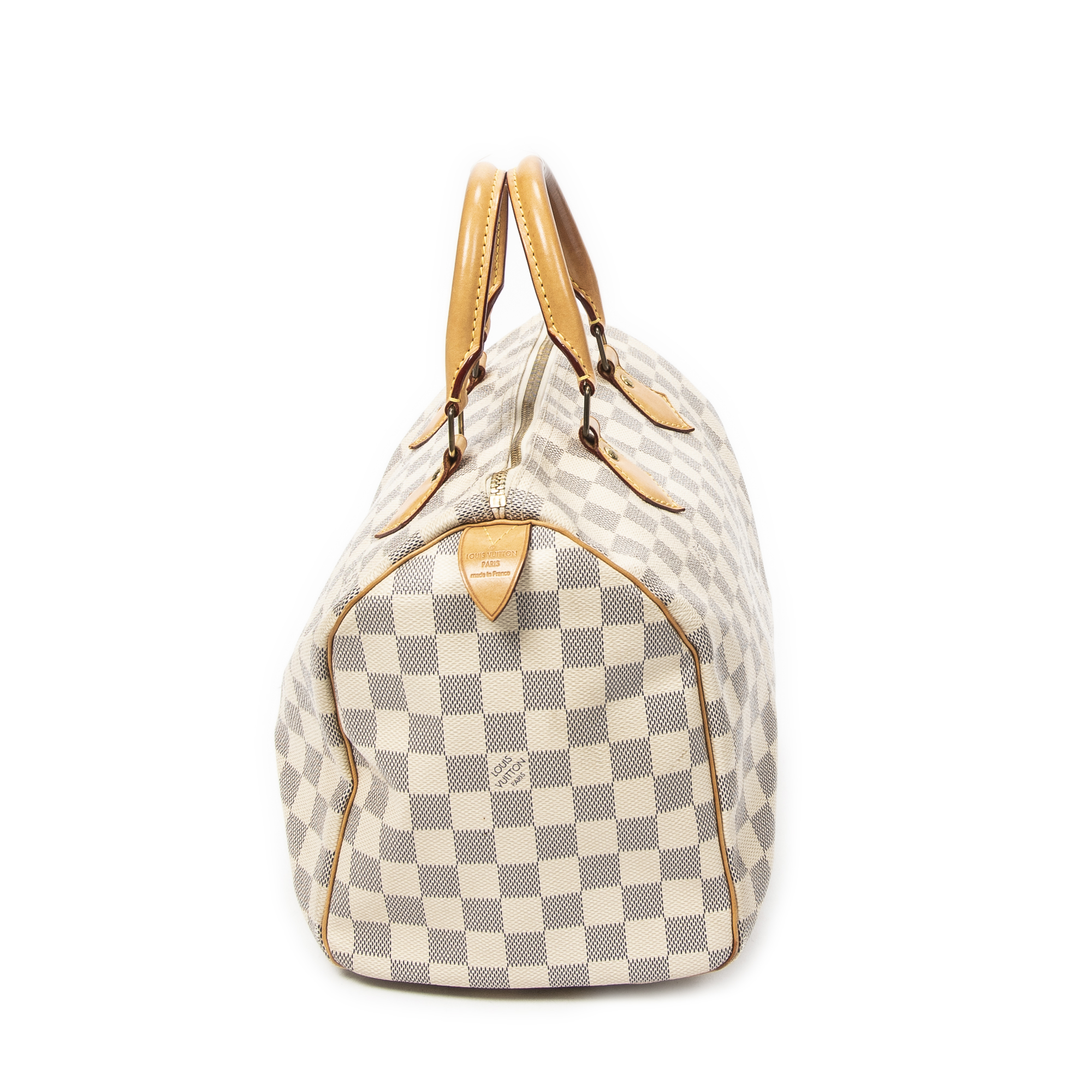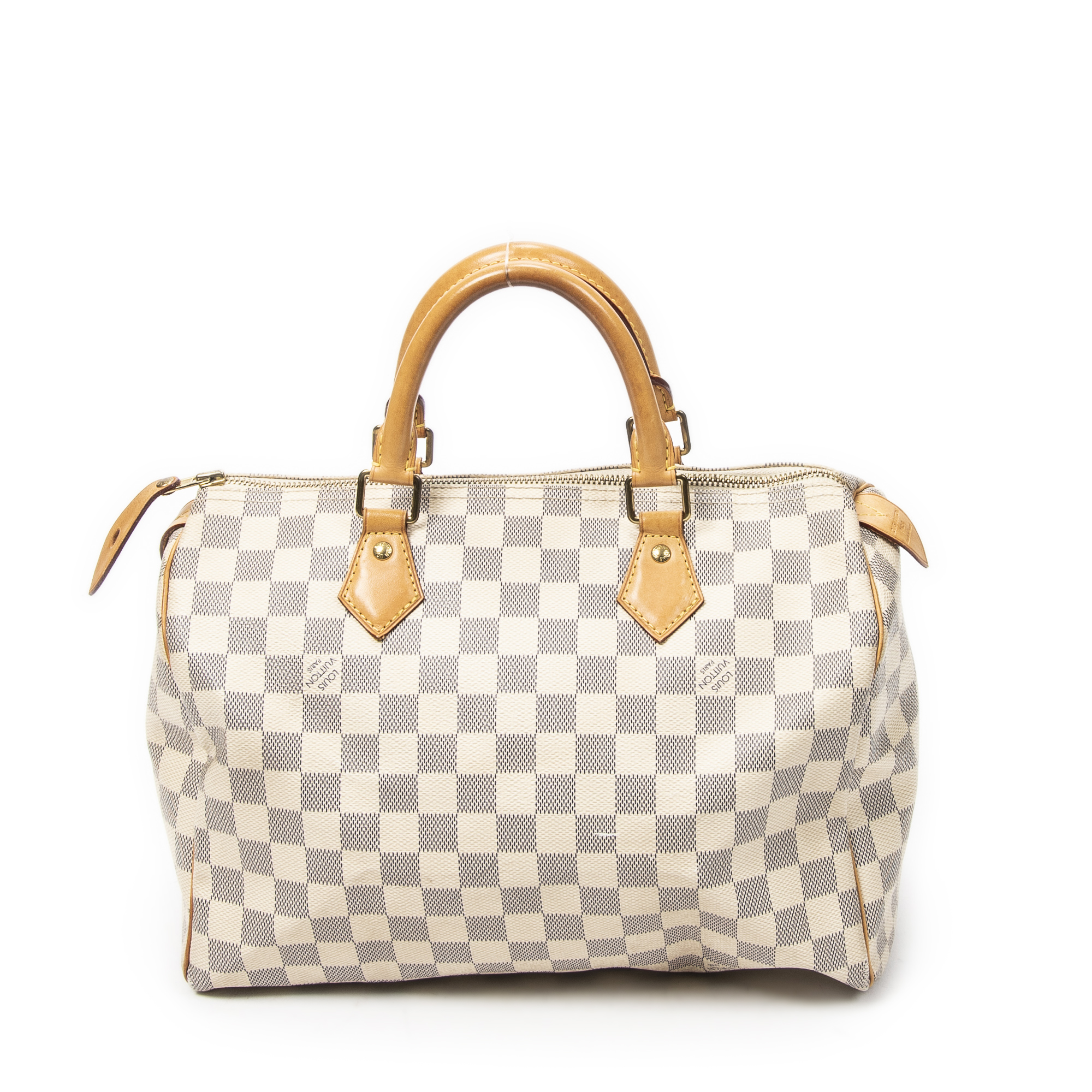 Louis Vuitton Handbag Speedy 30 in Ivory Damier Azur and Golden Brass hardware. The product is in Very Good Condition (AB).