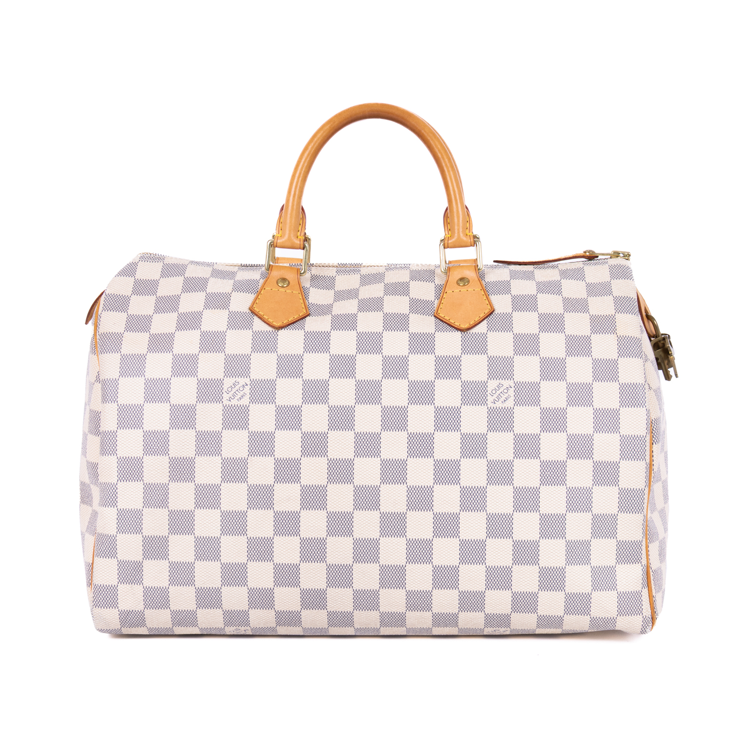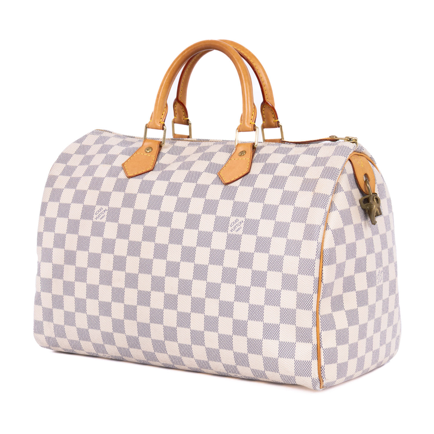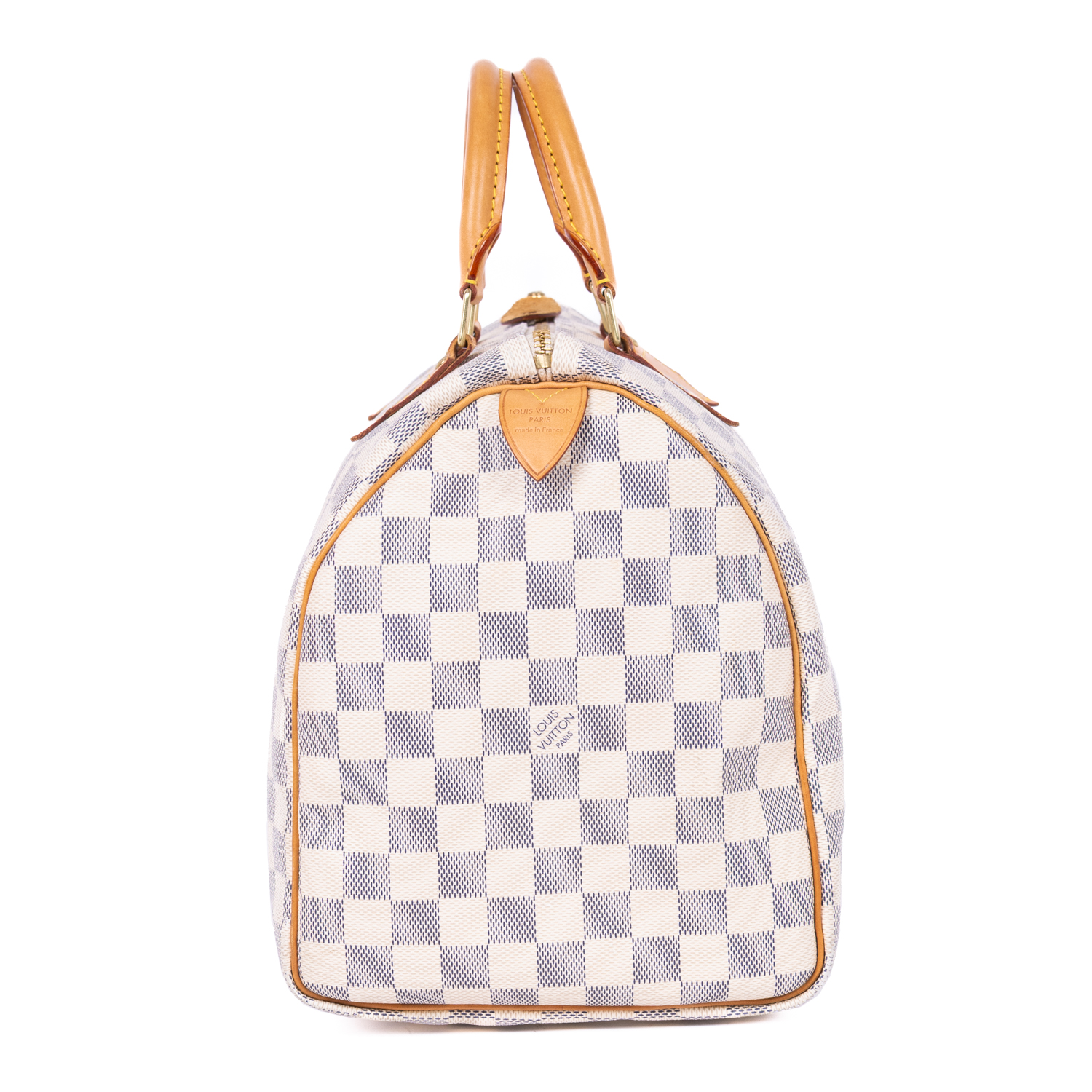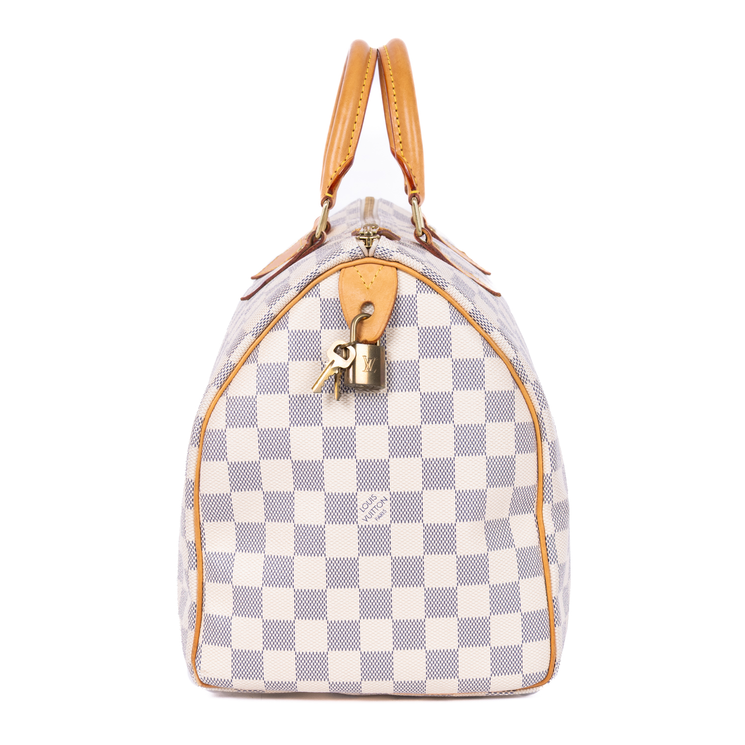 Louis Vuitton Handbag Speedy 35 in Ivory Damier Azur and Golden Brass hardware. The product is in Excellent Condition (A).